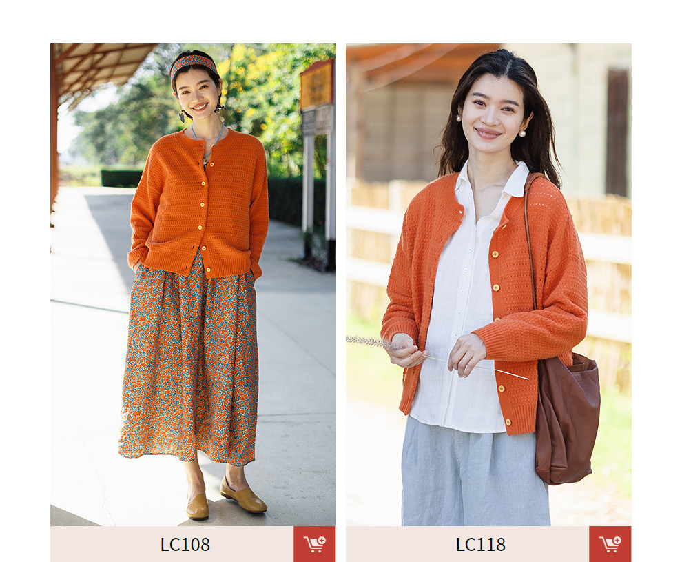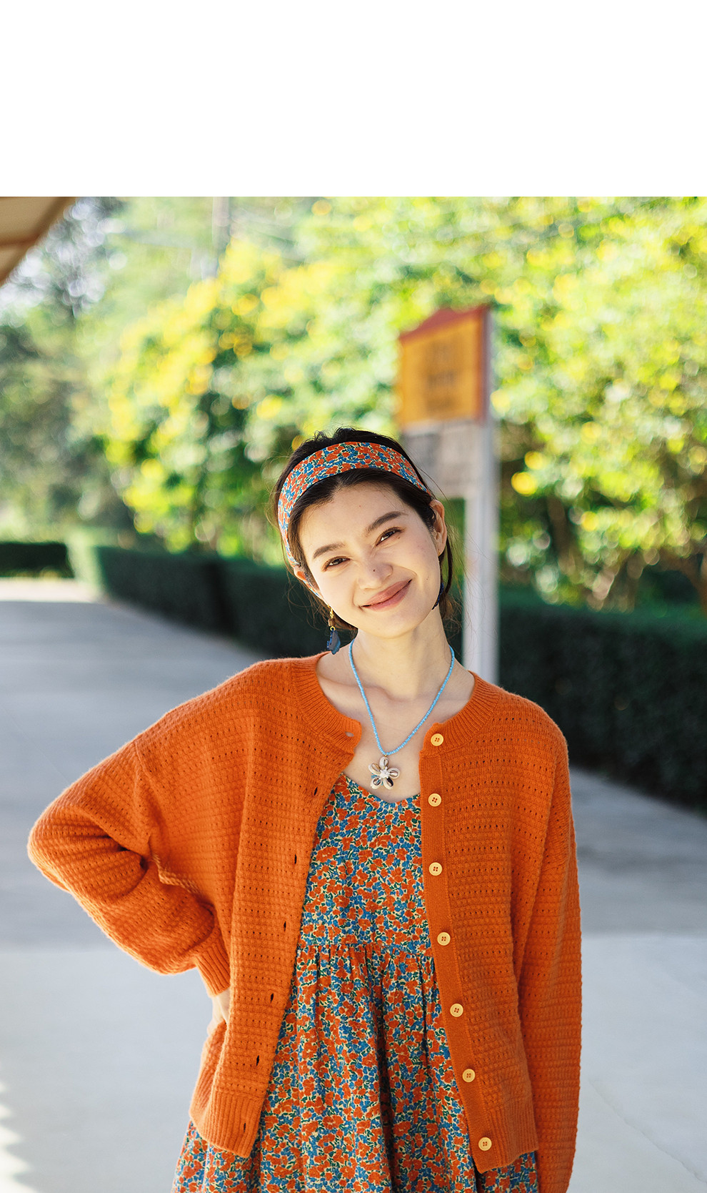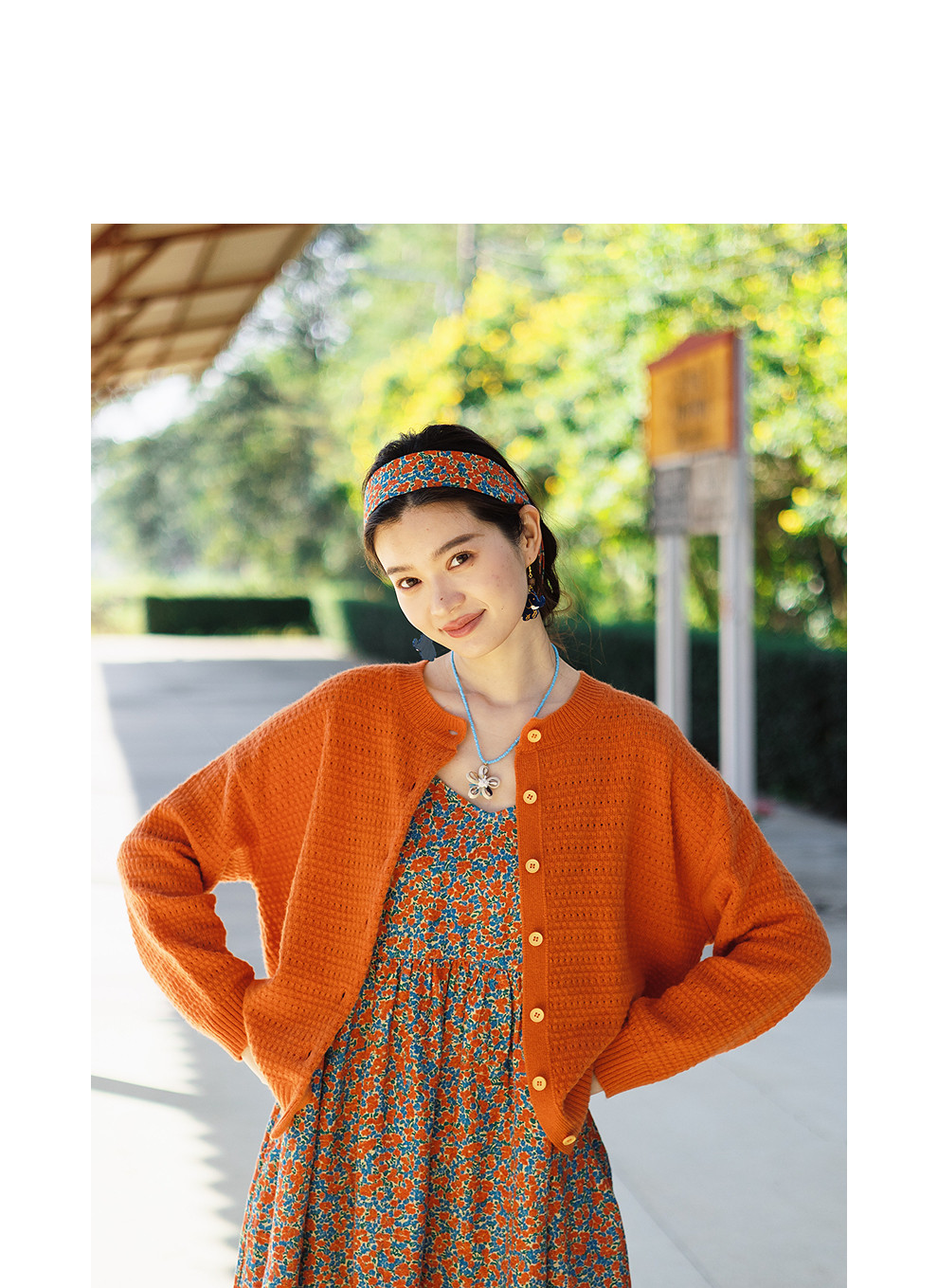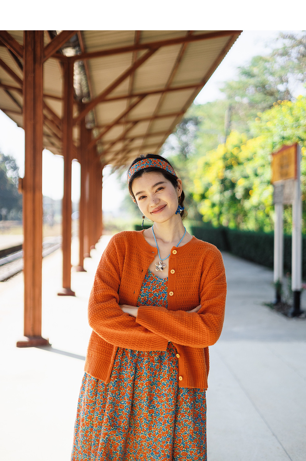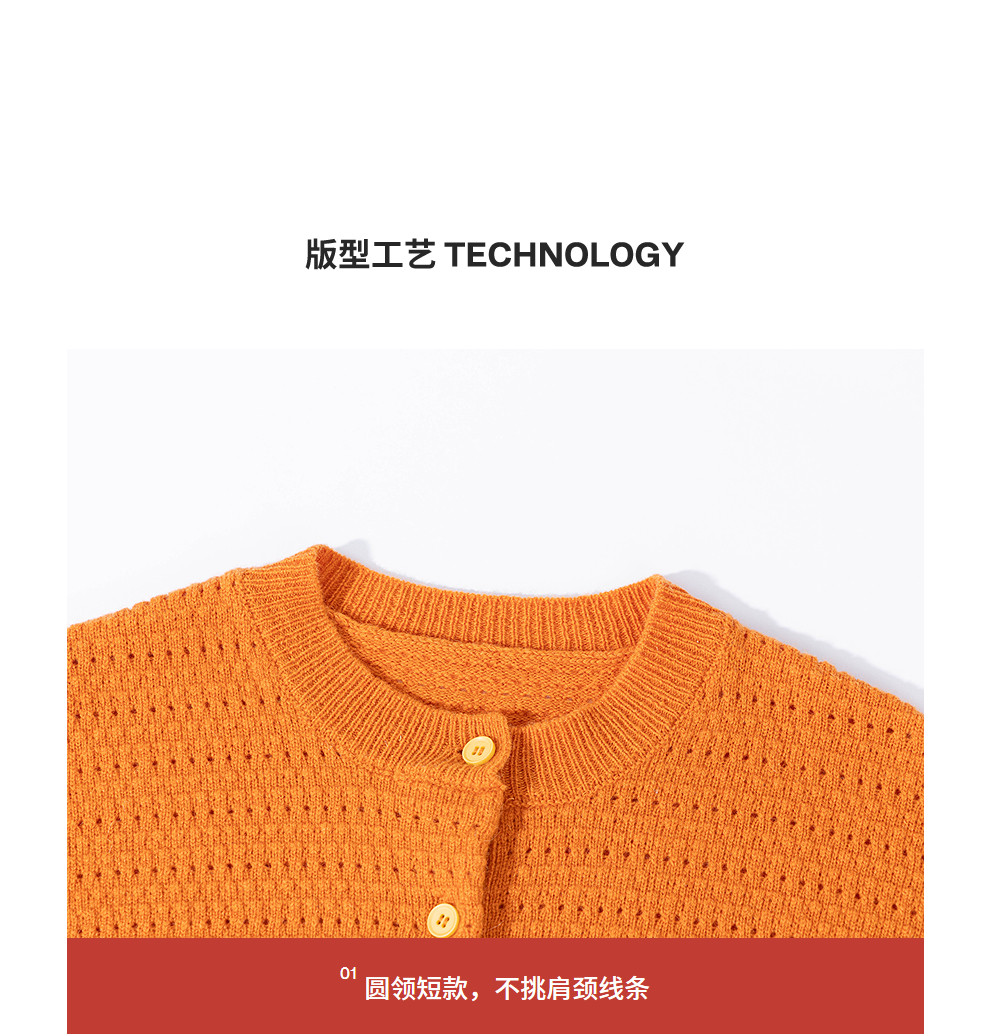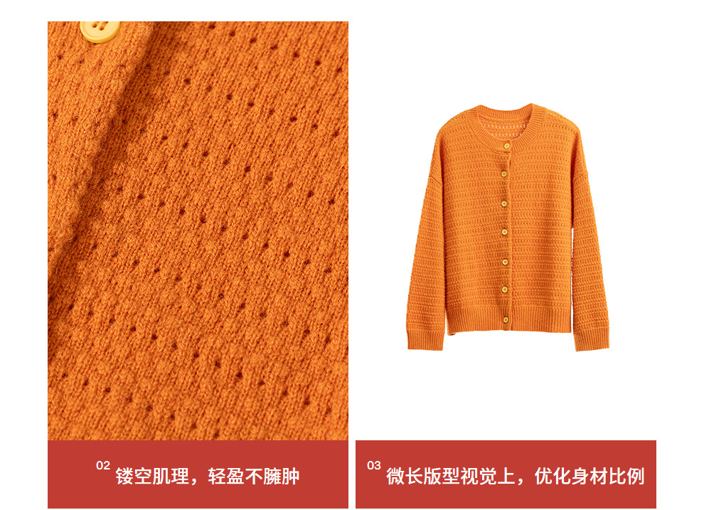 绽放163朵/春日暖橙*亮橙色纯羊毛镂空毛织开衫女春新款针织外套