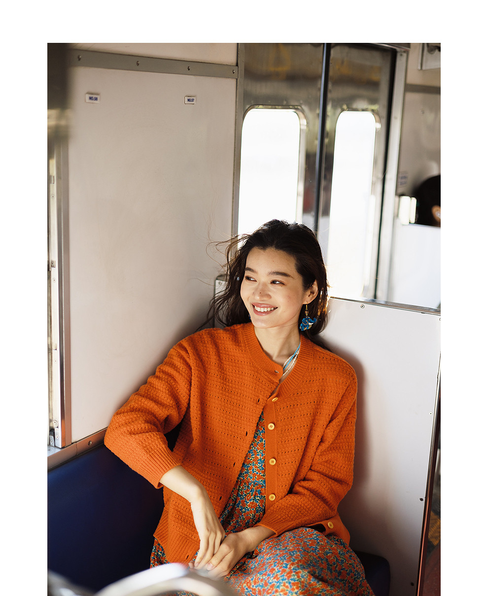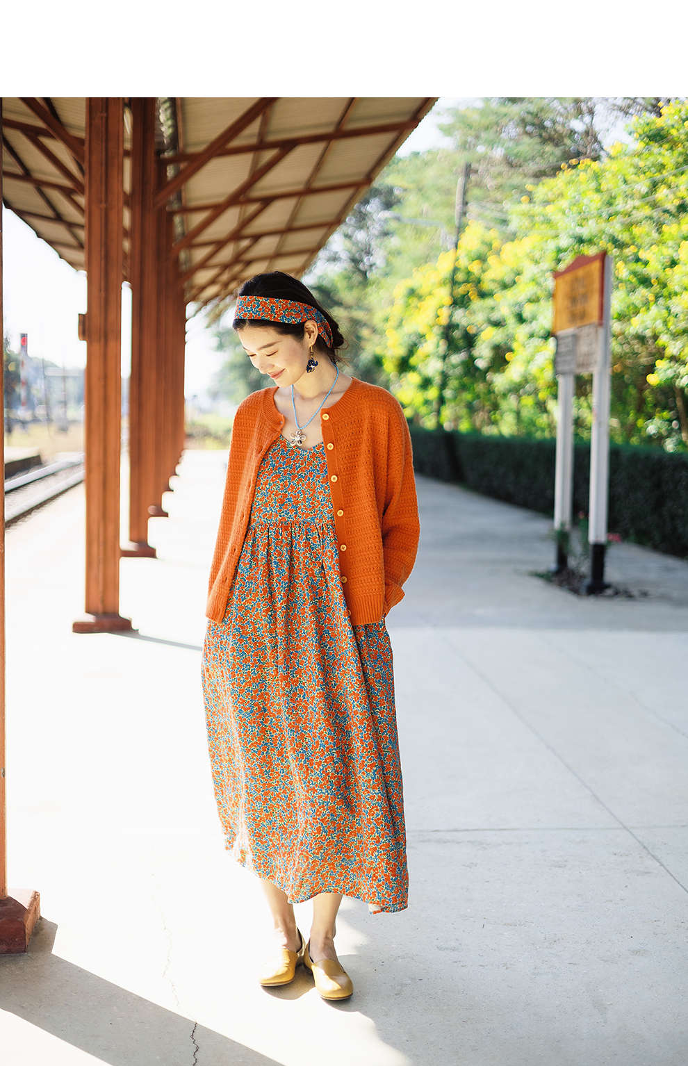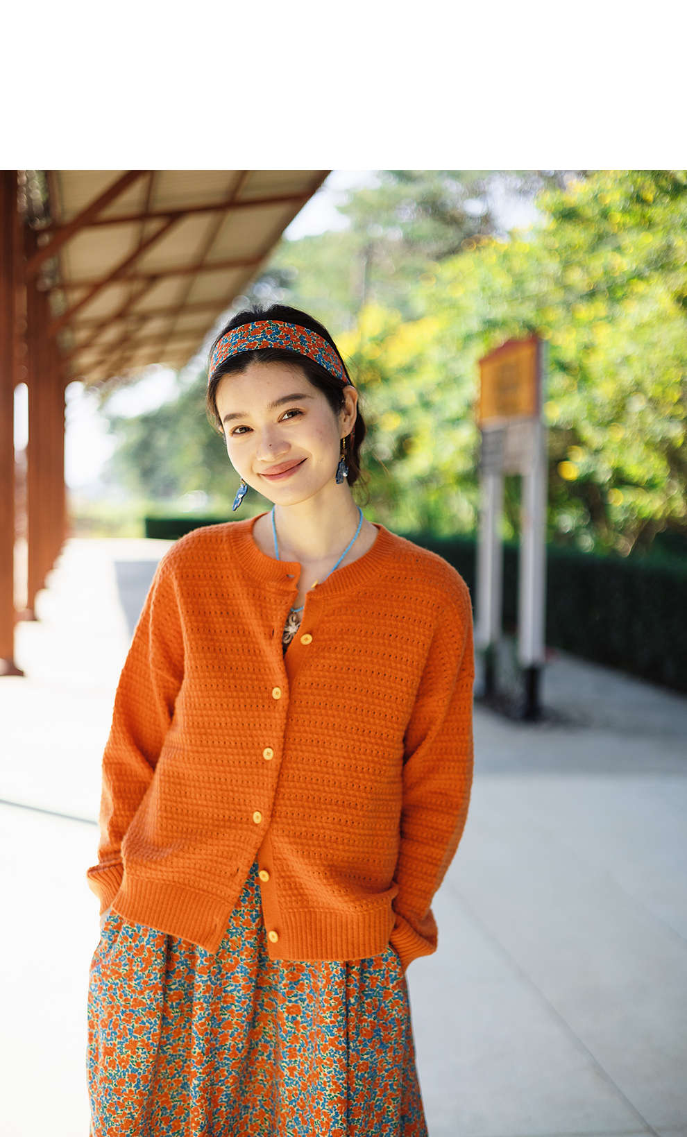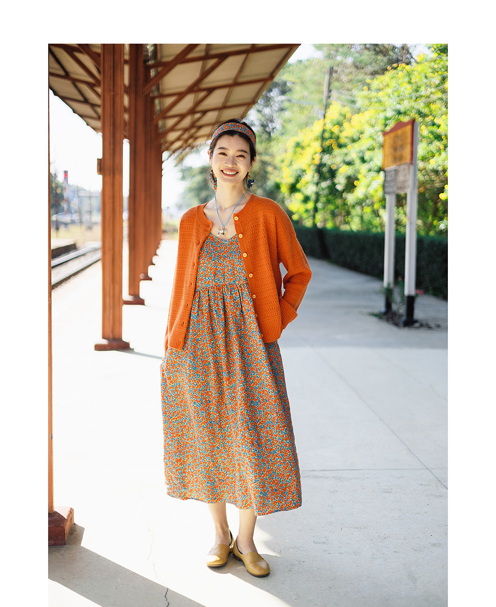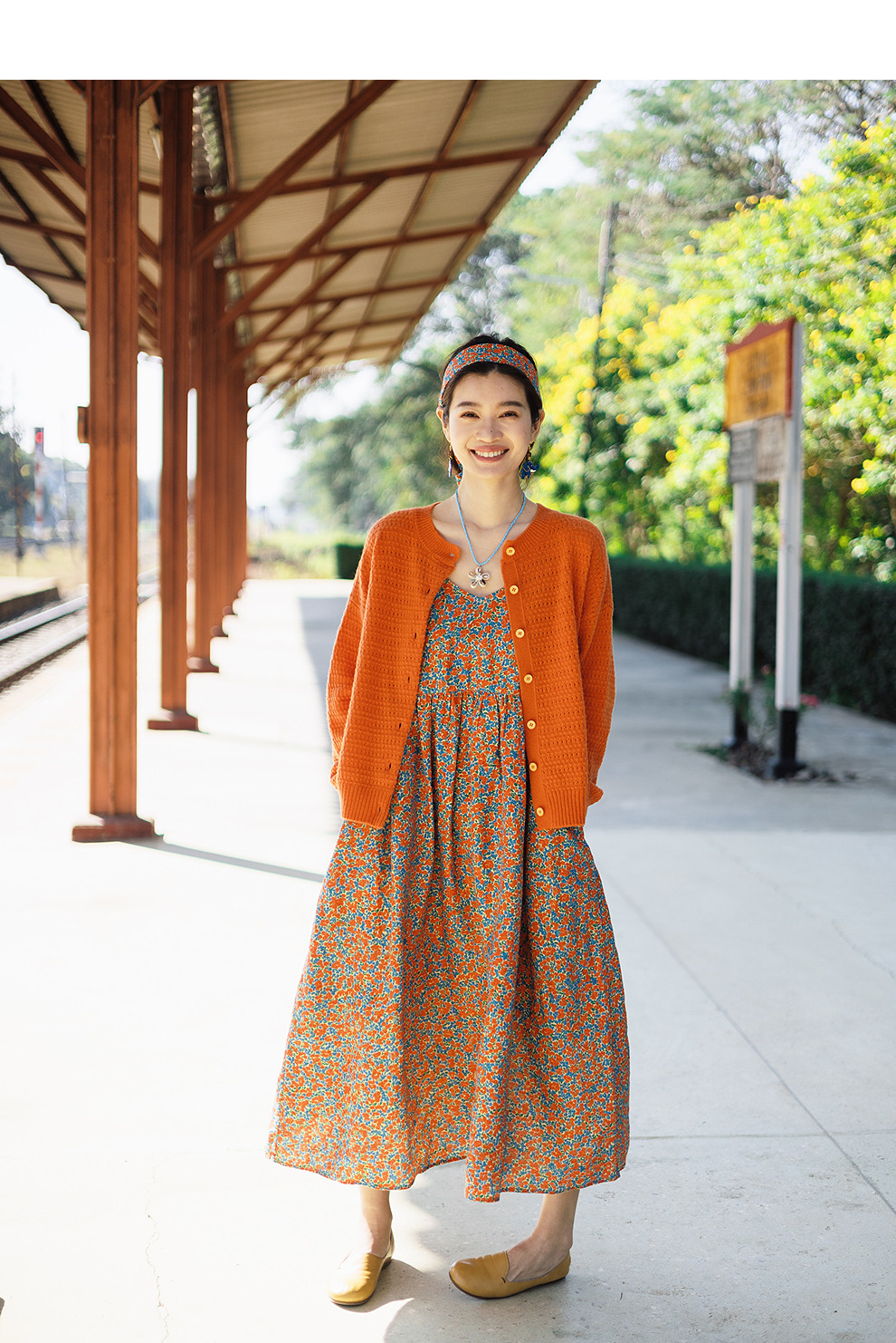 绽放163朵/春日暖橙*亮橙色纯羊毛镂空毛织开衫女春新款针织外套