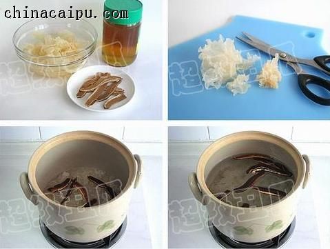 4.灵芝银耳羹:灵芝9克,银耳6克,冰糖15克,用小火炖2-3小时,熬至银耳成稠。