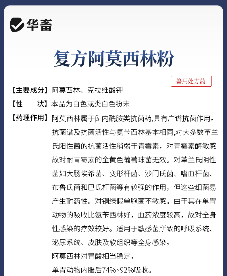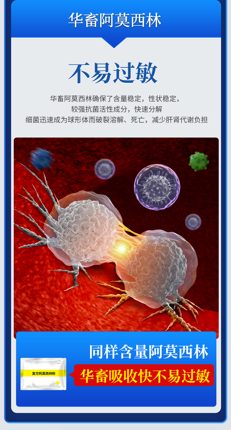 华畜复方阿莫西林 抗菌消炎不吸潮不结块 鸡鸭鹅猪用 药效强、耐药性强