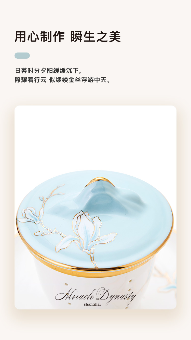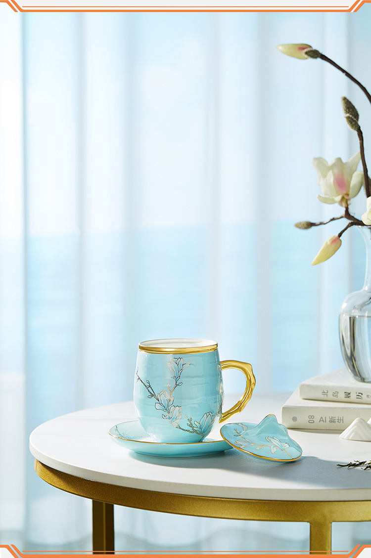 【6F】玛戈隆特 茶杯滤茶杯组合带茶滤茶水分离杯 珐琅彩家用带盖马克杯 行云系列4头行云南山礼盒装 水蓝色-珐琅彩