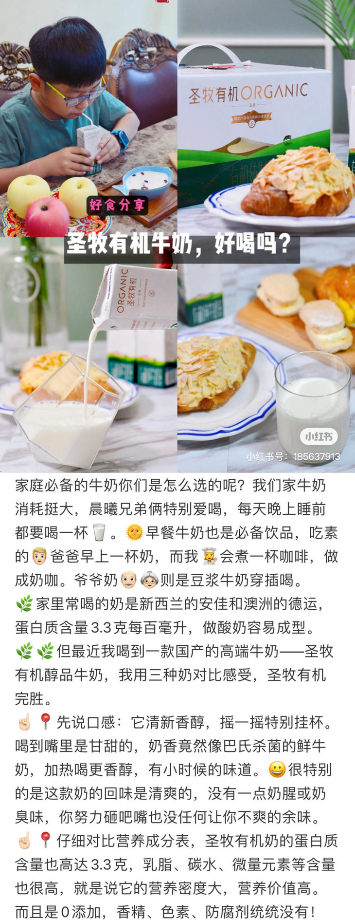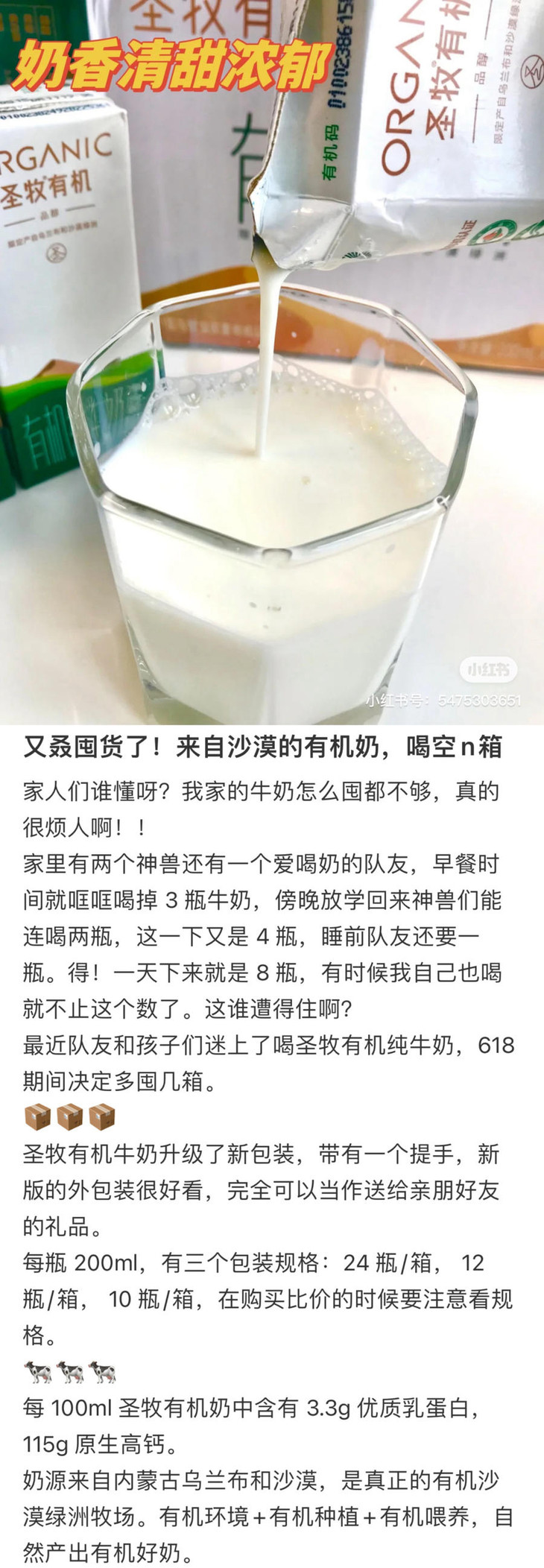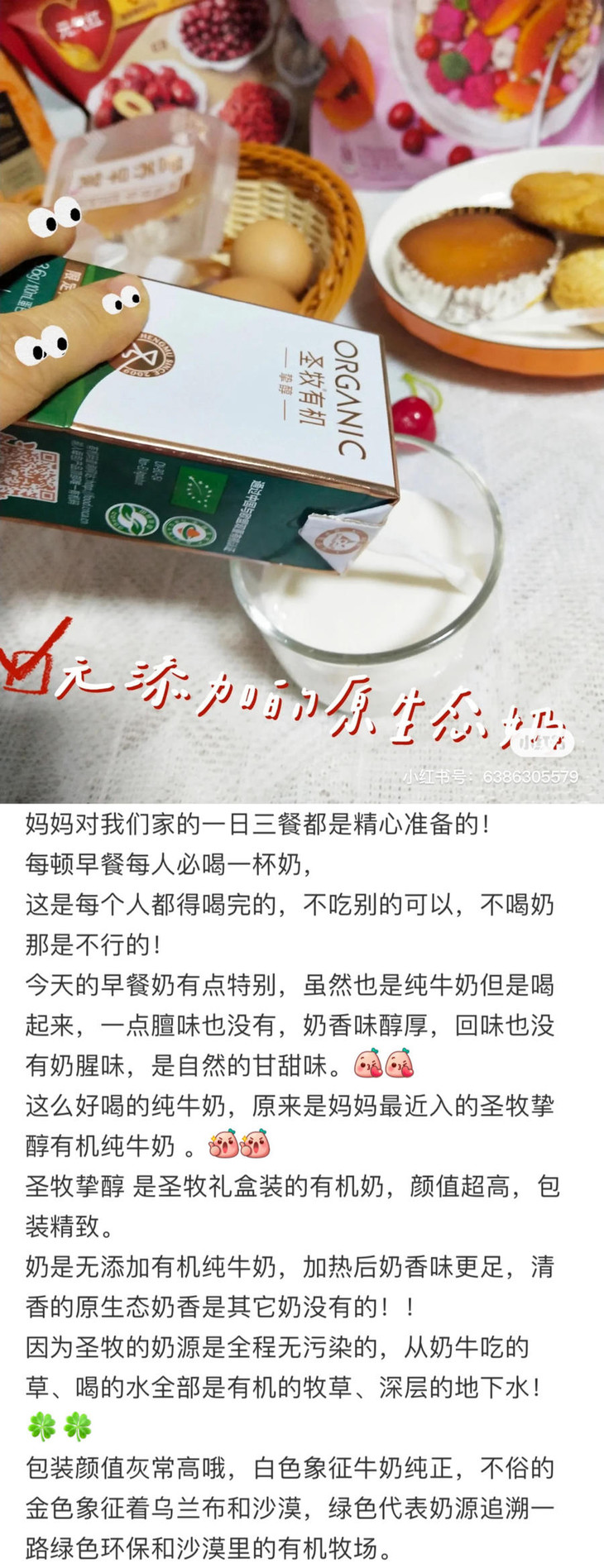 奶已经上了好多好多,但作为人类重要的营养来源和小朋友长高高的辅助装备,还是要多来一些选择,每一款的产地、口感和价格都不同,大家可以选自己喜欢的!今天是来自圣牧的有机牛奶,每一包都能有机奶源追溯,是来自沙漠的牛奶,比较清甜,不像百菲酪水牛奶那么浓郁,但也奶香十足!
