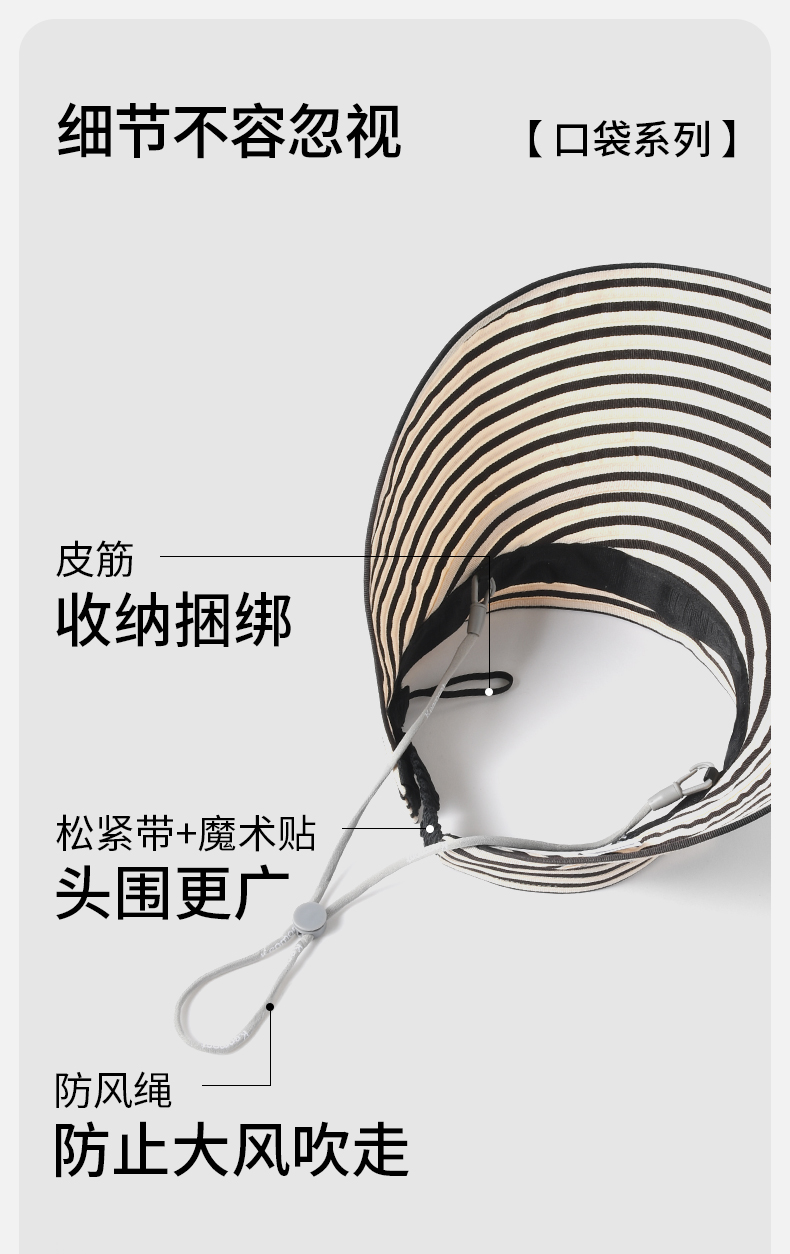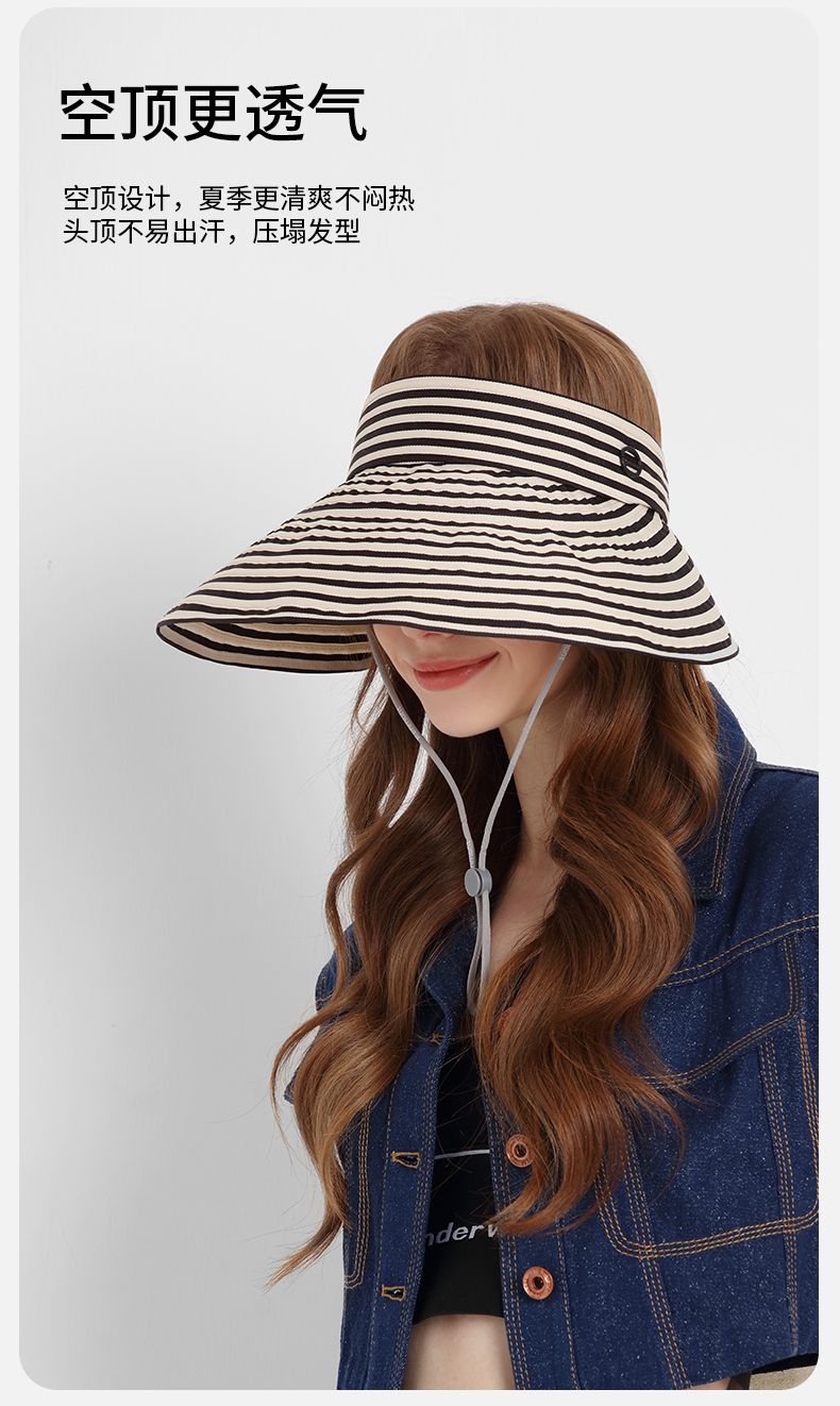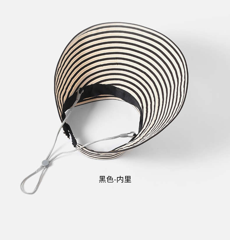 卡蒙百搭黑白条纹空顶防晒帽女夏沙滩速干透气可折叠遮脸遮阳帽KM-6046
