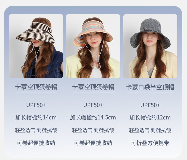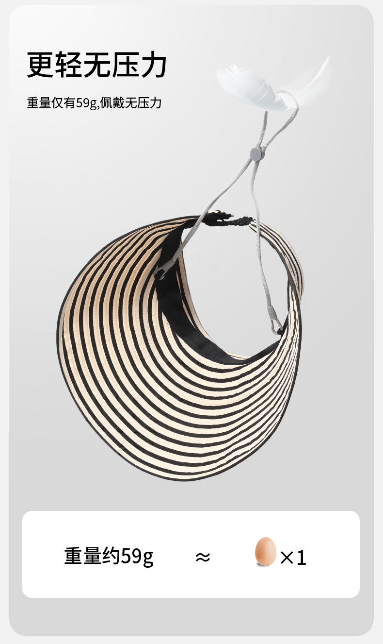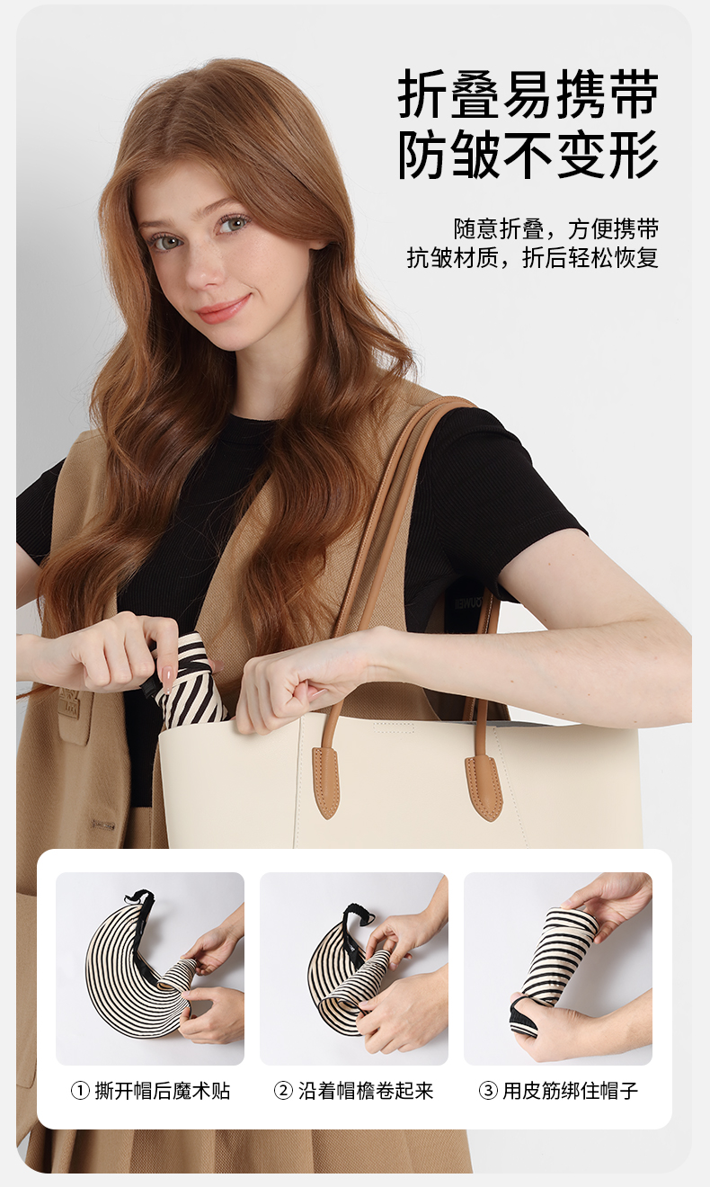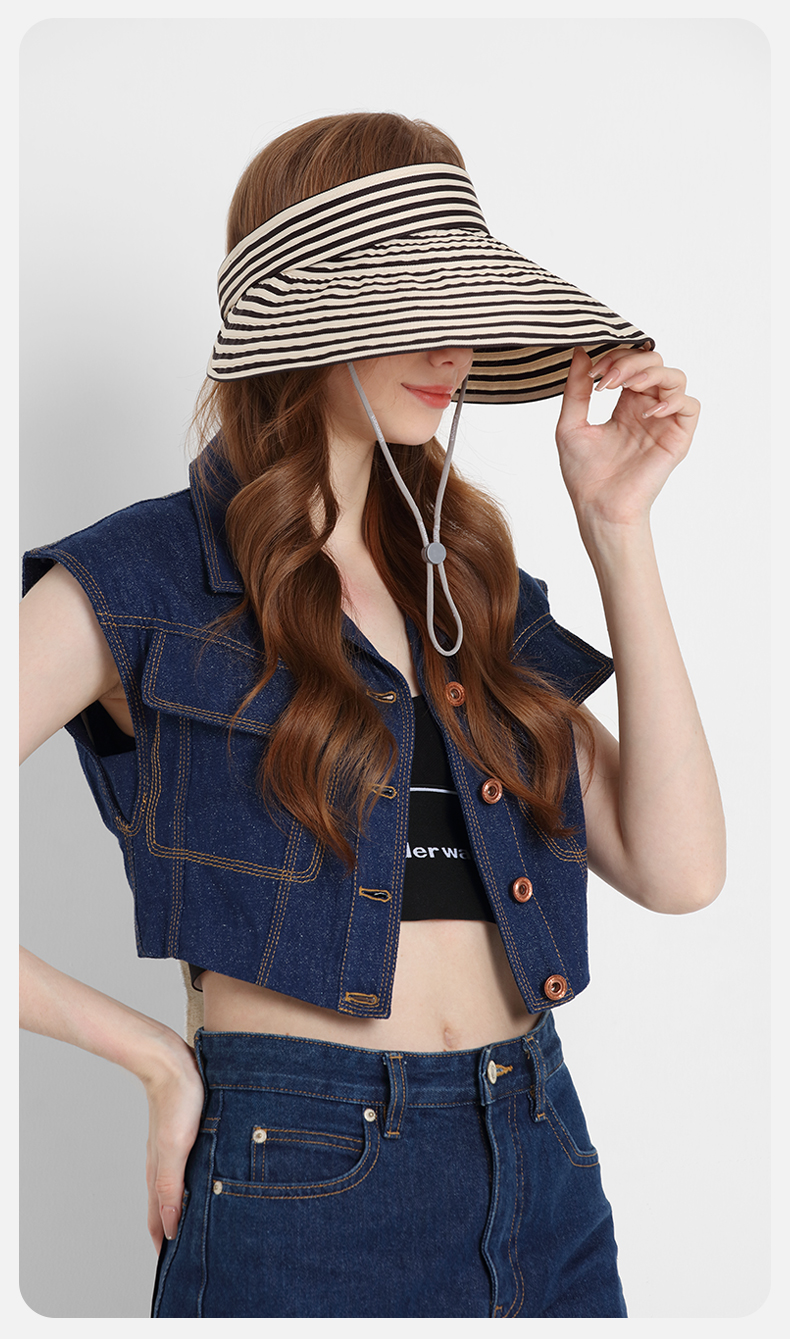 卡蒙百搭黑白条纹空顶防晒帽女夏沙滩速干透气可折叠遮脸遮阳帽KM-6046