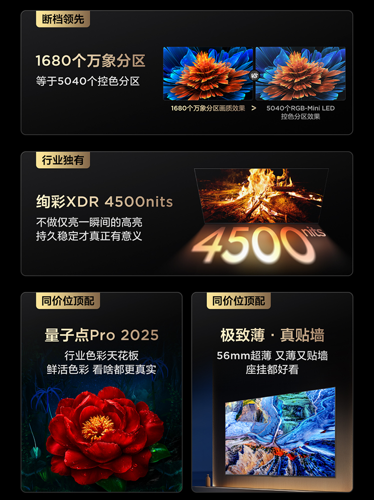 TCL电视 65Q9L Pro 65英寸 QD-Mini LED 蝶翼星曜屏 万象分区 绚彩XDR 4500nits 超薄电视