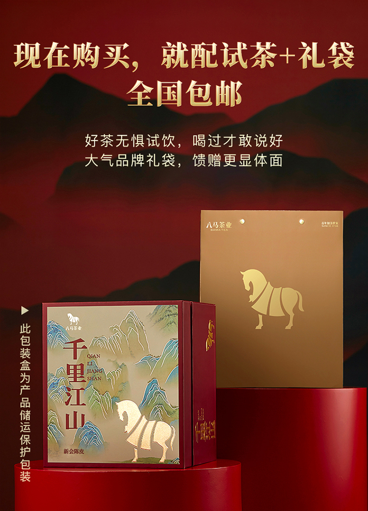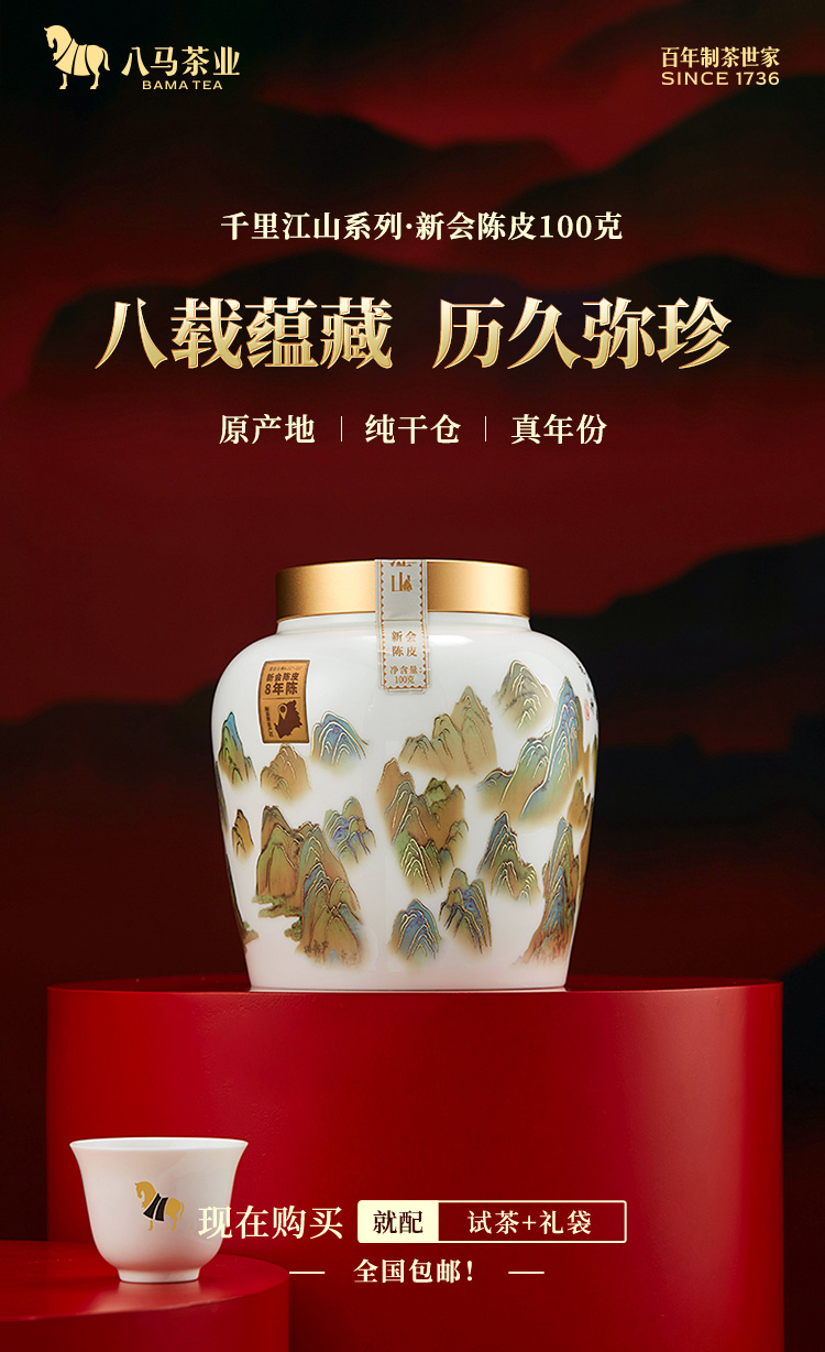 八马茶业 | 千里江山白牡丹金骏眉熟普新会陈皮(8年陈)茶叶