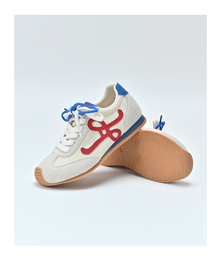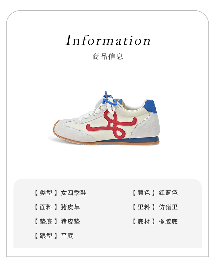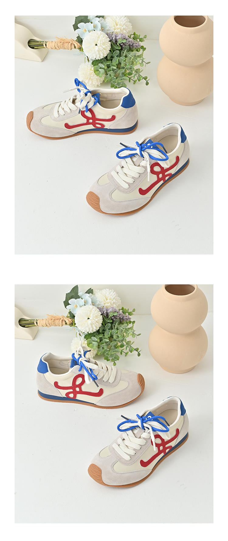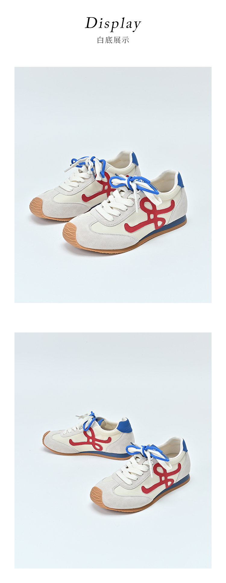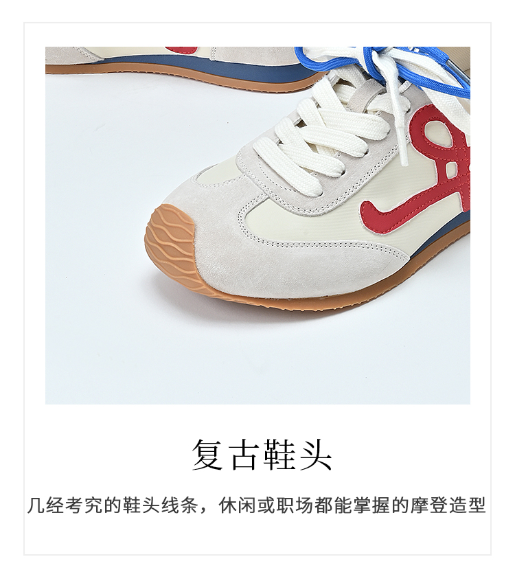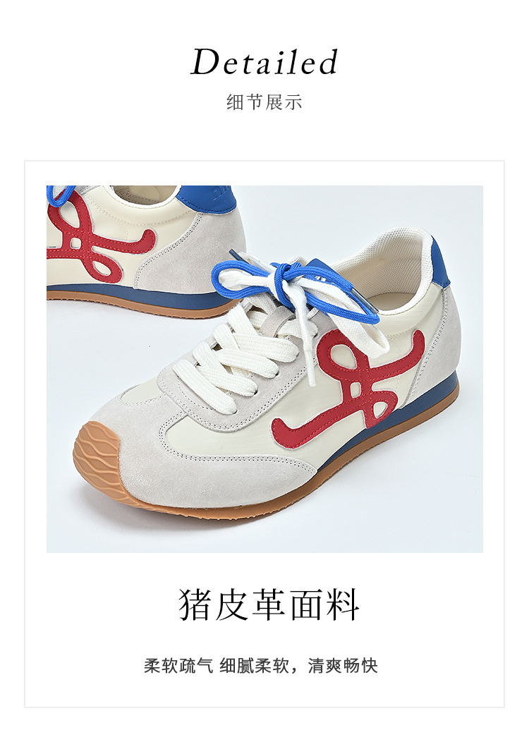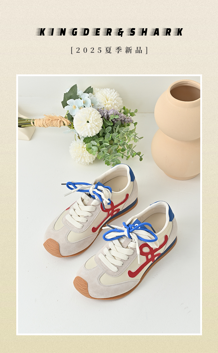 经典鲨2025夏款猪皮革潮流时尚拼色系带跑步休闲鞋德训鞋女KW313-529061
