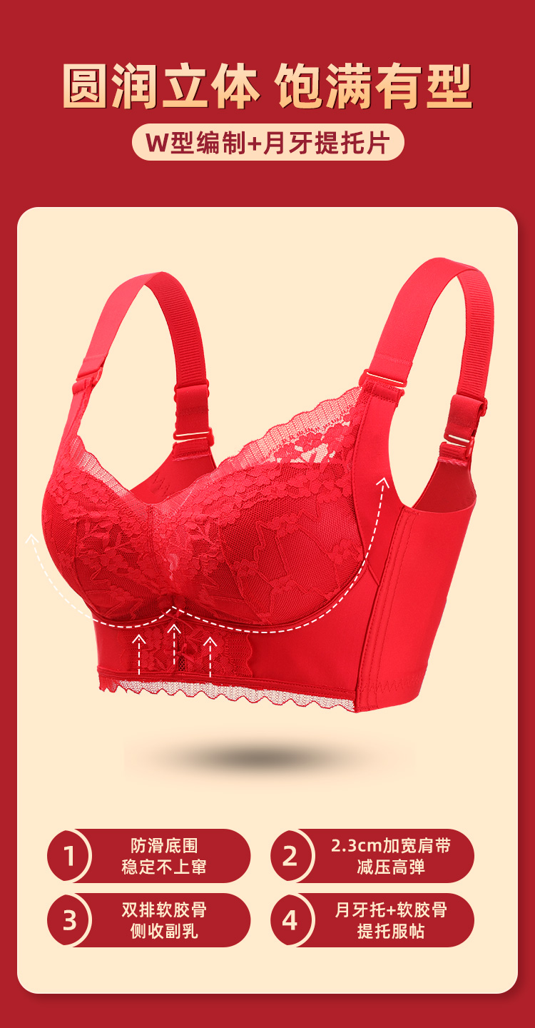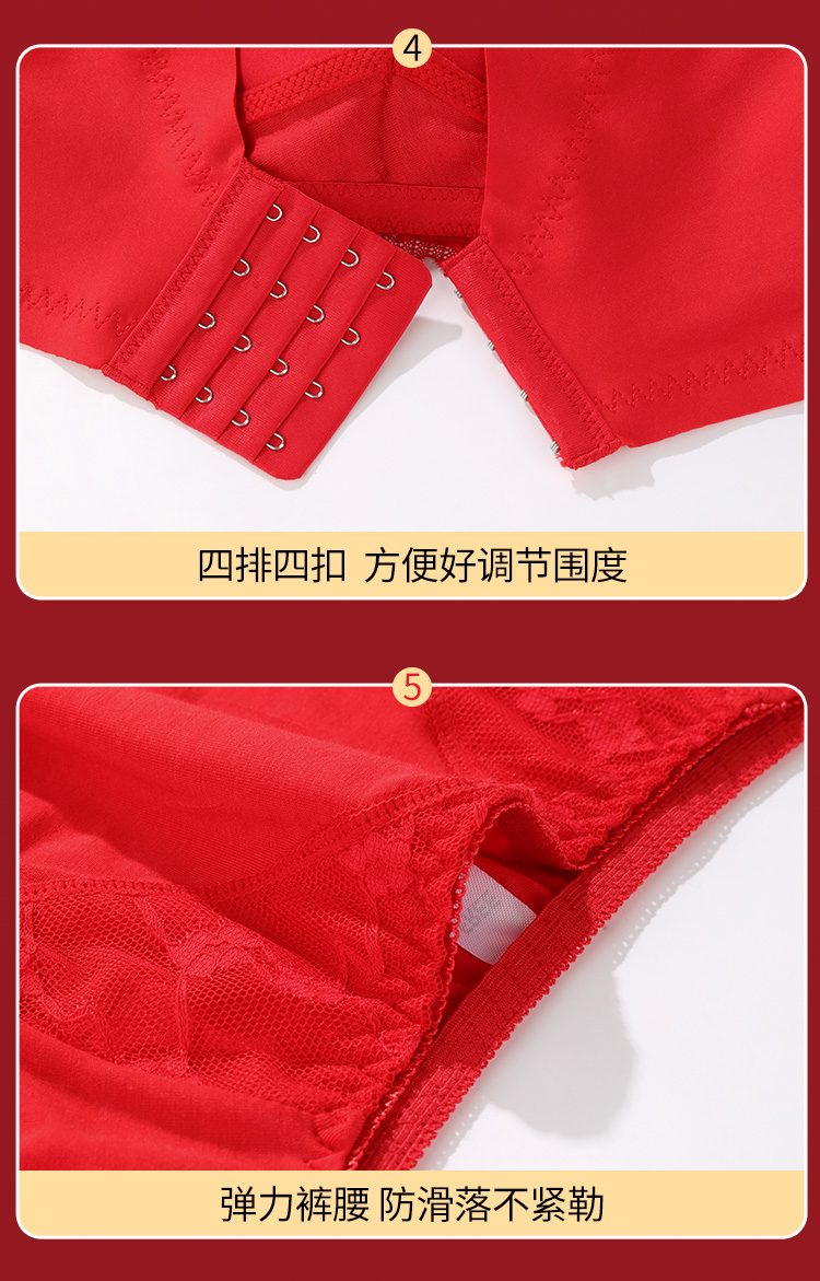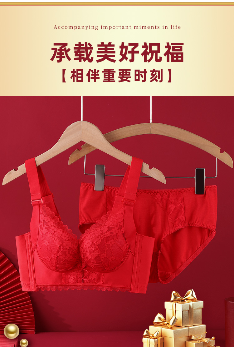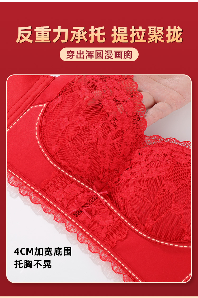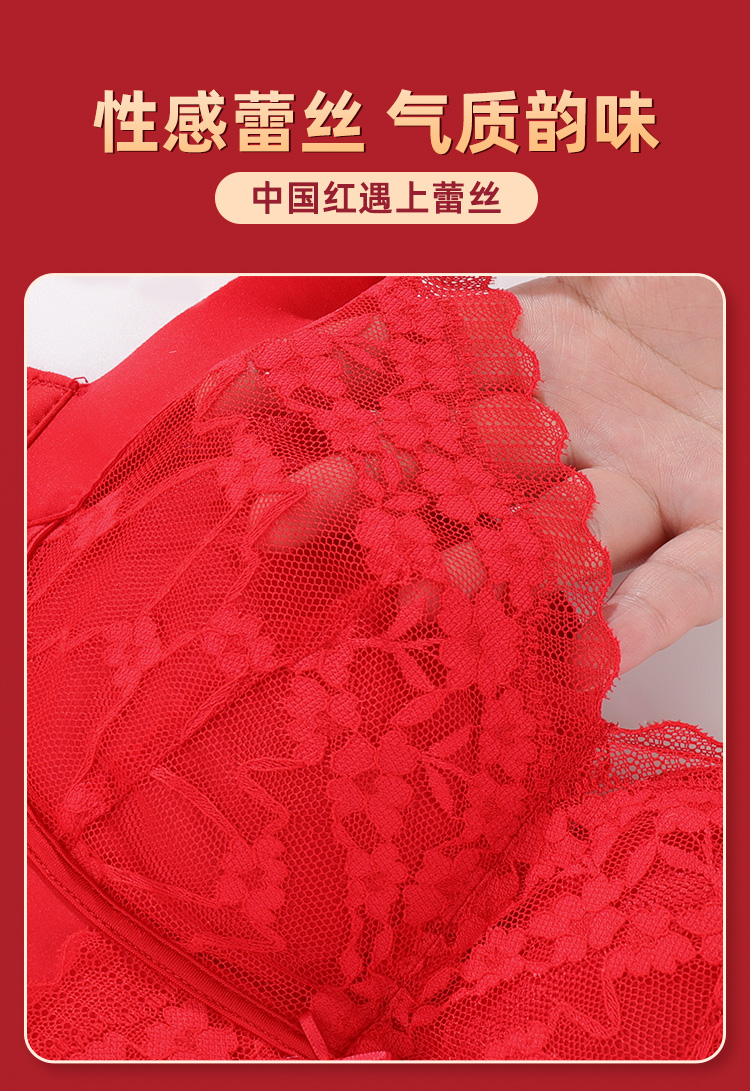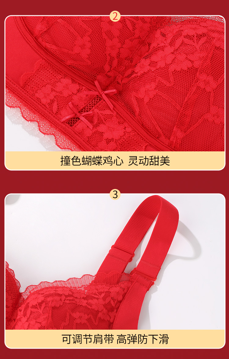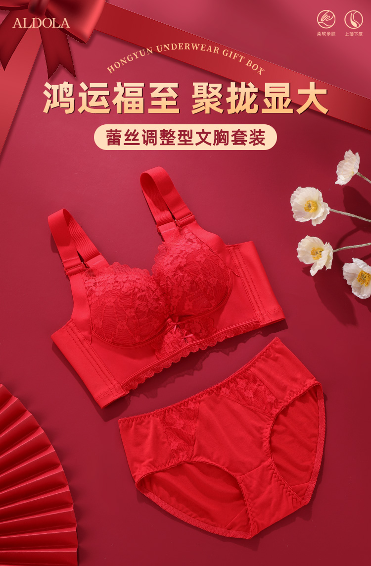 雅黛丽红色内衣女本命年小胸聚拢套装性感蕾丝无钢圈文胸2024新款