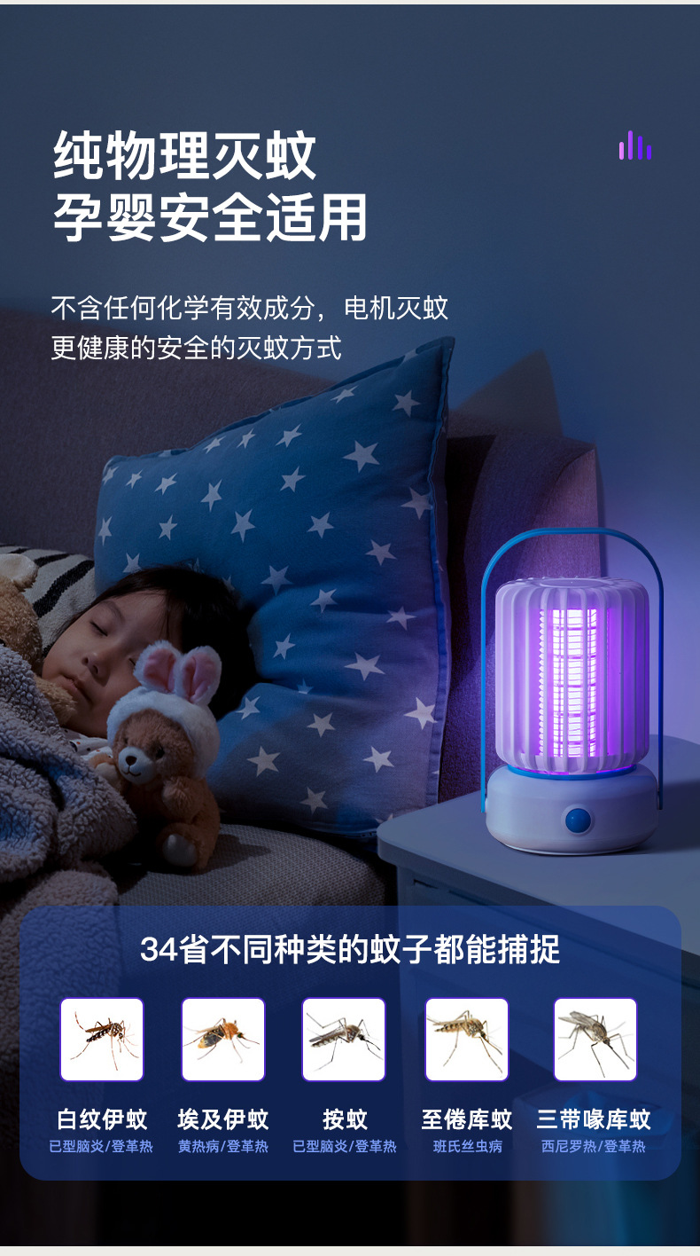 【纯物理灭蚊❗️天虹新款LED灭蚊灯】孕婴安全适用家用挂式电击式灭蚊器两用静音诱捕电子补蚊灯