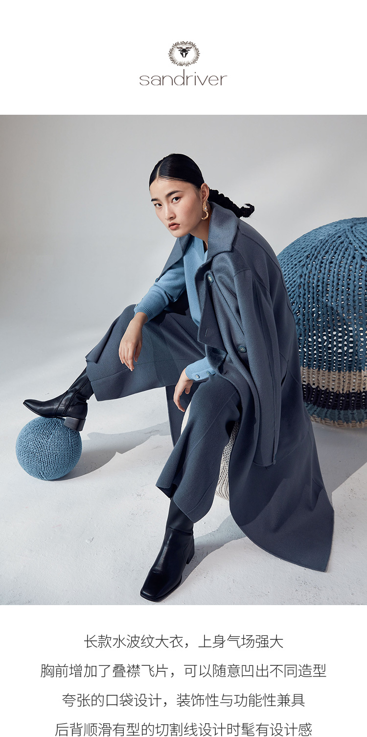 历年在巴黎时装周亮相,享誉世界的艺术羊绒品牌[Sandriver 沙涓]由羊绒布道者郭秀玲女士创立。阿拉善自有牧场纯种羔羊绒,日本国宝设计师小筱顺子,上海自有基地精工细作。承载羊绒情怀,坚持匠人品质。