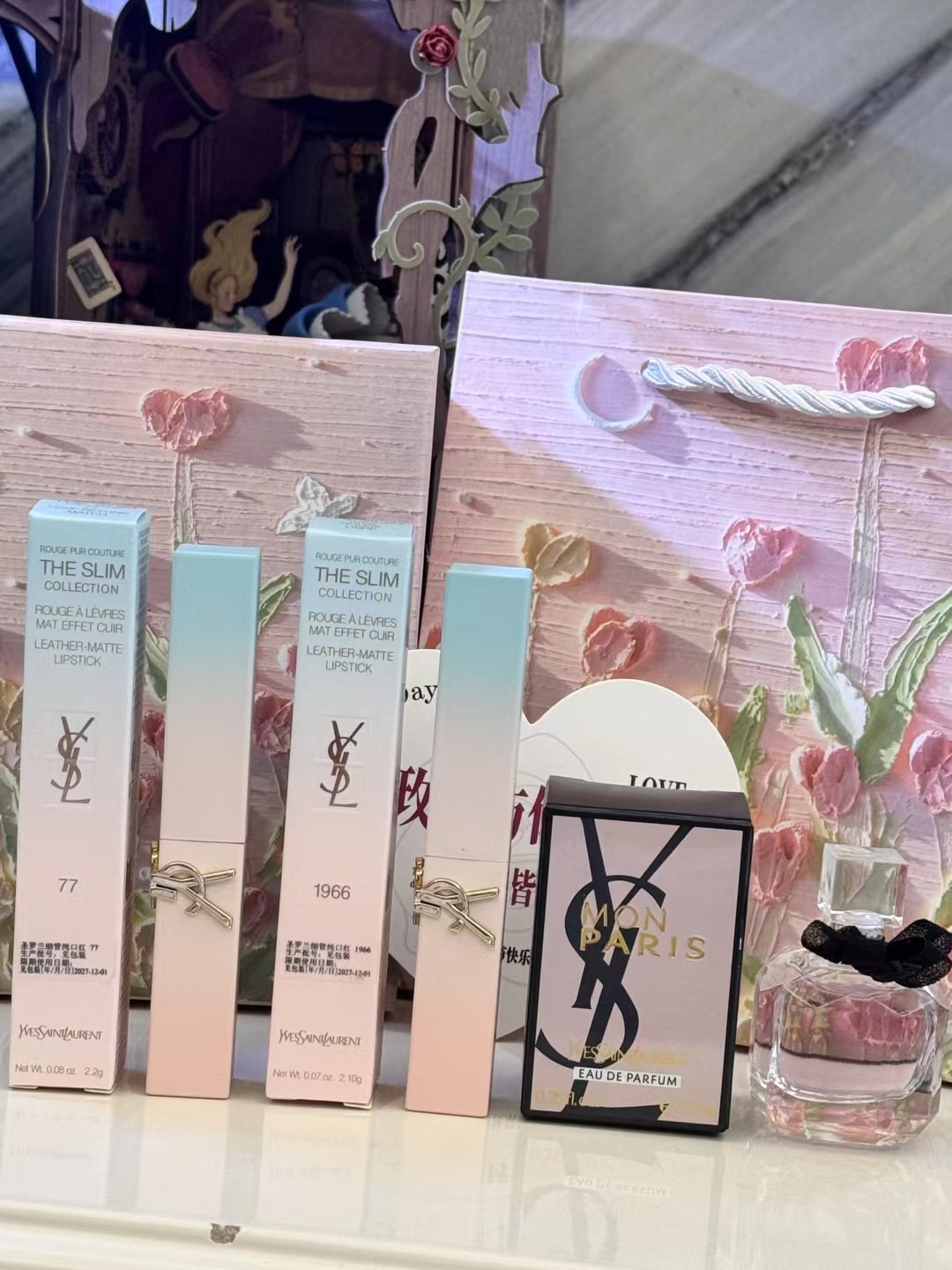 【渐变玛卡龙反转三件套郁金香礼盒】内含:77#烟装粉+1966#红棕色+反转巴黎7.5ml+随机贺卡+拉菲草!