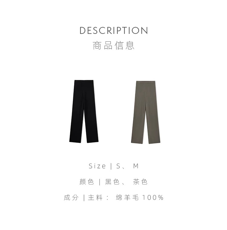 Her Senses|时装 12HPA26K1 绵羊毛针织长裤 [ 茶灰GY18 / 黑BK01 ]