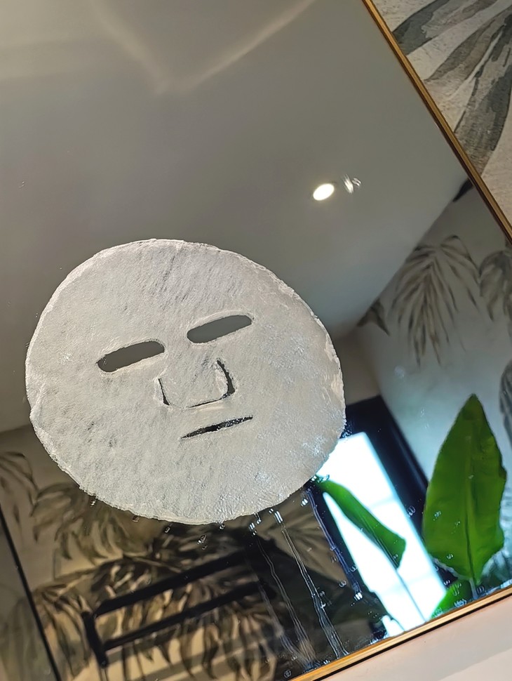 日常做完面部油浴,或是想给皮肤喝点水,就取出一粒放到随赠的量杯里,倒入适合的精露,5ml就够了哦!等面膜纸膨胀成完整形态,轻轻展开后敷到脸上,静静等待,这中间也可以喷喷加水,让纸膜时刻保持湿润,充分渗透5-10分钟后揭下,再用双手轻轻按压面部,趁没干就可以上后续的油霜咯!