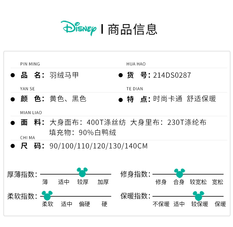 迪士尼冬季新款男童羽绒马甲中大童马甲214DS0287