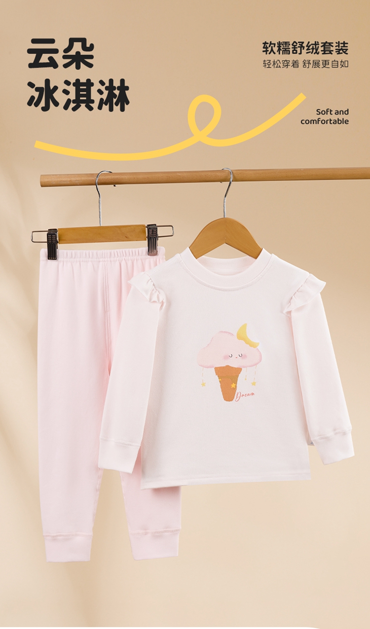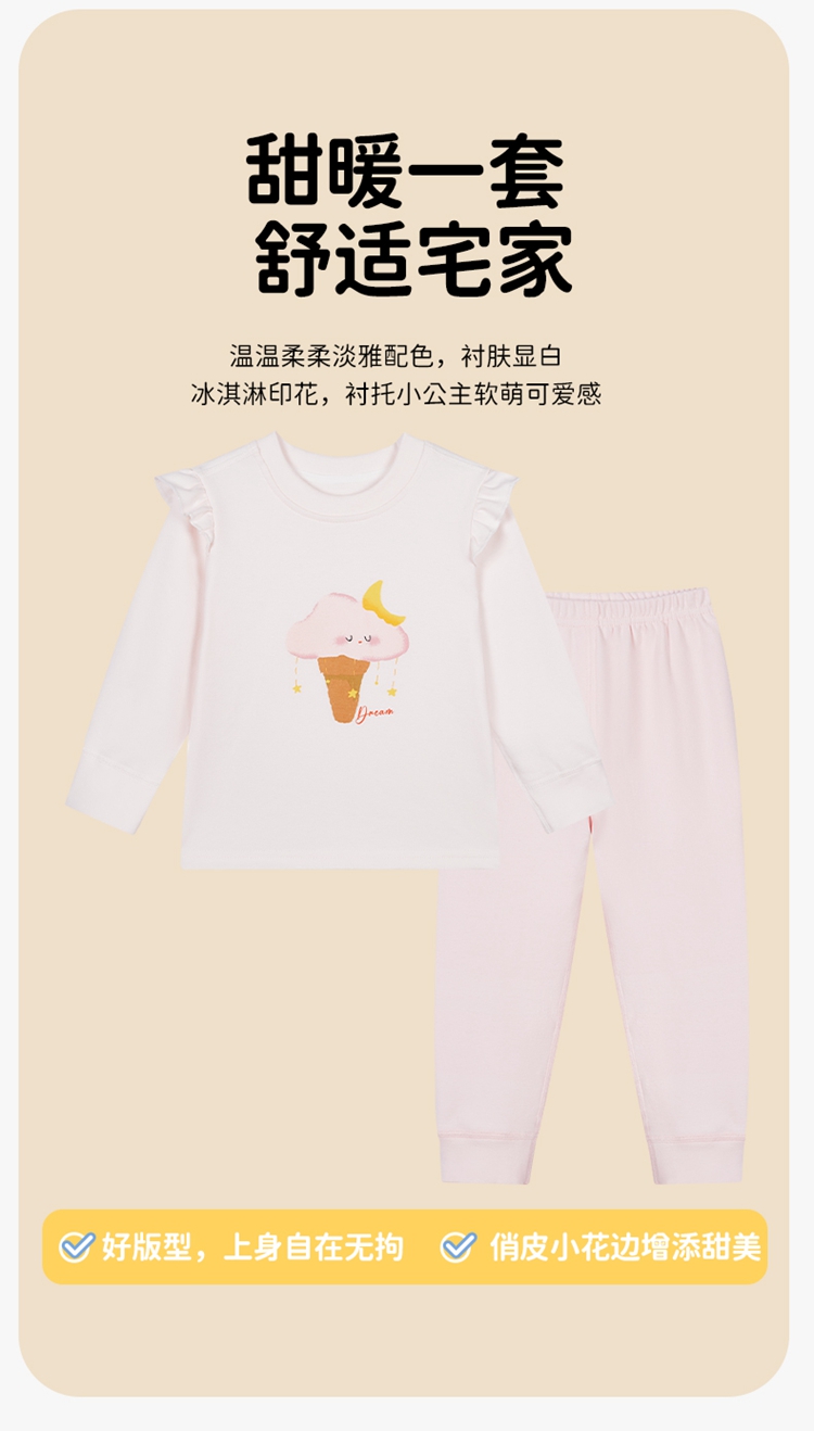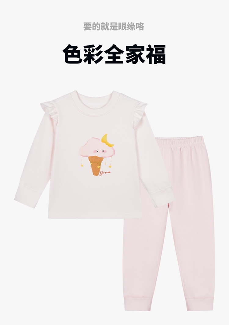 贝贝怡24秋季新款女童圆领家居服亲肤长袖长裤内衣套装ZB3DT031