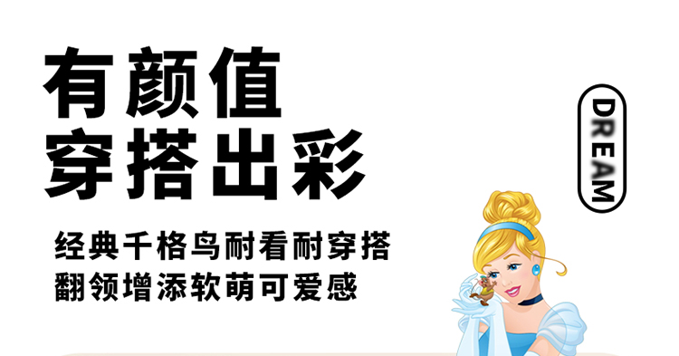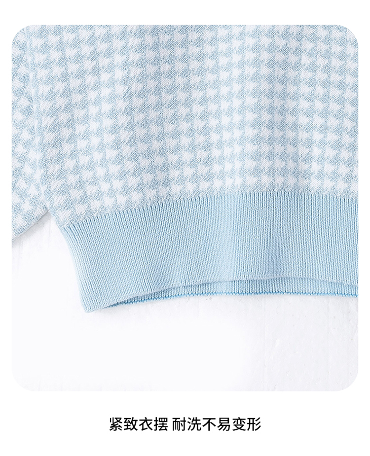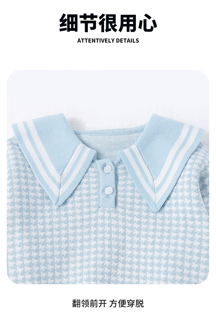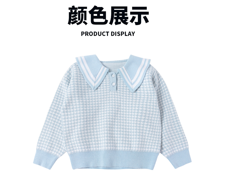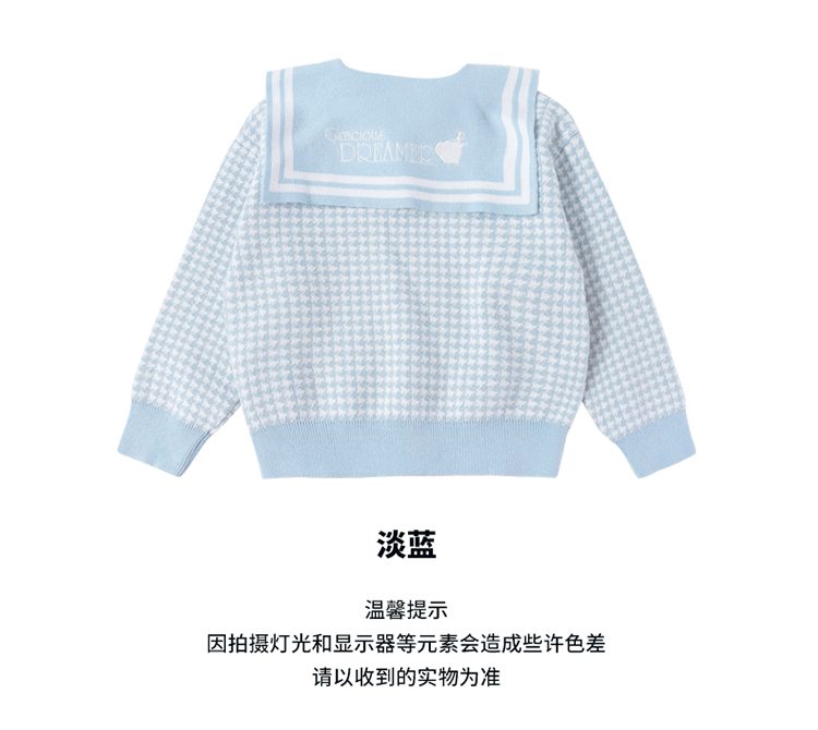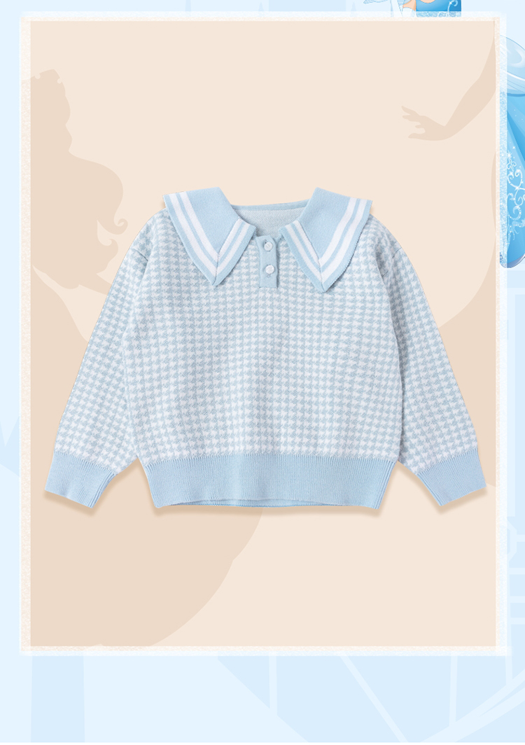 【商场同款】迪士尼童装女童针织套头上衣千鸟格毛衣保暖中小童小香风翻领毛衫214DS0352