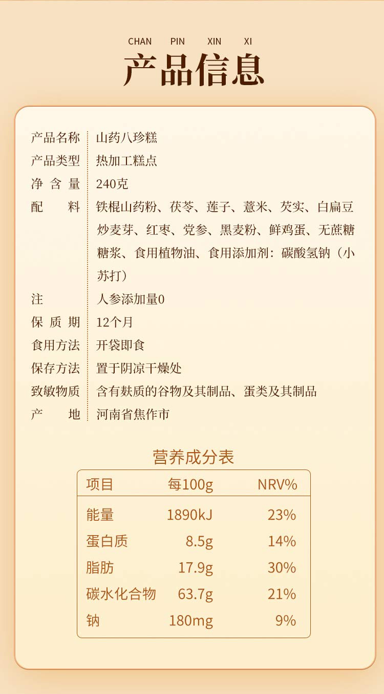 【好吃的】怀府街 八珍糕 八珍古方 养味糕点 口感柔软 香酥可口 独立包装 240g/盒
