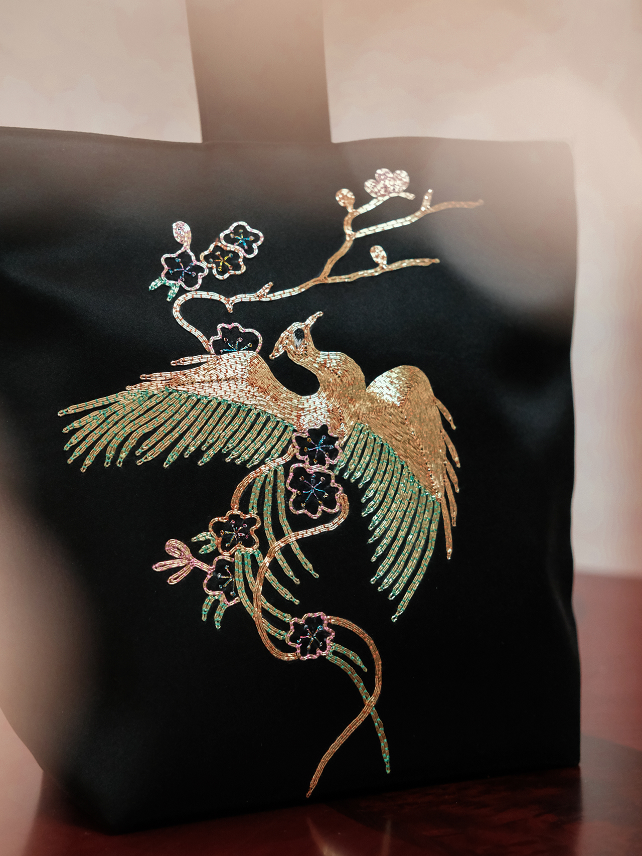 盛唐牡丹用拙系列| 凤戏枝头盘金绣手拎包