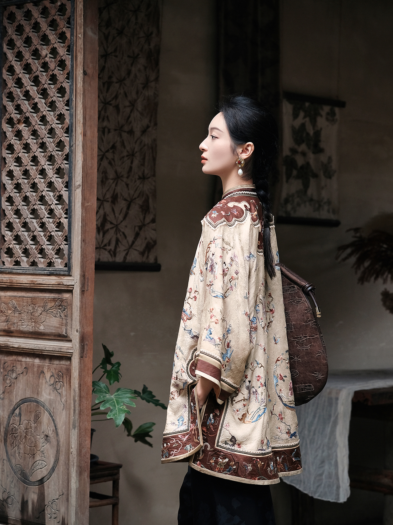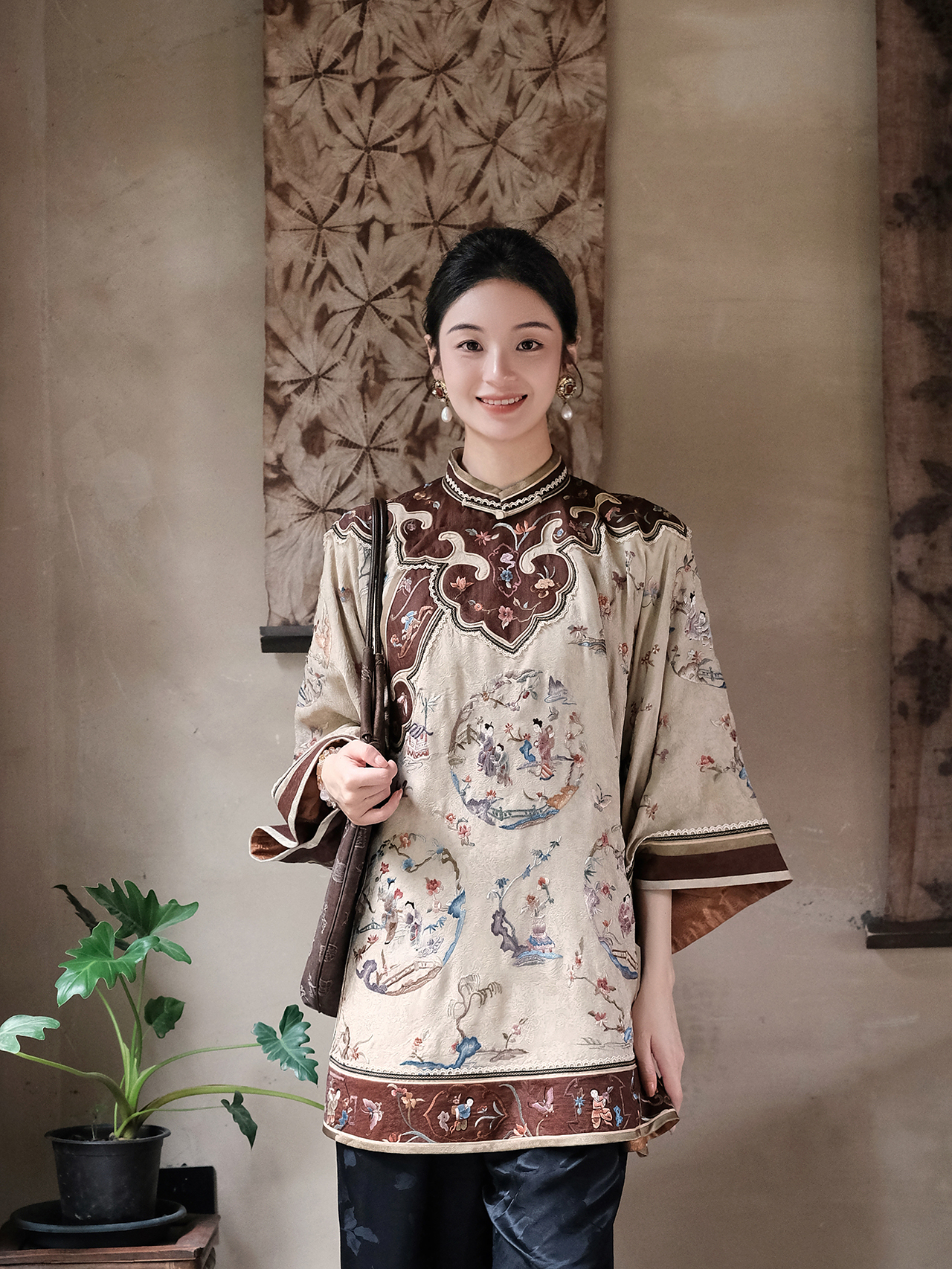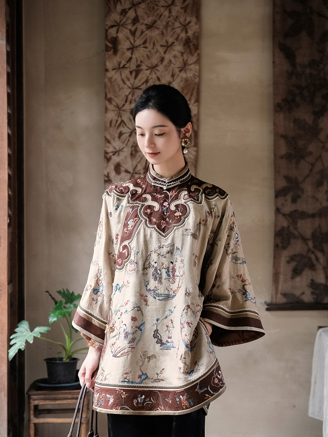 盛唐牡丹盛奢系列|真丝香云纱西厢记团纹外套-咖啡色(特殊商品不退不换)