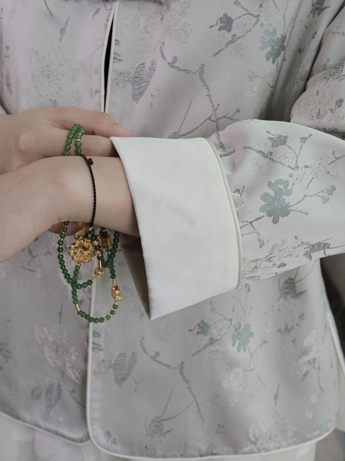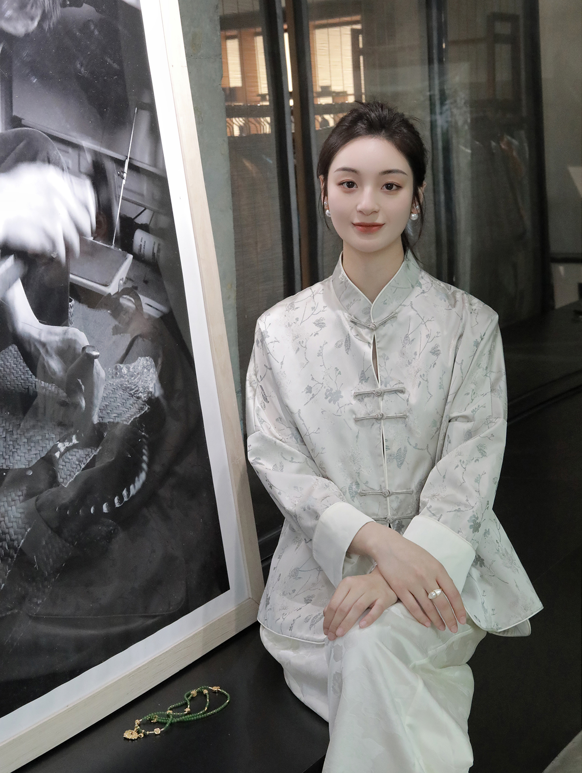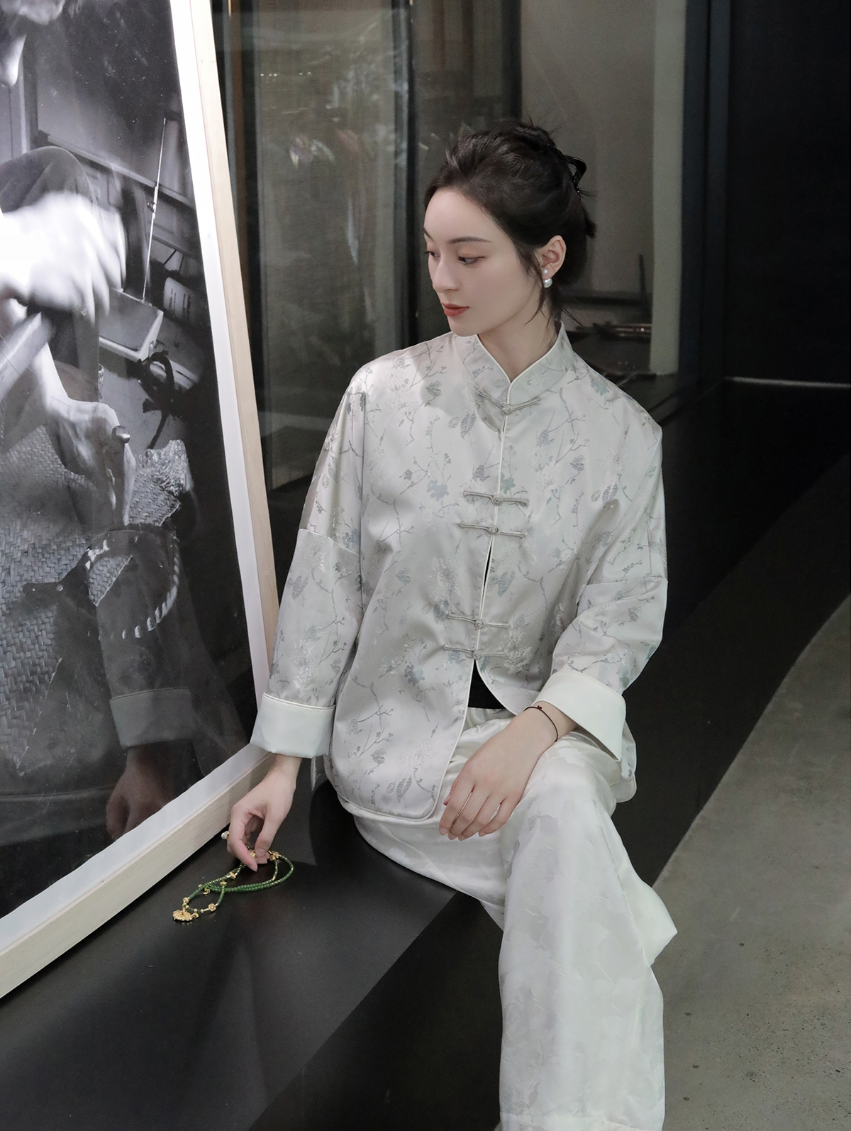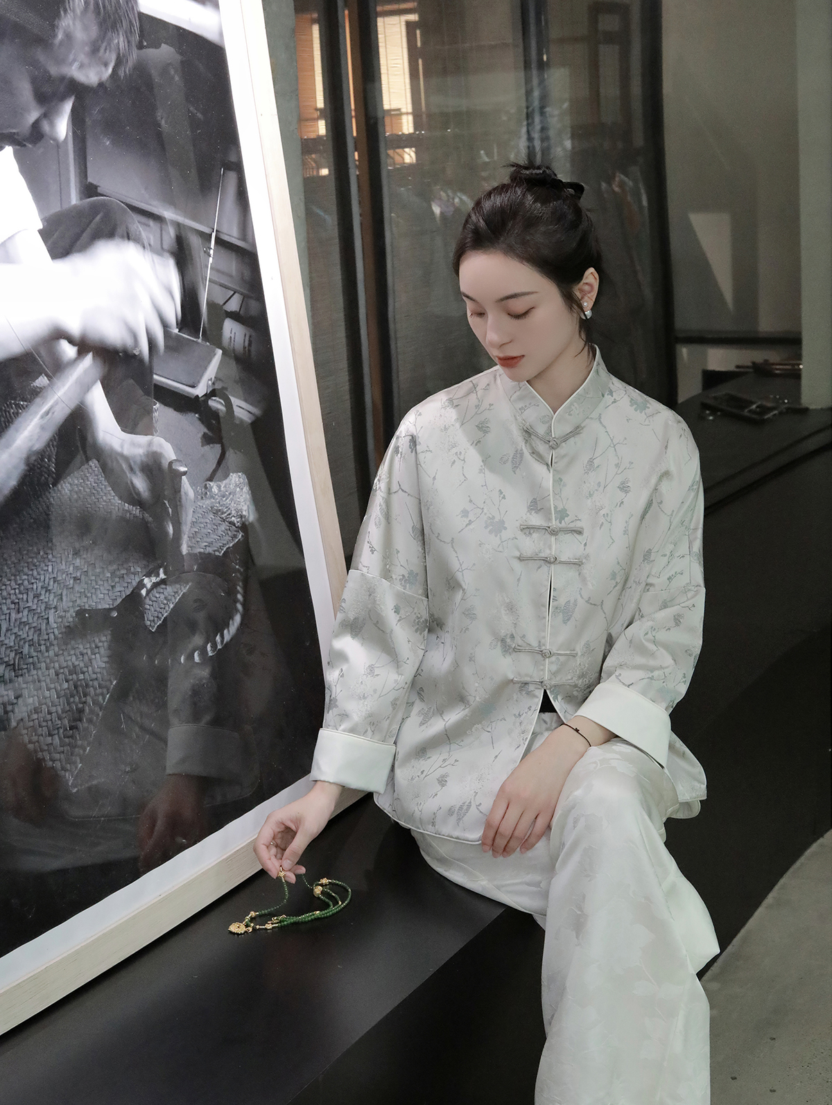 盛唐婧 |真丝宋锦喜鹊梅花立领对襟外套