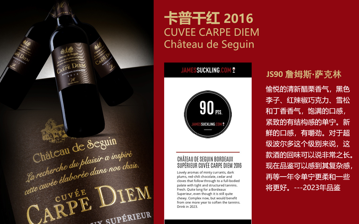塞甘古堡卡普特酿干红 2016 Cuvée CARPE DIEM Chateau de Seguin Bordeaux Supérieur