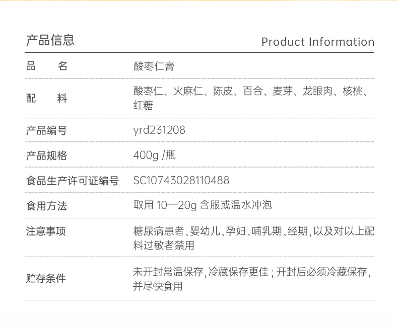 【昀蓉时光 · 手熬酸枣仁膏】沿用古方紫铜锅 不断火足时熬制18小时 · 选用道地国产酸枣仁· 一夜好眠 (400g/瓶)(包装升级·新老包装随机发货)