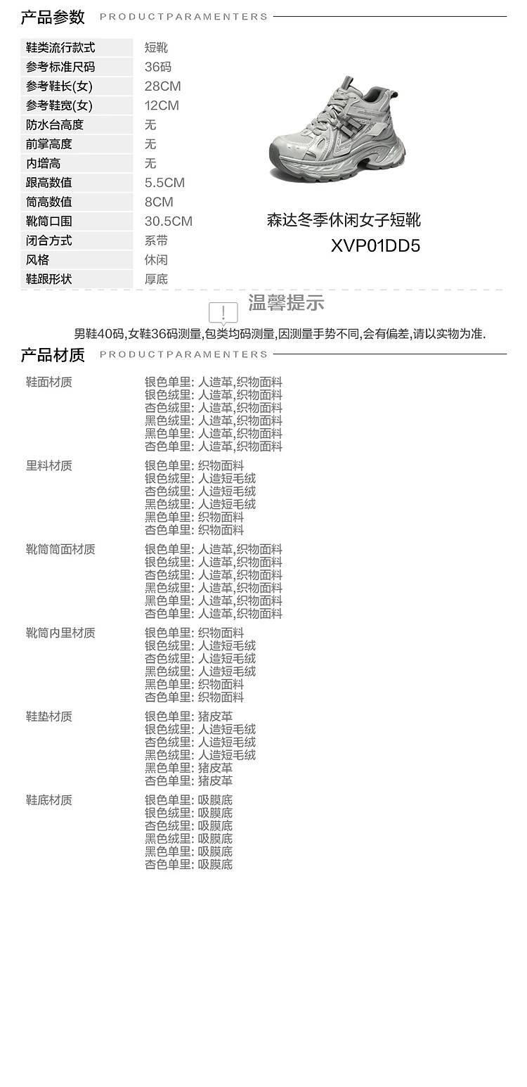 【云粉节】BF楼 森达老爹鞋2025冬季新款运动老爹短靴XVP01D吊牌价959活动价399