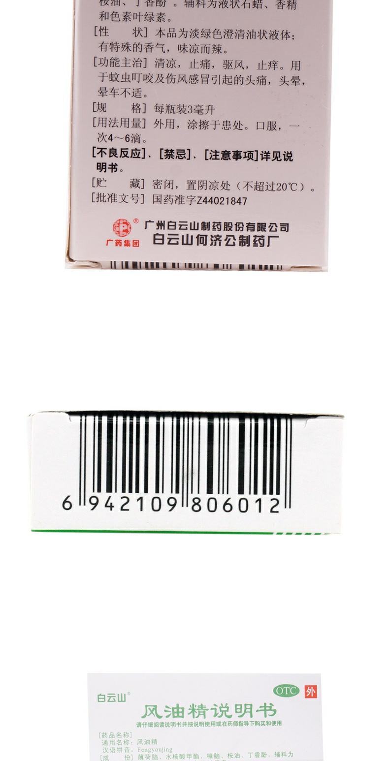 白云山风油精3ml*1瓶/盒止痛驱风止痒蚊虫叮咬头痛头晕