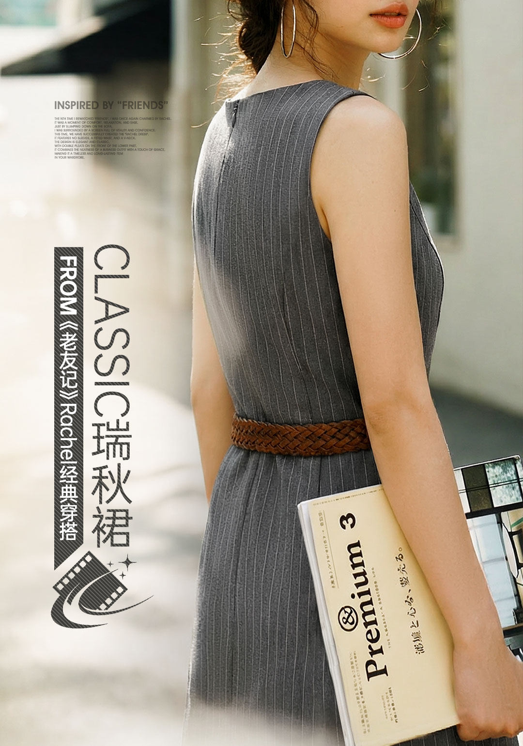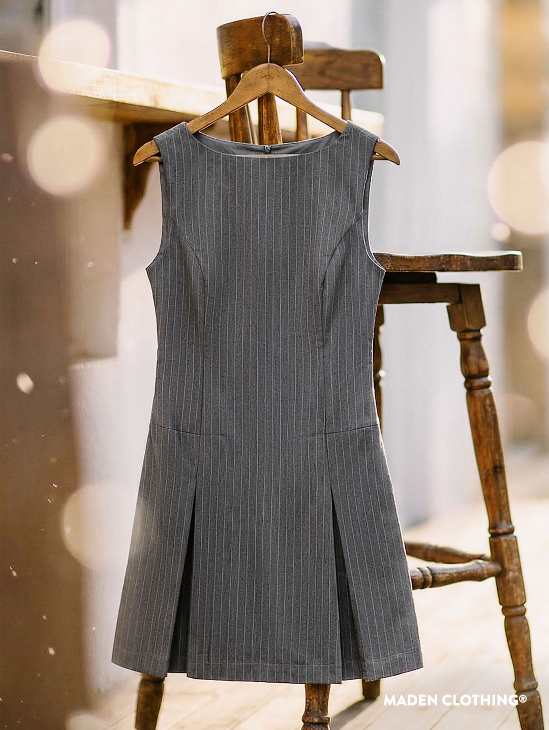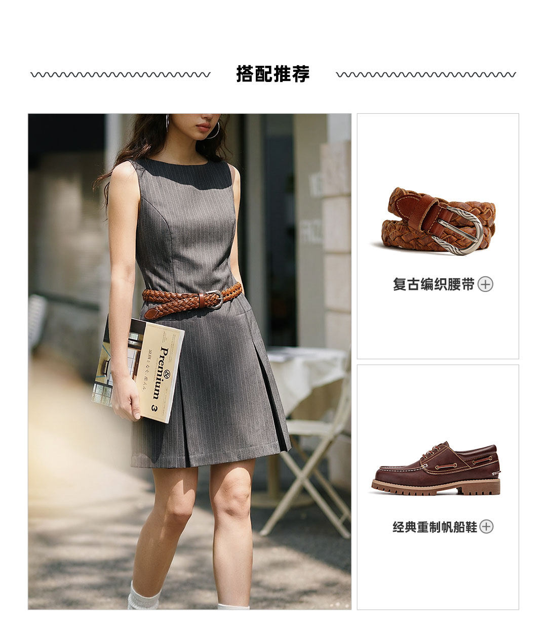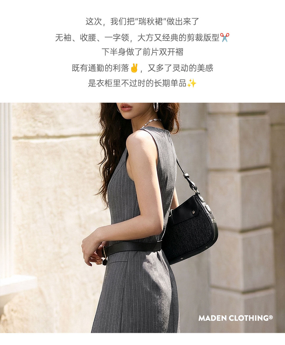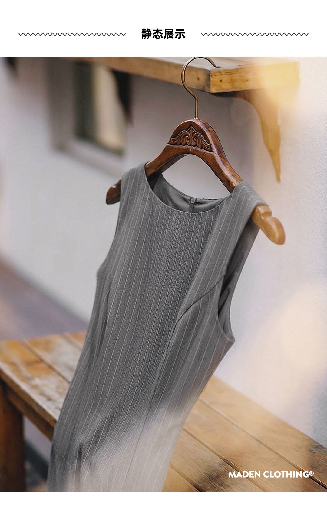 马登灰色轻职场西装瑞秋裙子知识分子无袖背心收腰连衣身长裙女夏