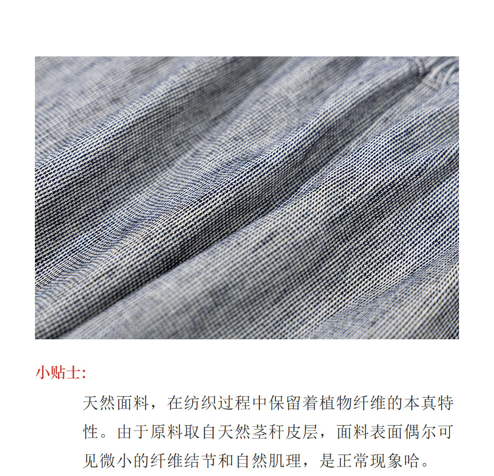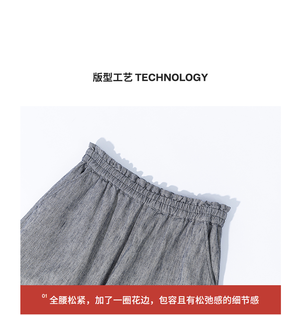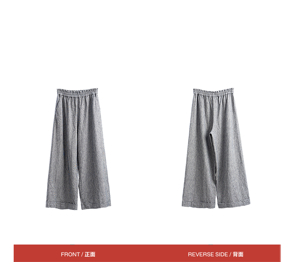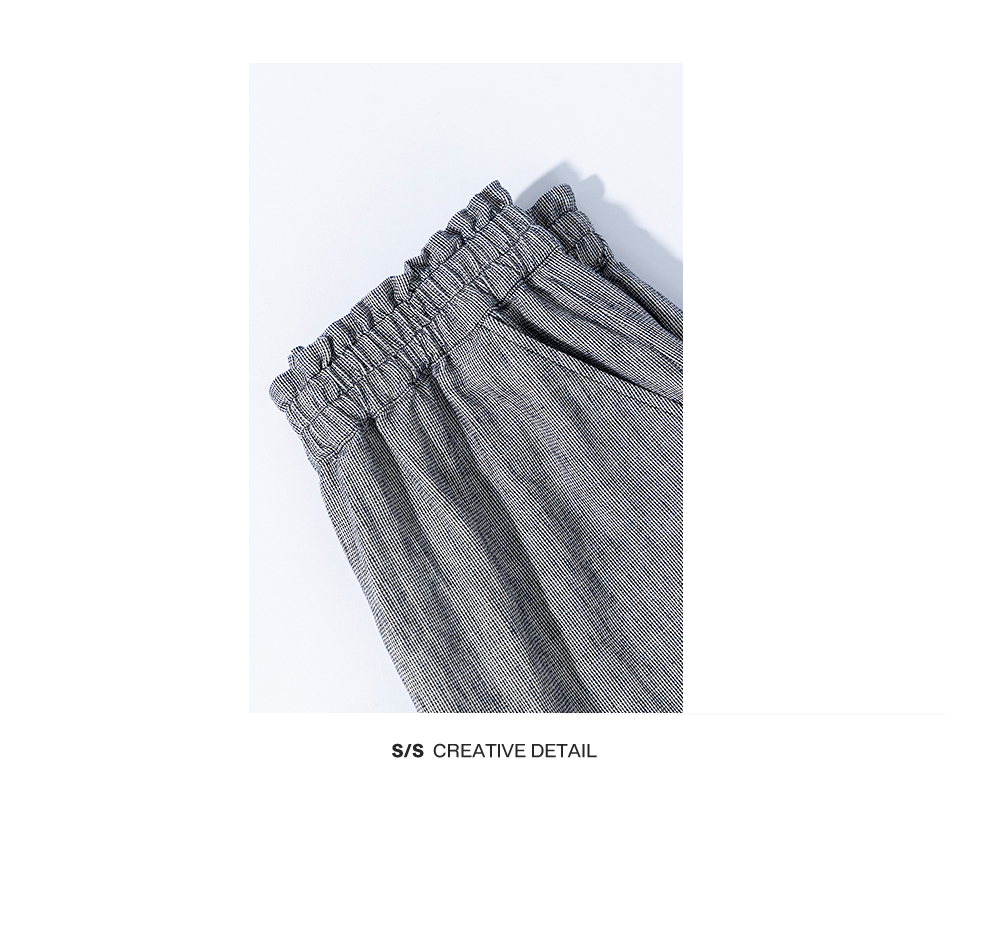 绽放804朵/百搭麻棉色织条纹全腰松紧休闲裤女文艺复古直筒阔腿裤
