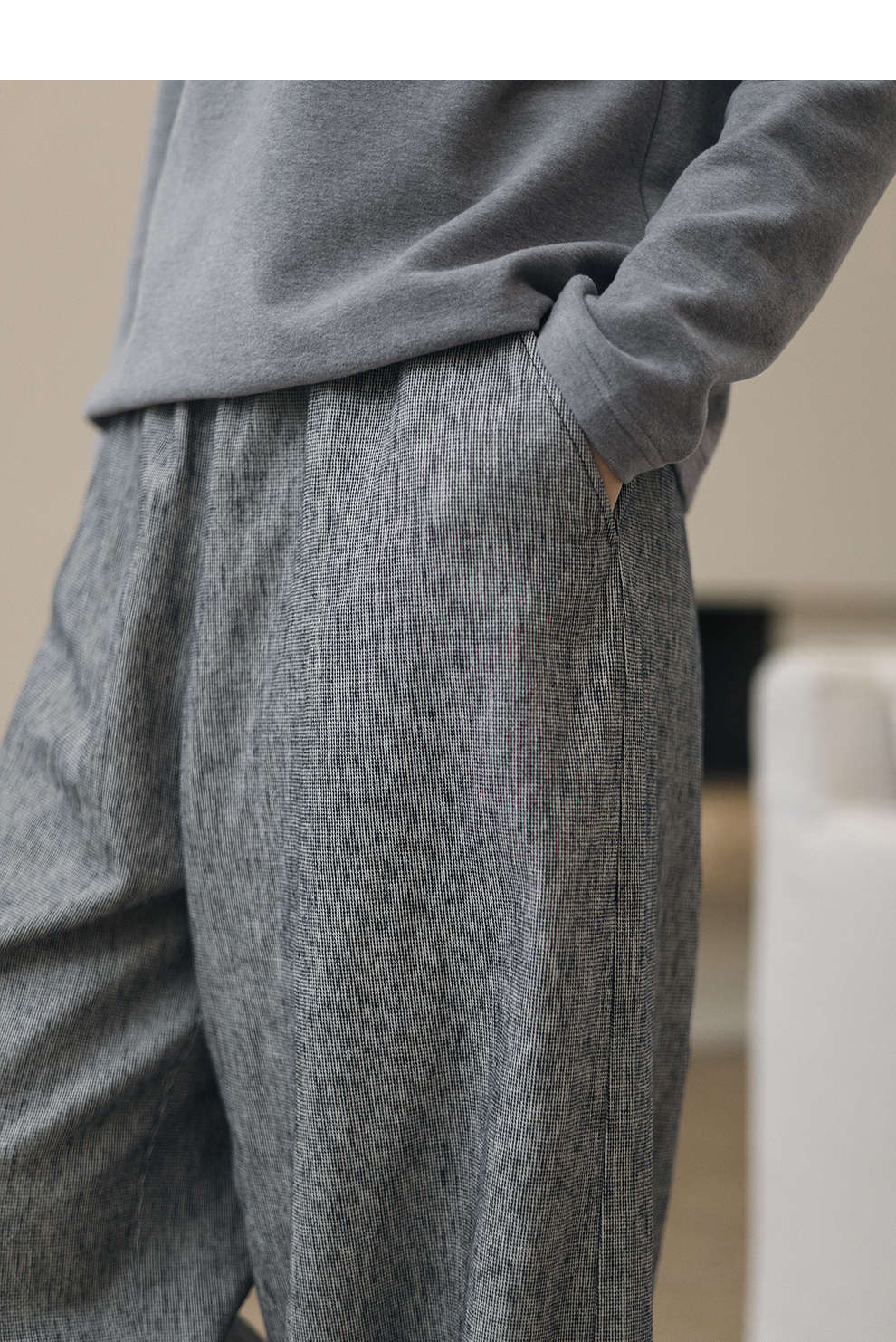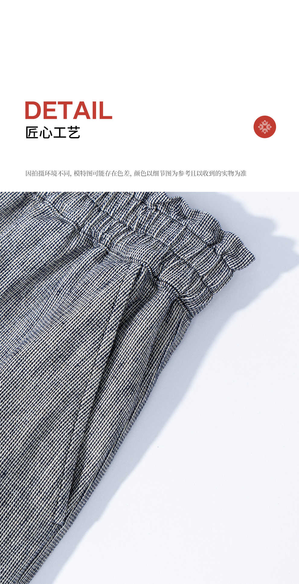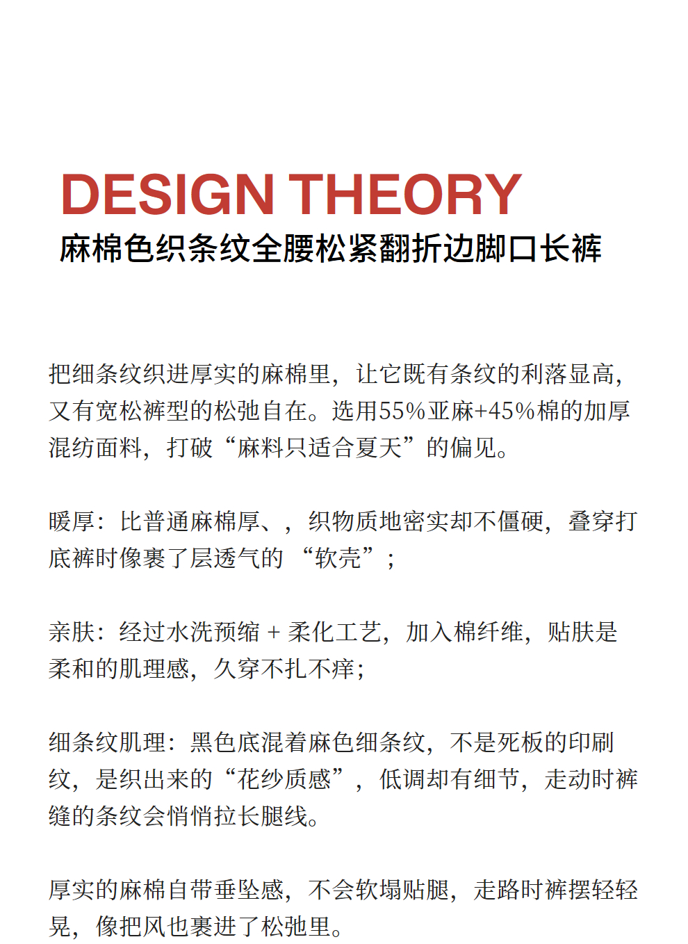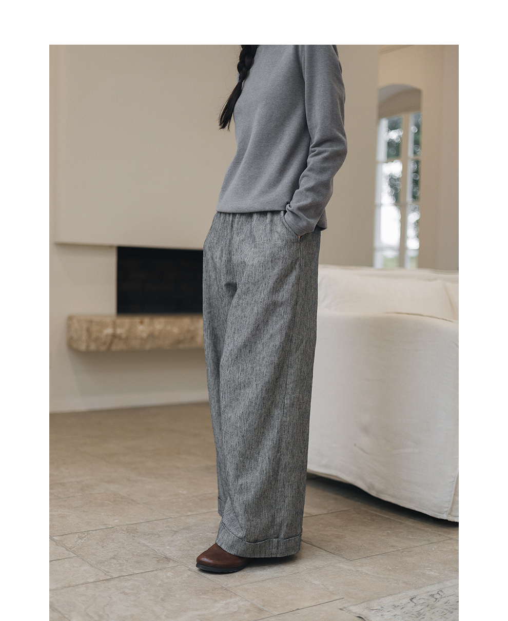绽放804朵/百搭麻棉色织条纹全腰松紧休闲裤女文艺复古直筒阔腿裤