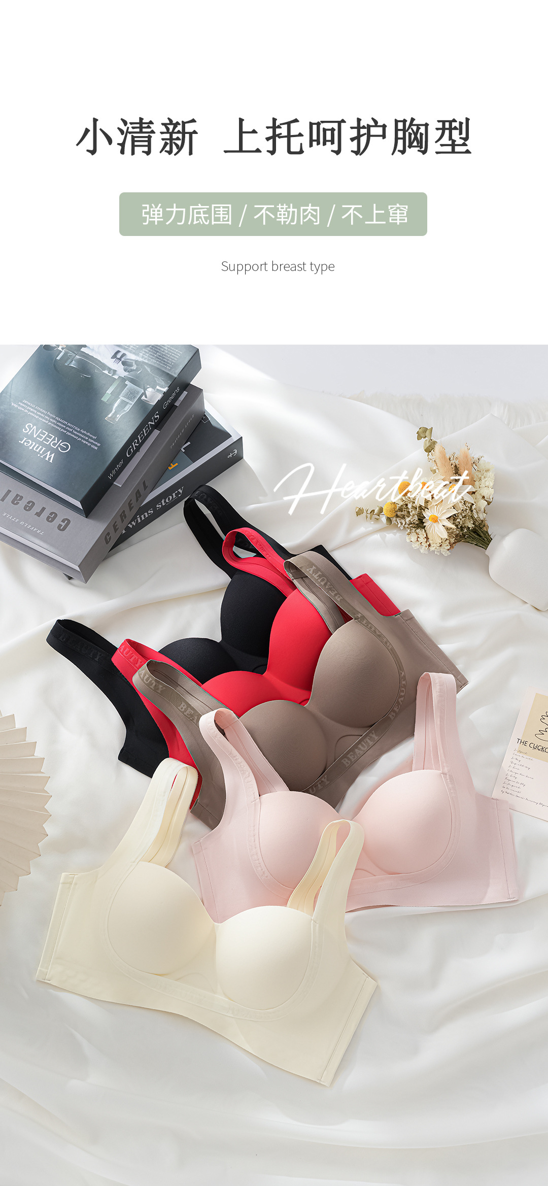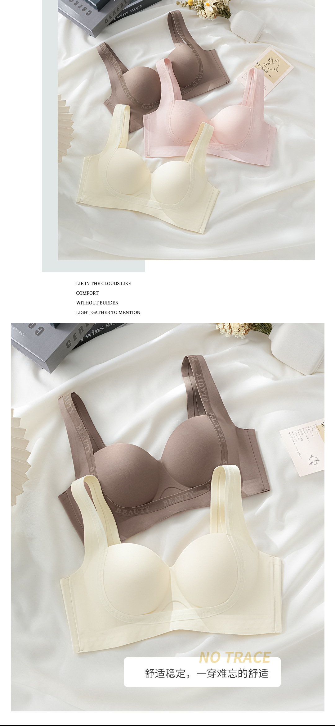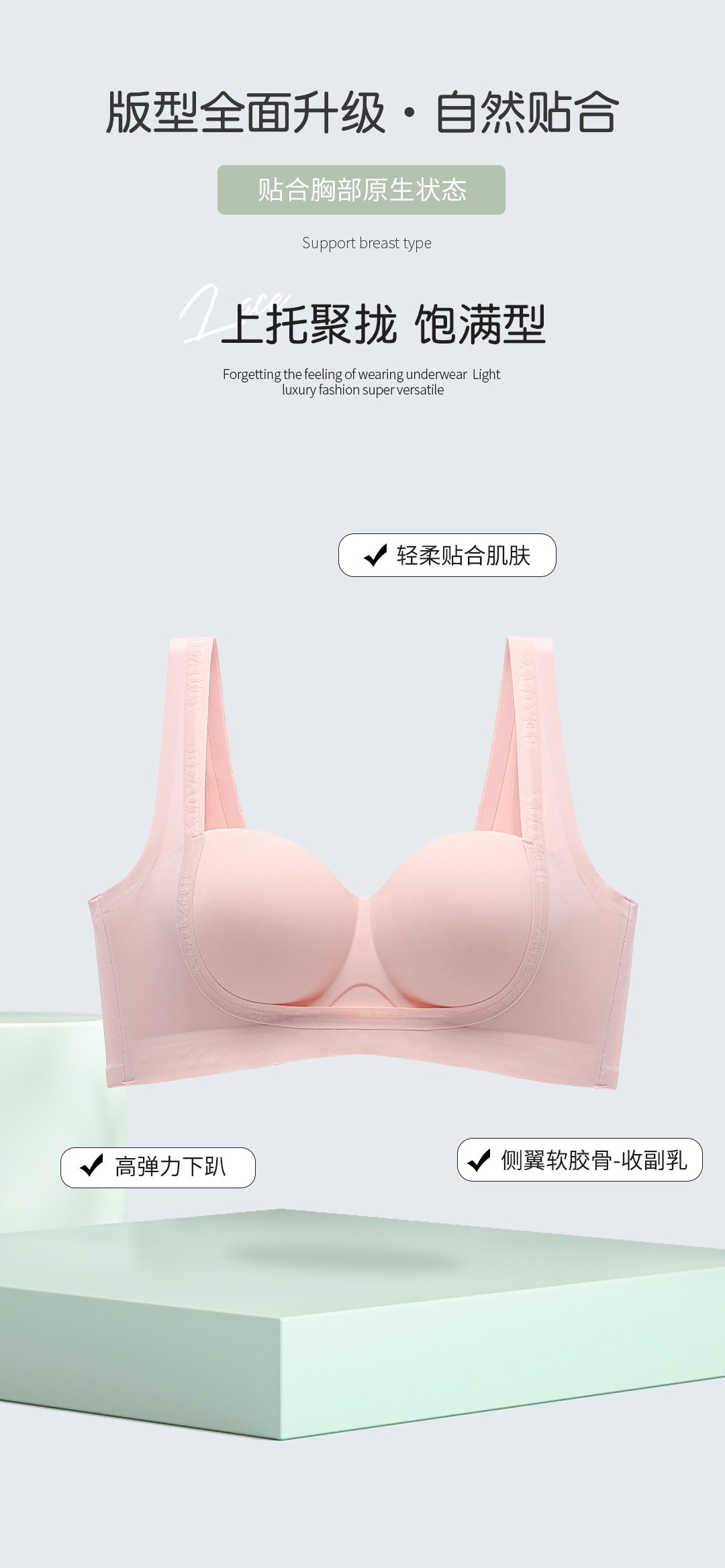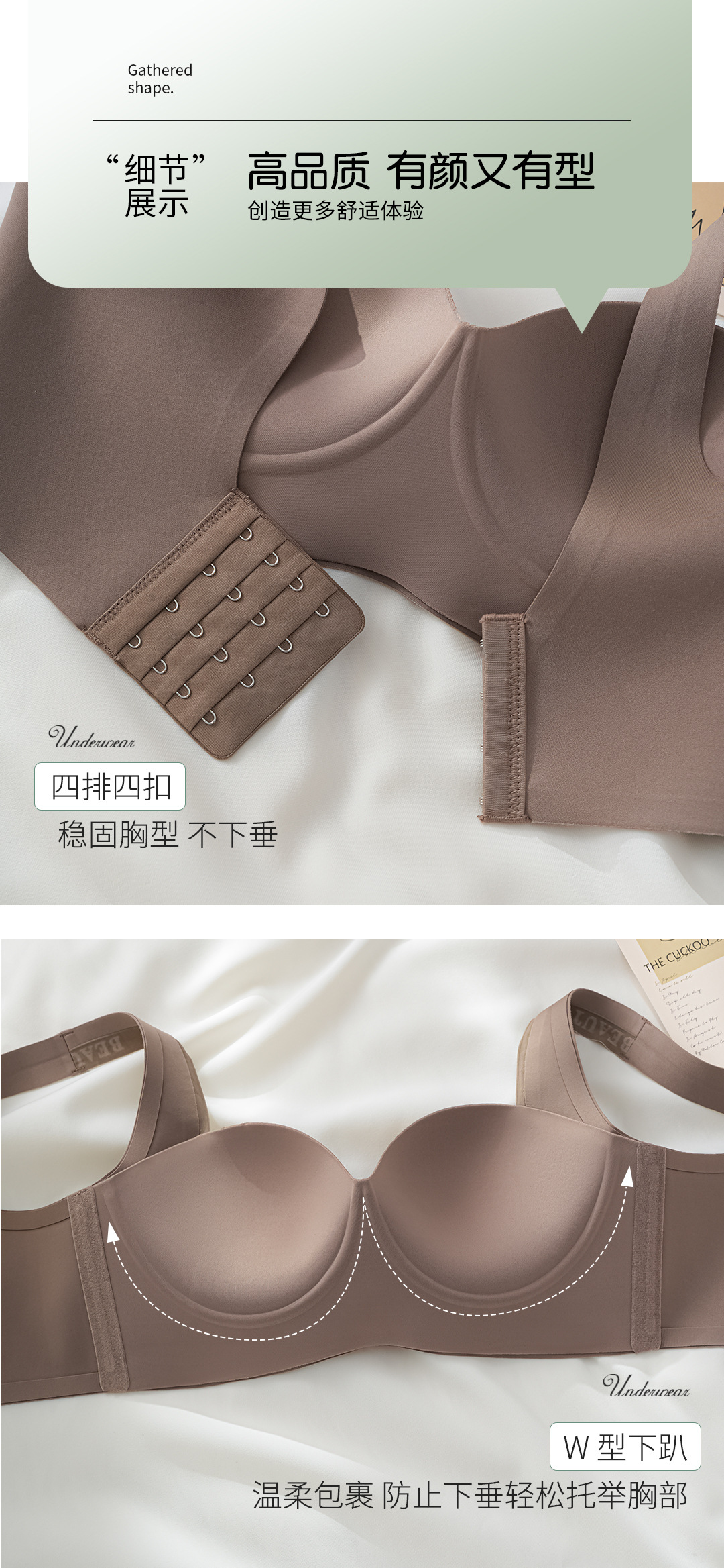 聚拢提拉轻塑内衣 大胸不坠 无痕内衣女夏季 小胸聚拢显大上托收副乳防下垂平胸专用文胸罩