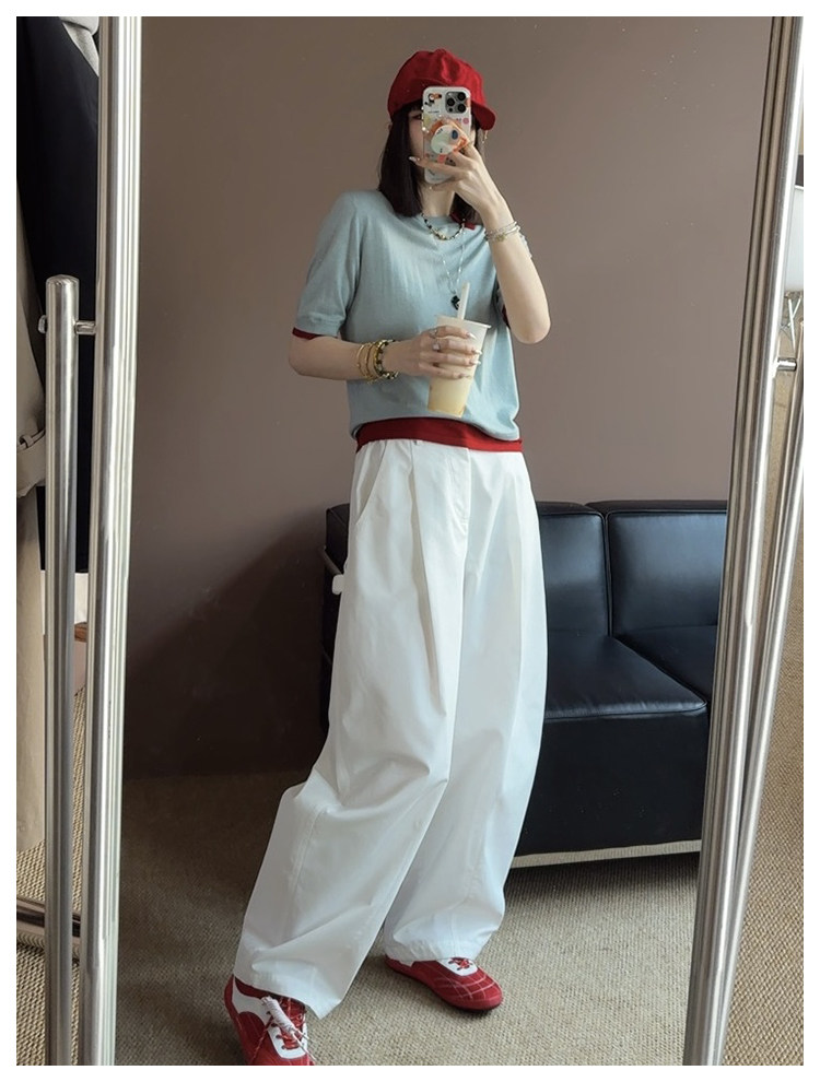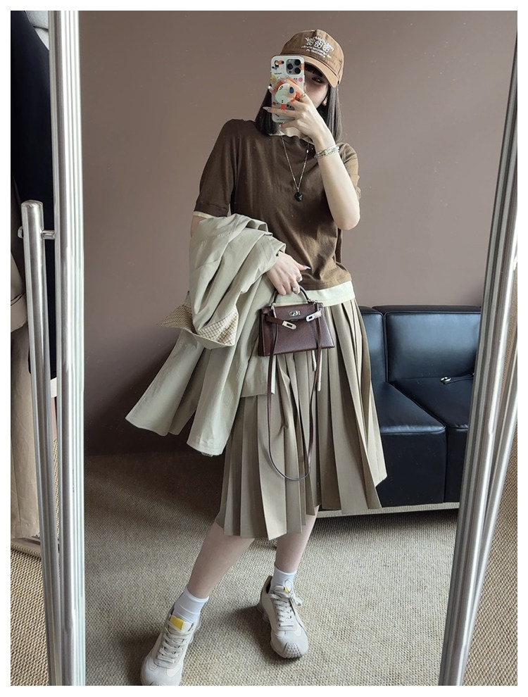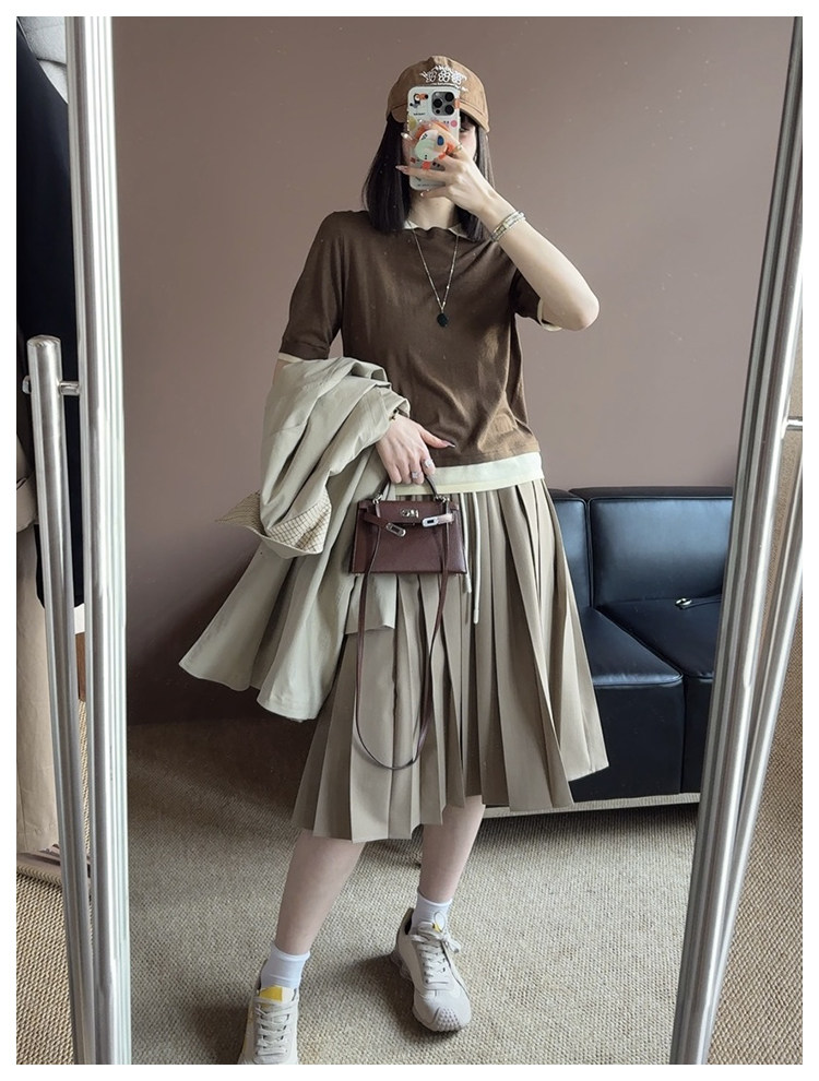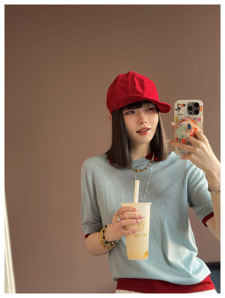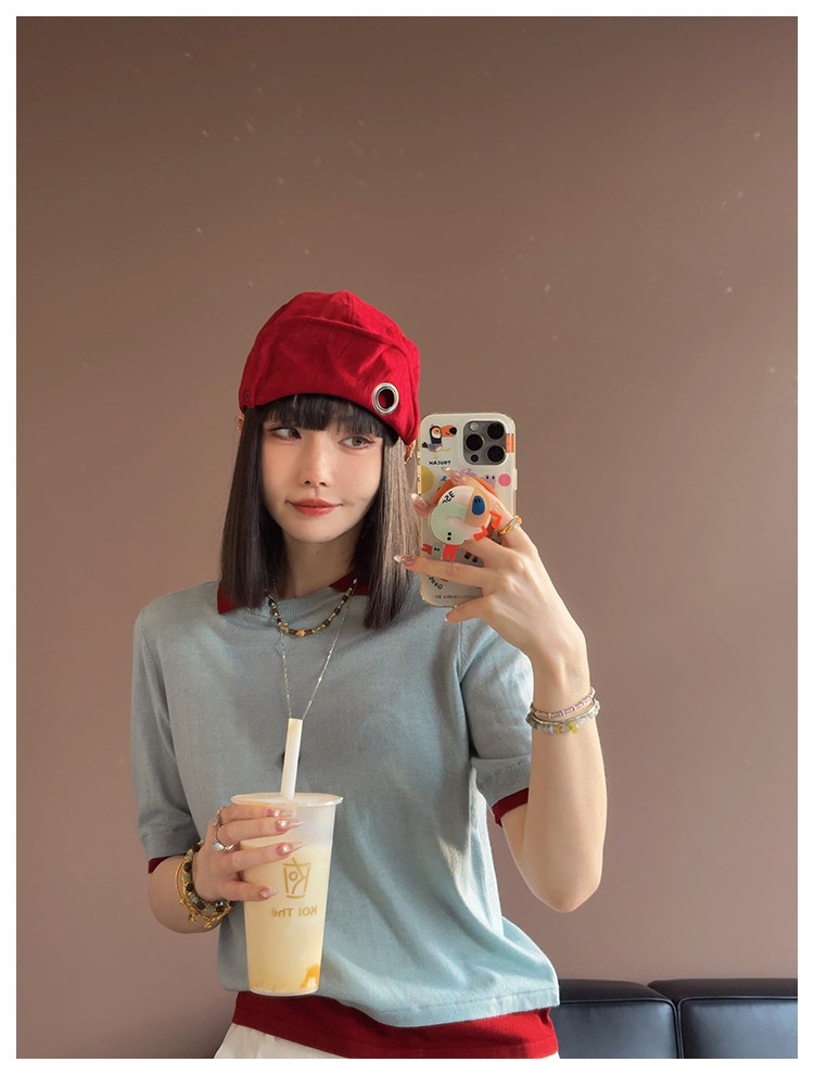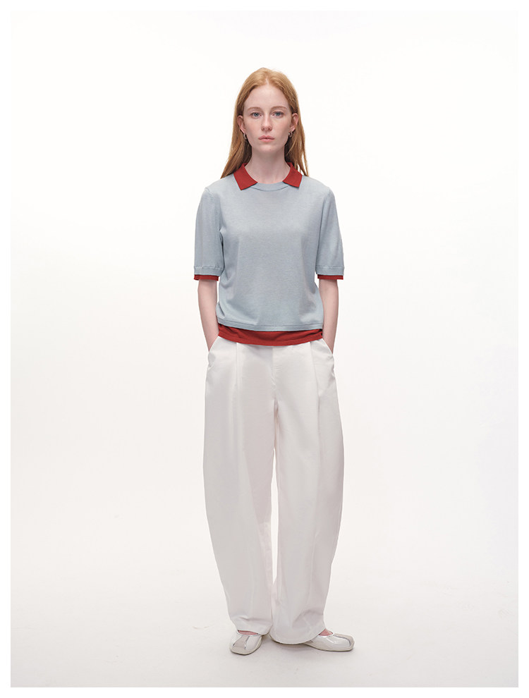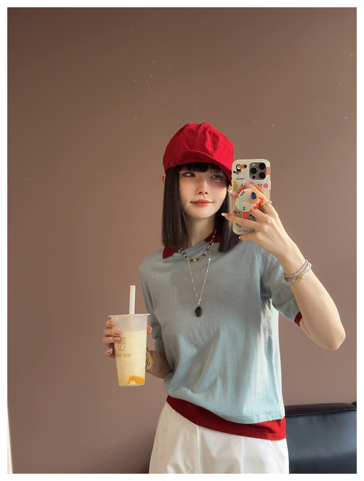 UMILAB【简然】科技奶油棉细腻柔软层次撞色真两件叠穿T恤T702W
