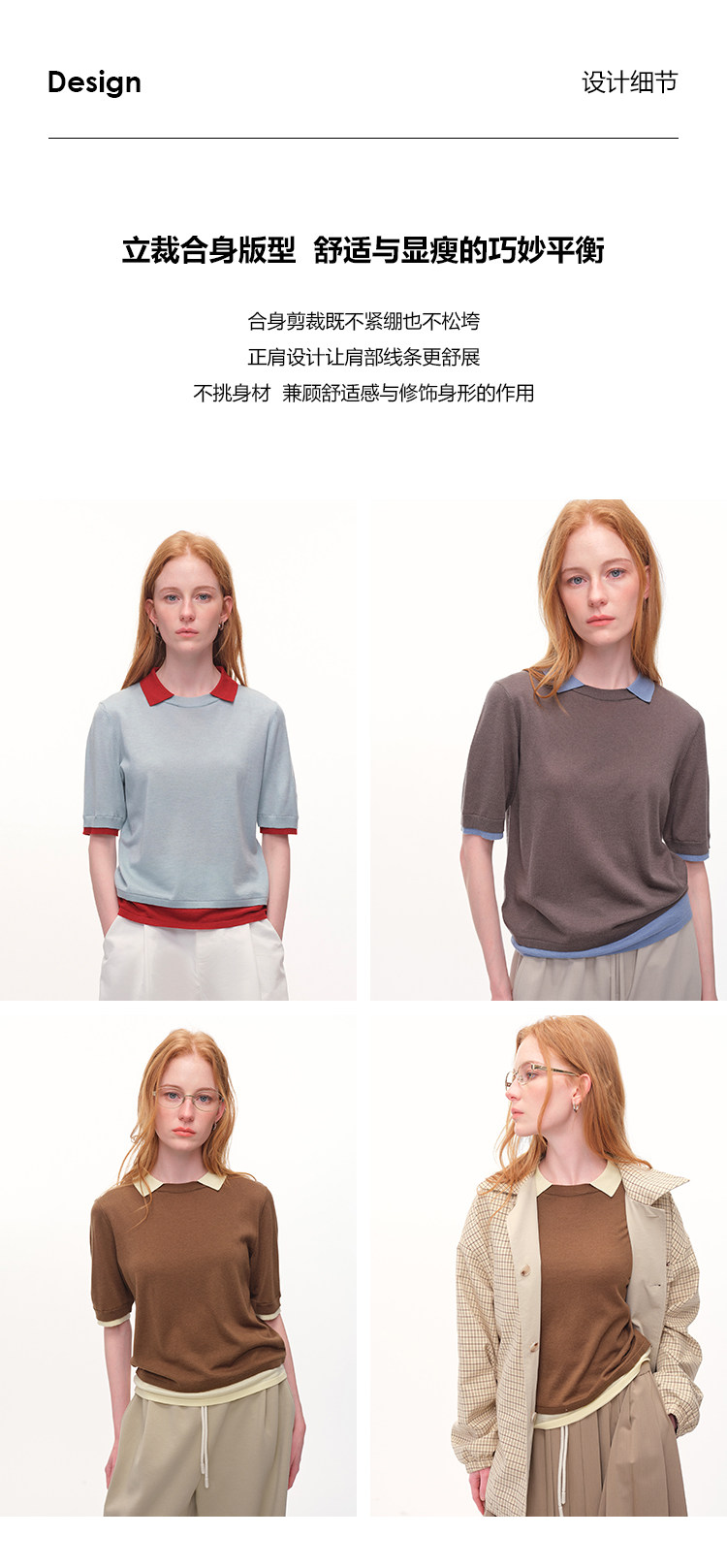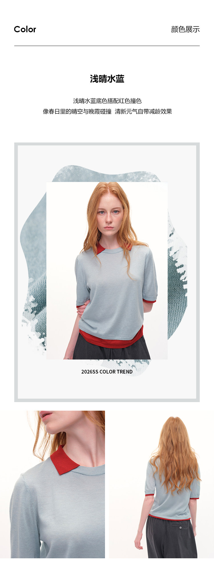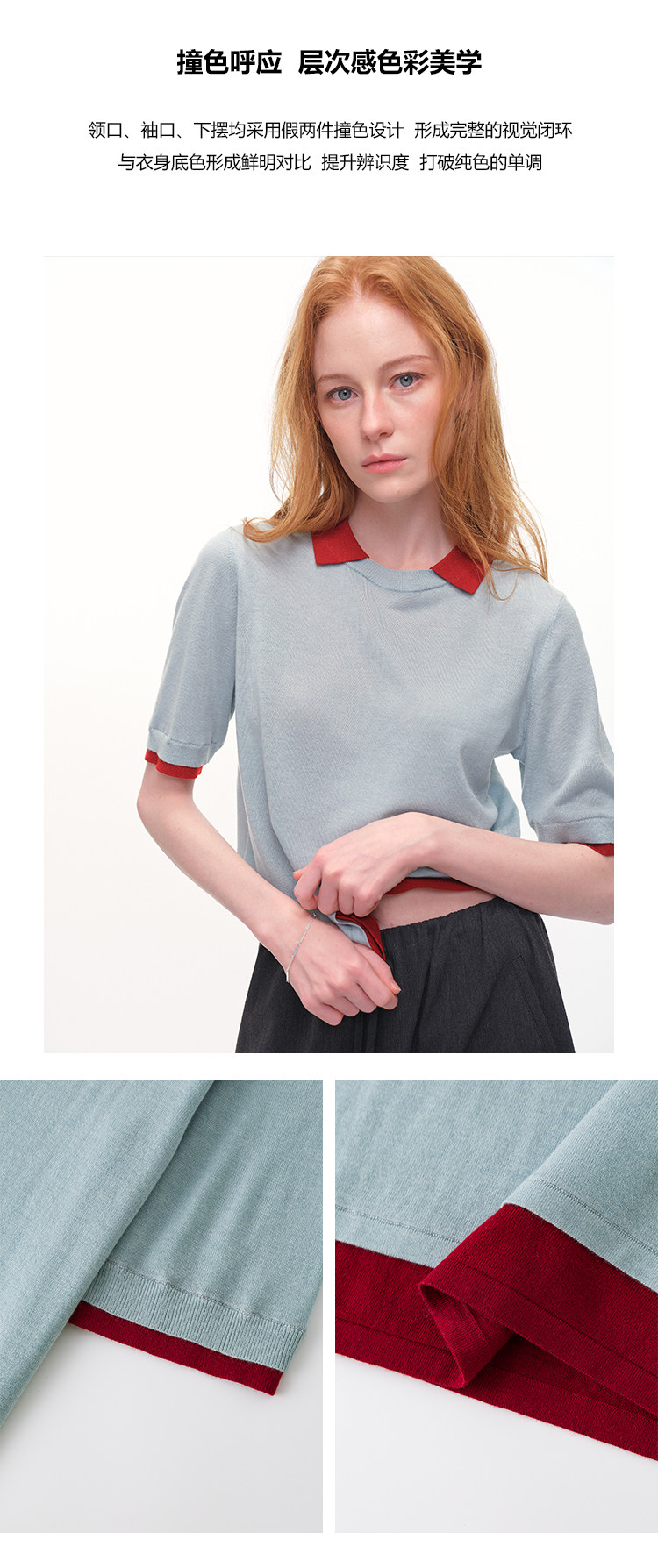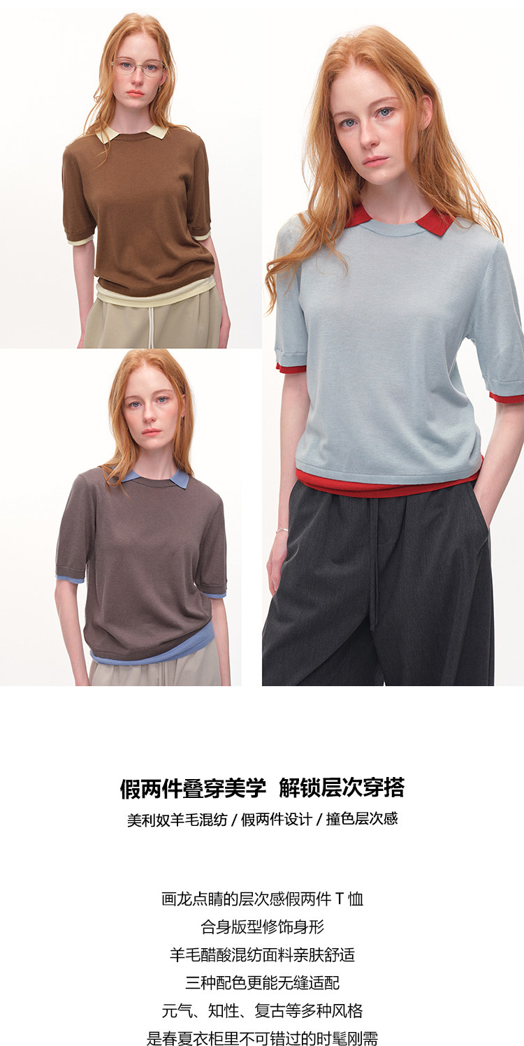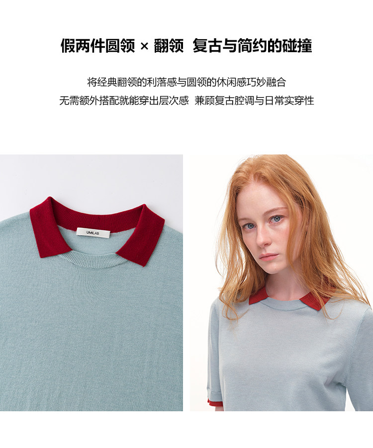 UMILAB|欧若拉*绝美配色 巴素兰精纺羊毛+醋酸 假两件中袖针织衫M912V