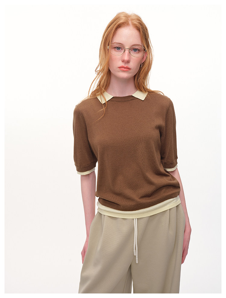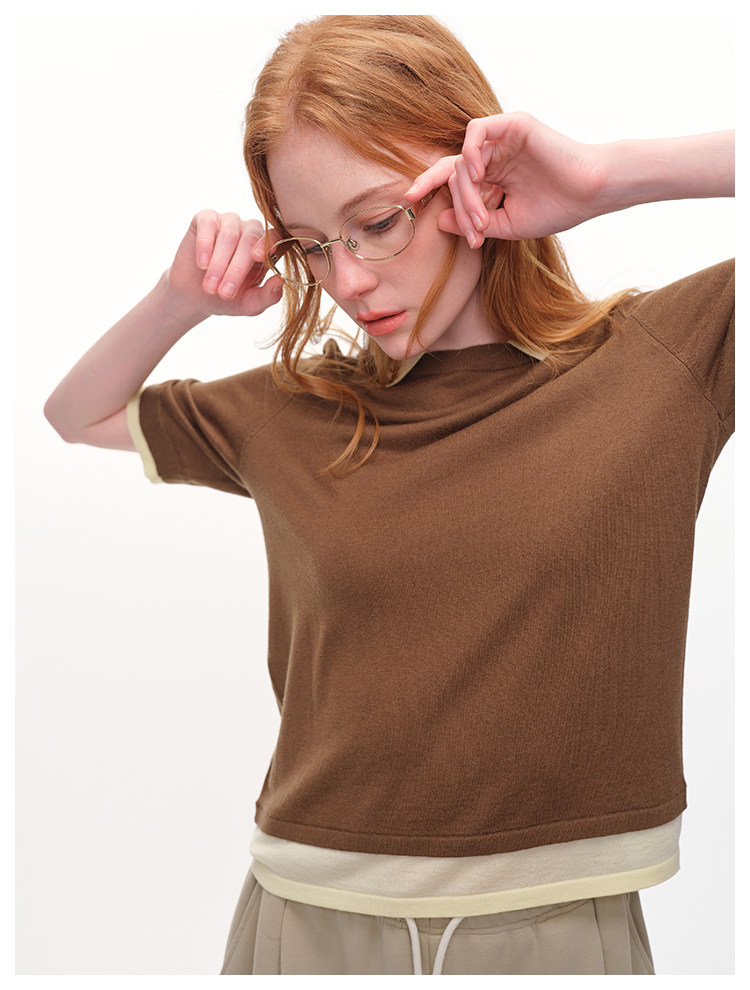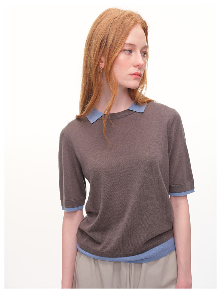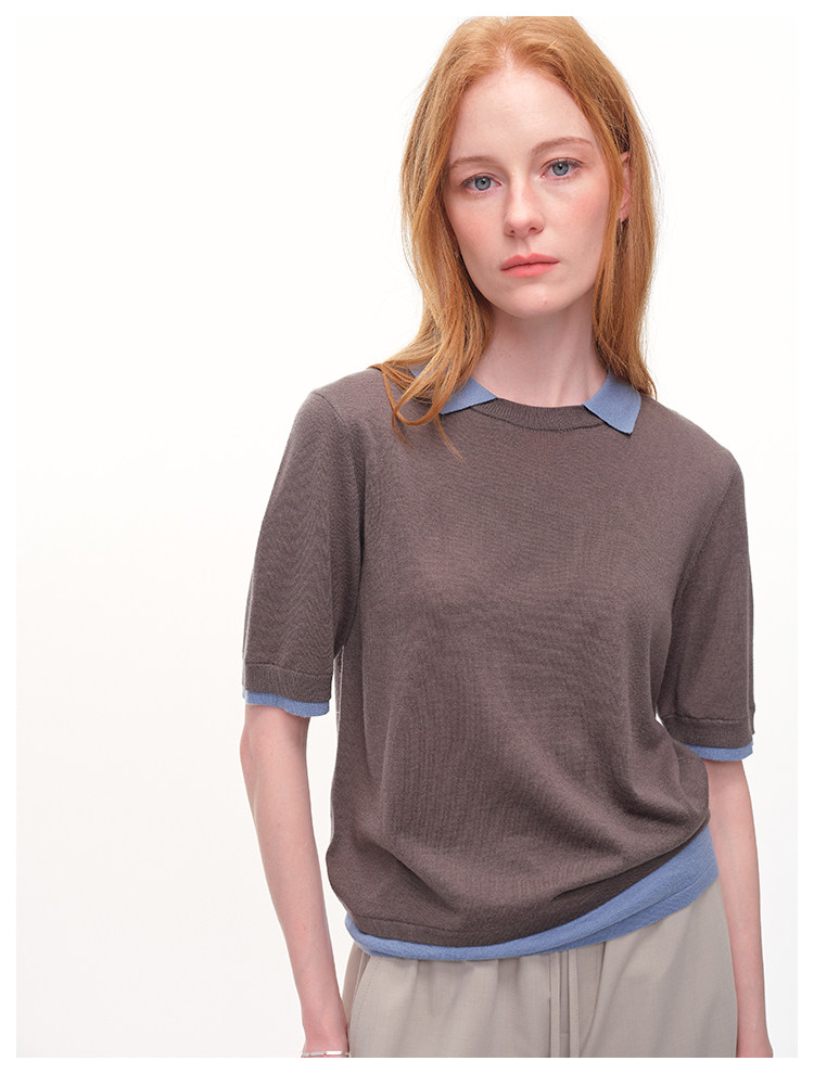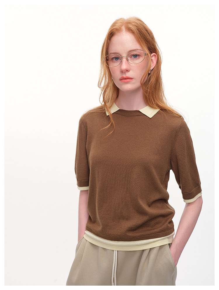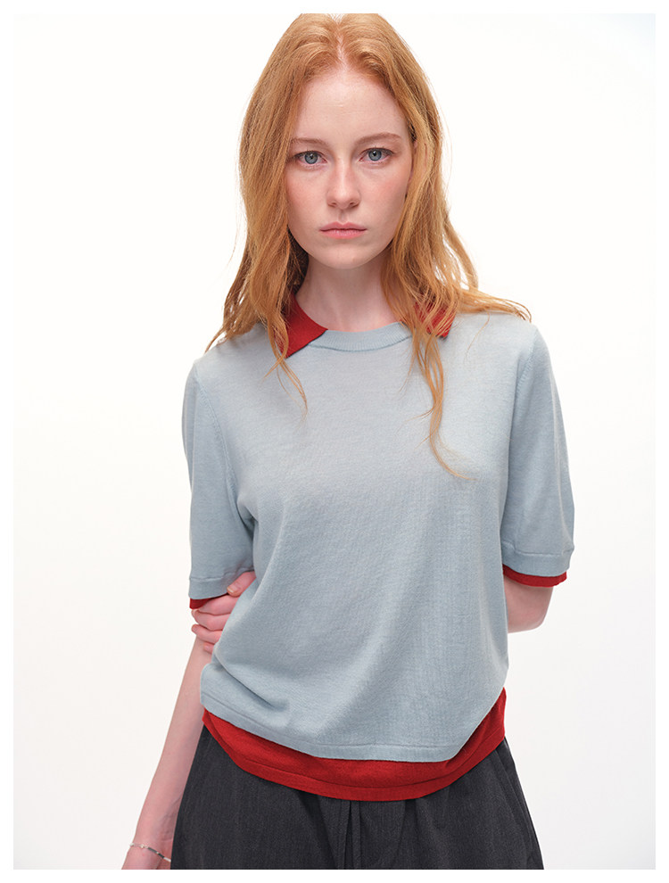 UMILAB|欧若拉*绝美配色 巴素兰精纺羊毛+醋酸 假两件中袖针织衫M912V