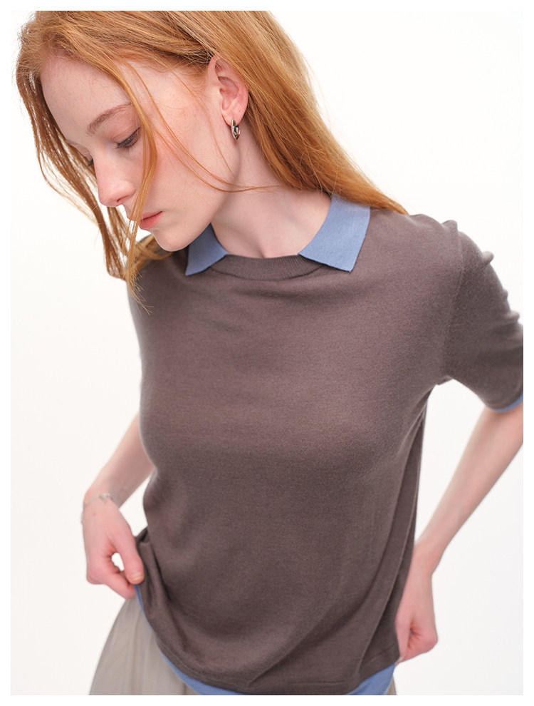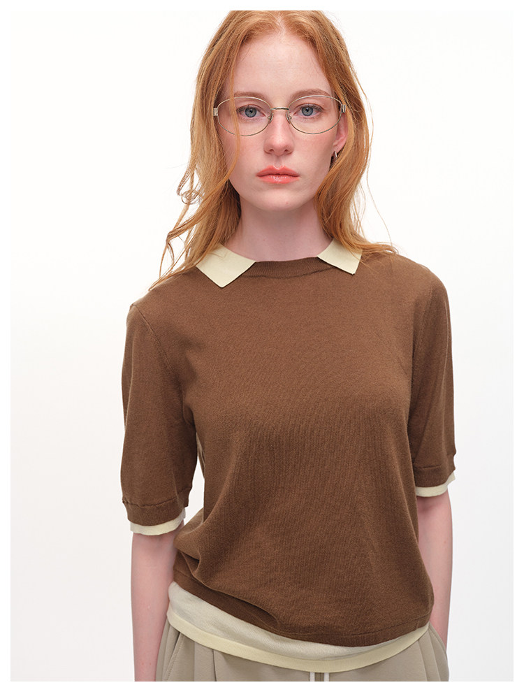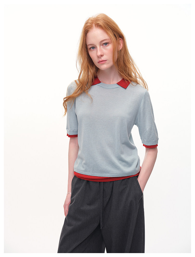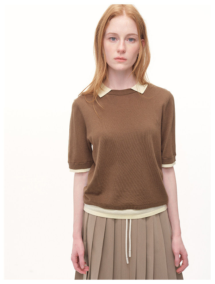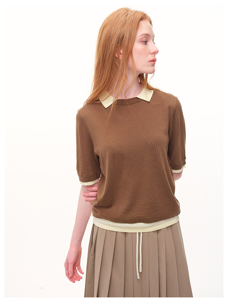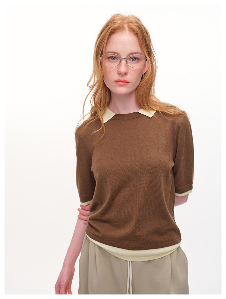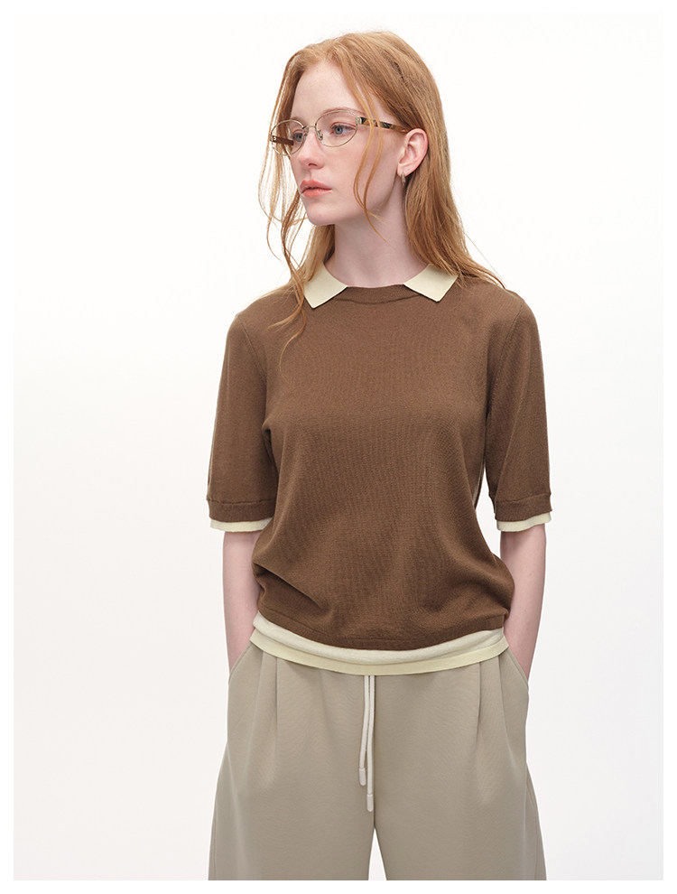 UMILAB|欧若拉*绝美配色 巴素兰精纺羊毛+醋酸 假两件中袖针织衫M912V