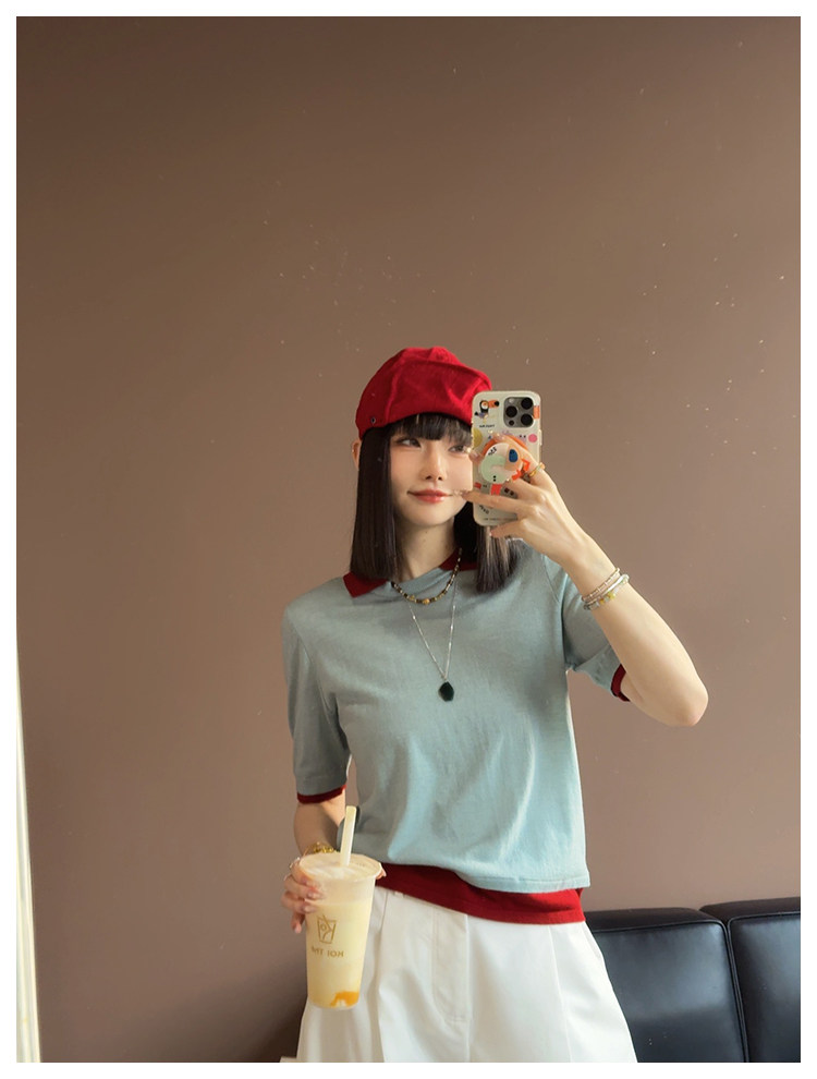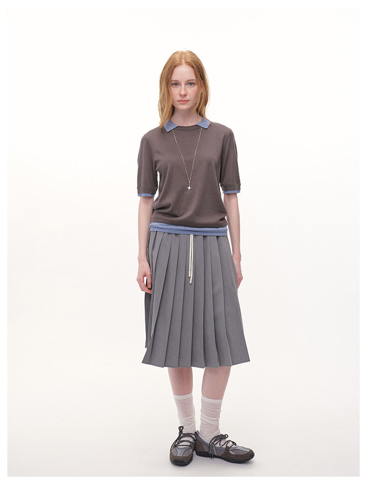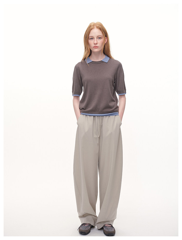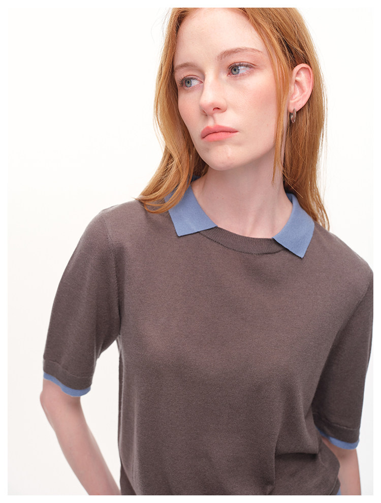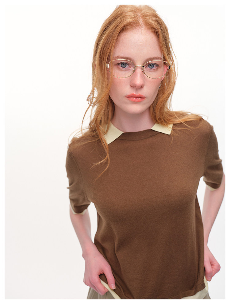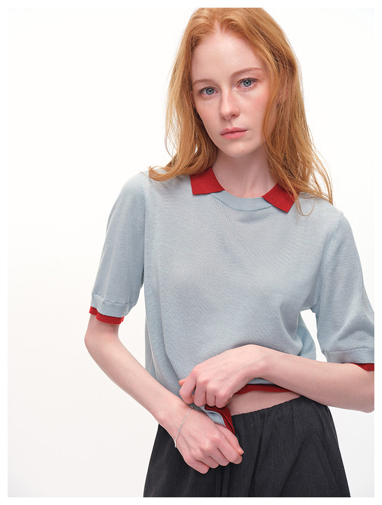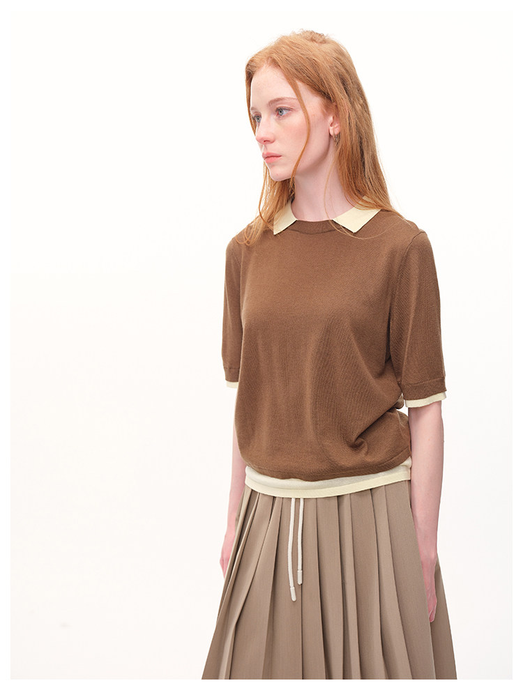 UMILAB|欧若拉*绝美配色 巴素兰精纺羊毛+醋酸 假两件中袖针织衫M912V