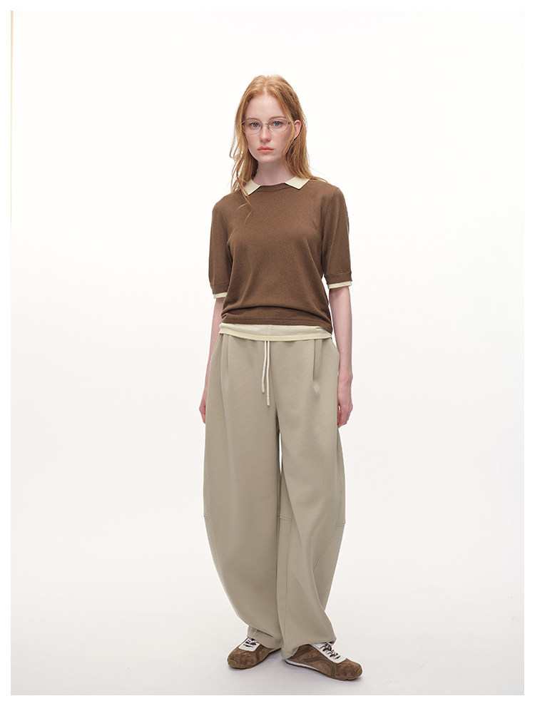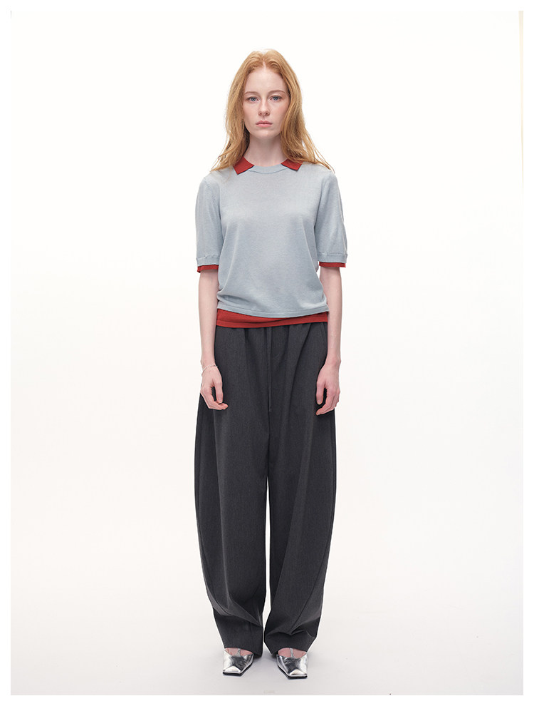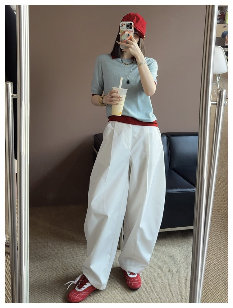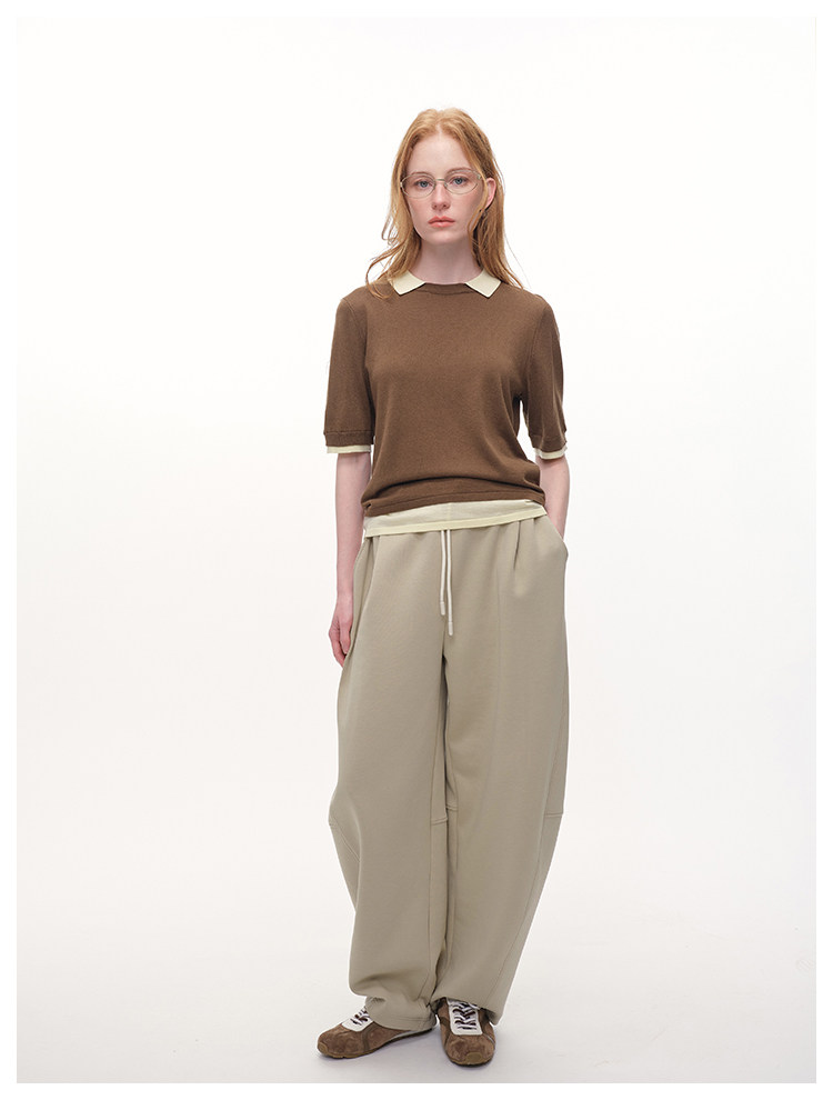 UMILAB【千帆】自在少年感半松紧腰立体捏褶K皱藏肉茧型裤P1225H