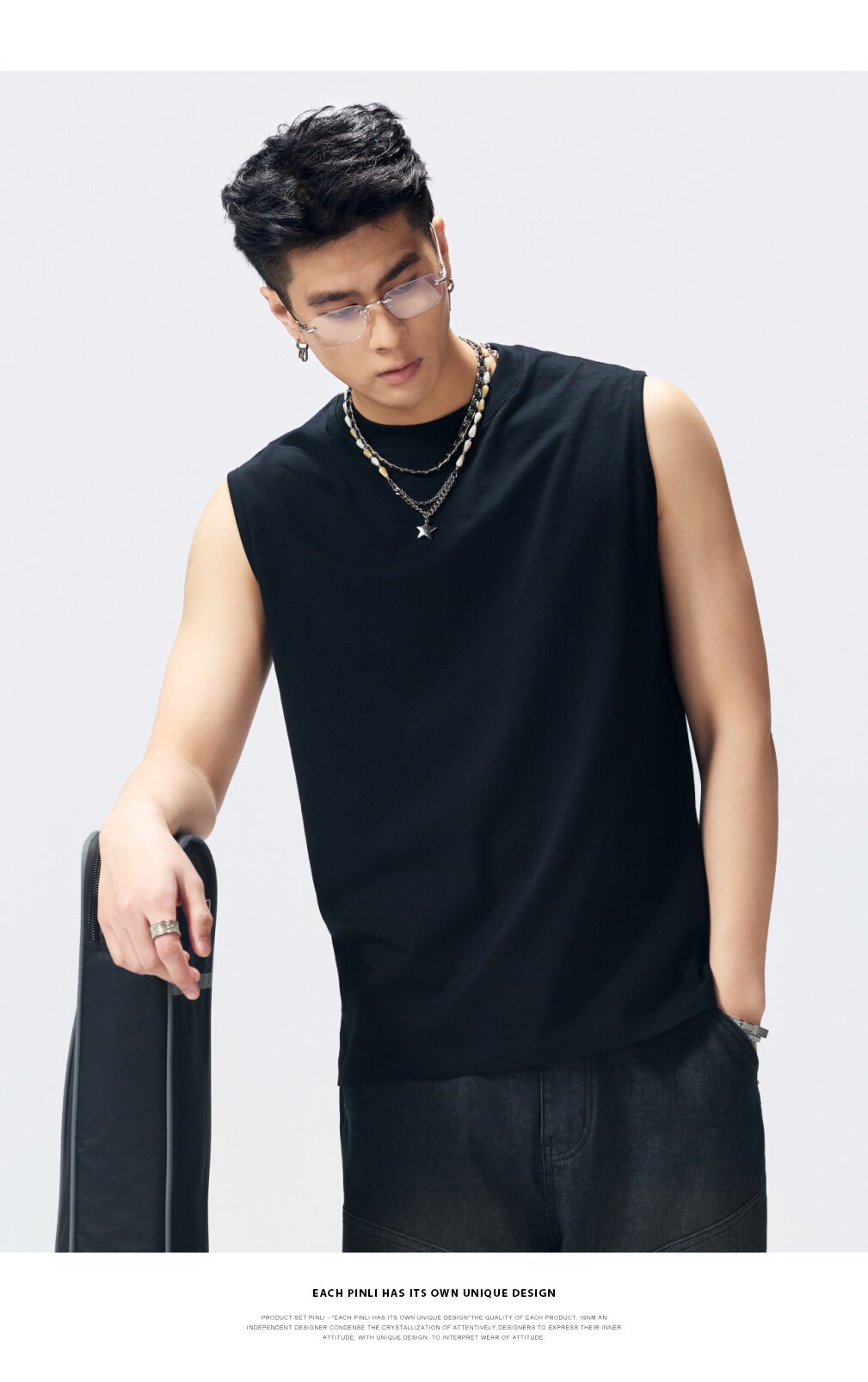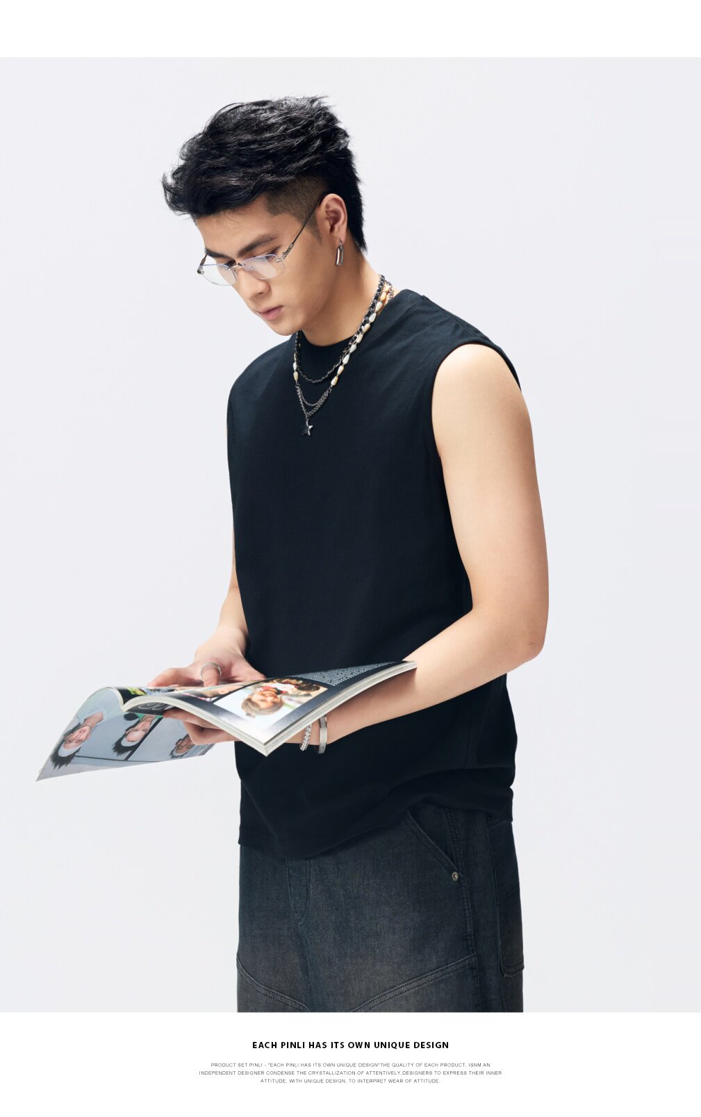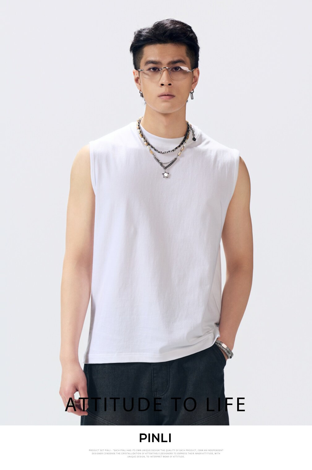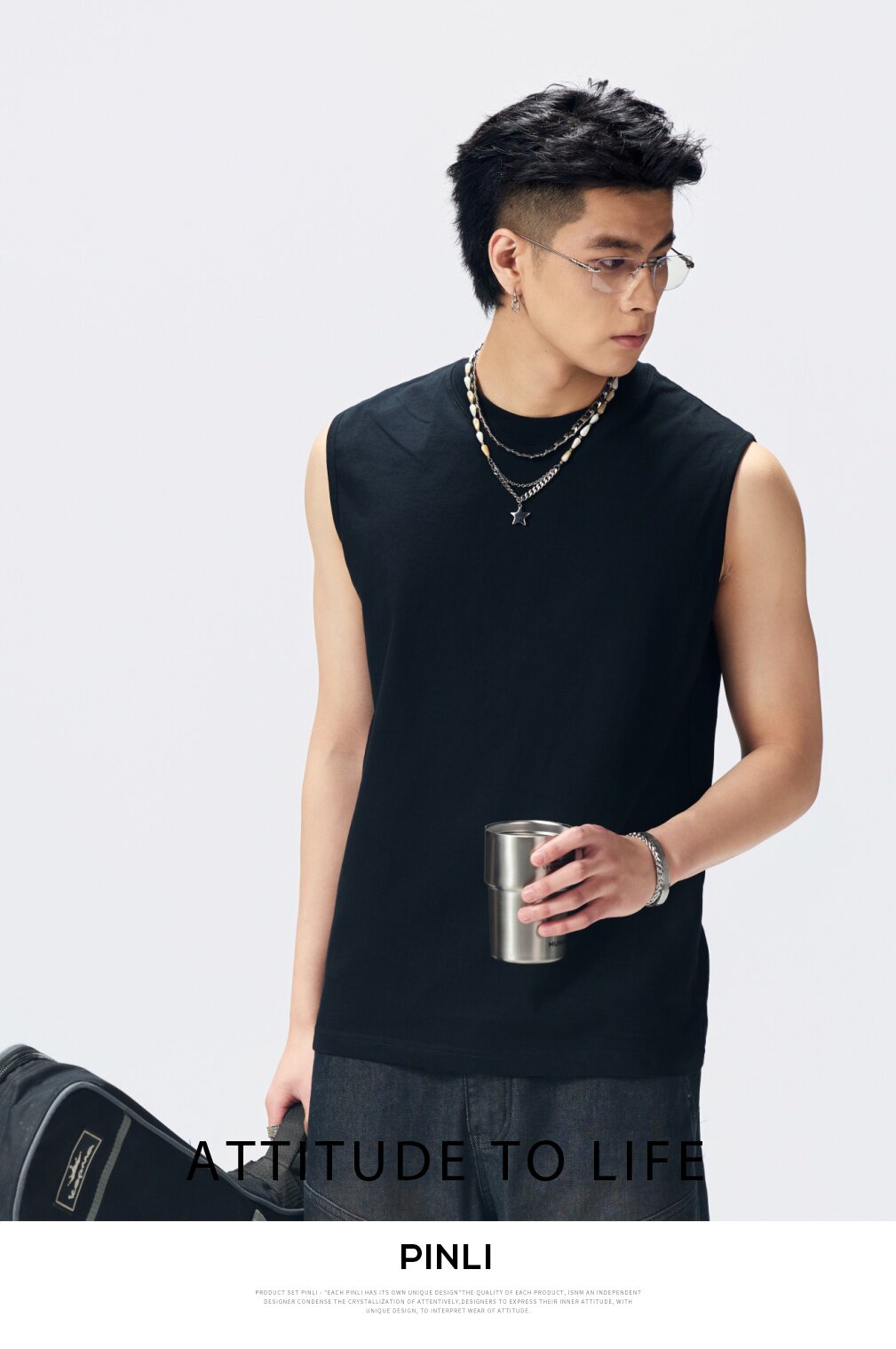 PINLI品立2026夏季新款男装合体版基础纯色圆领无袖打底背心上衣GD262114032