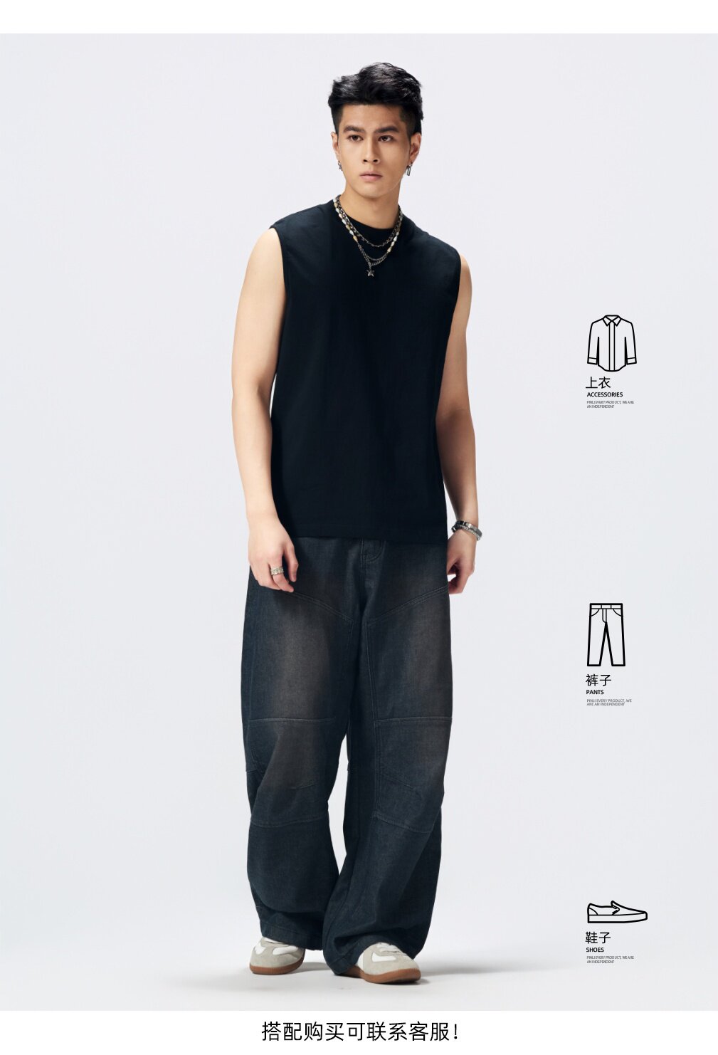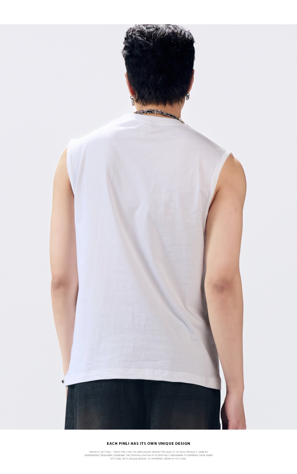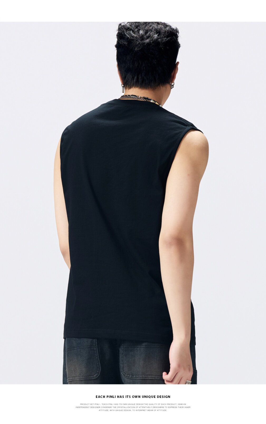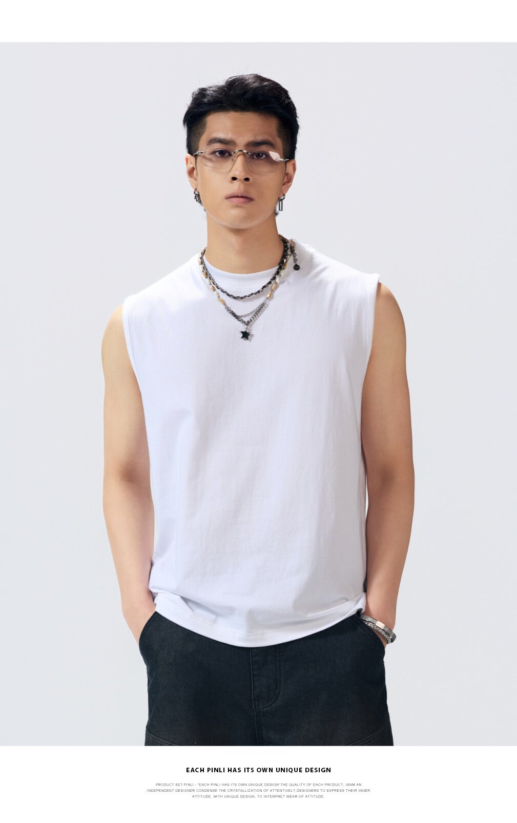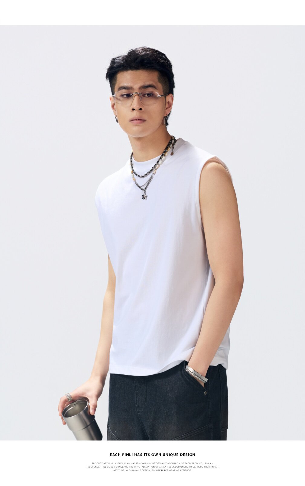 PINLI品立2026夏季新款男装合体版基础纯色圆领无袖打底背心上衣GD262114032