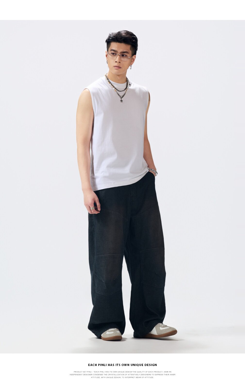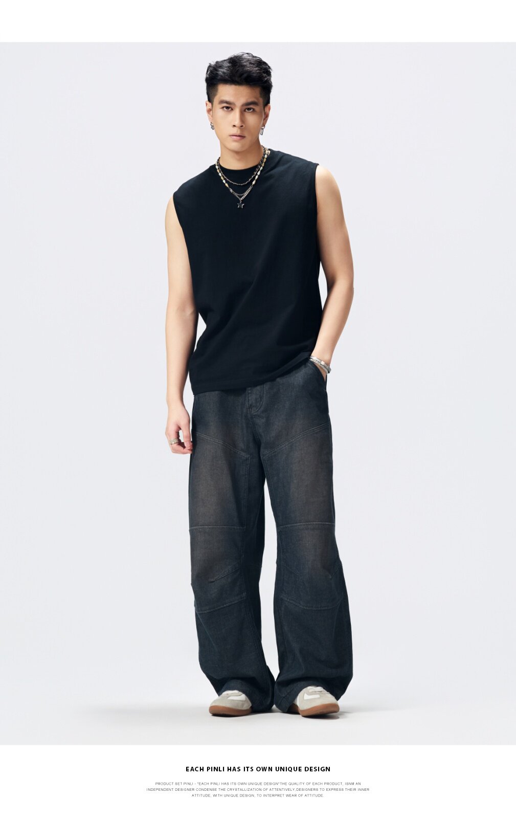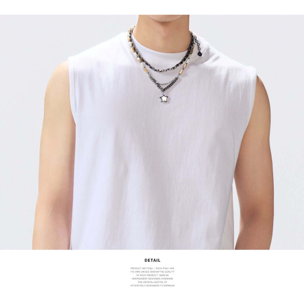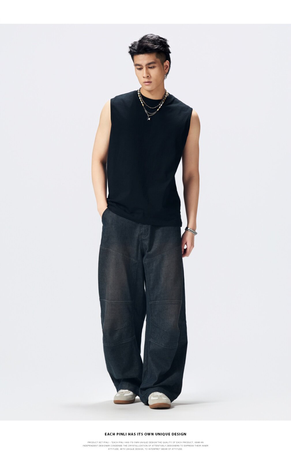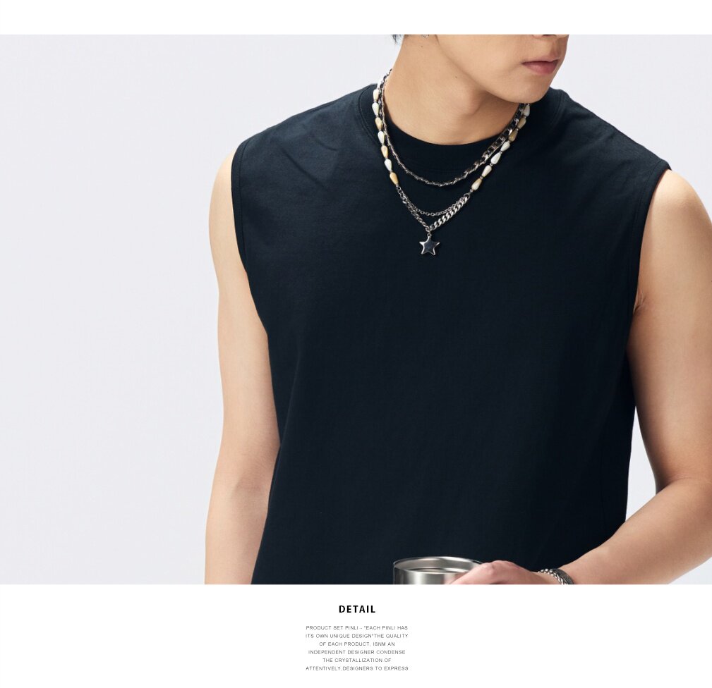 PINLI品立2026夏季新款男装合体版基础纯色圆领无袖打底背心上衣GD262114032