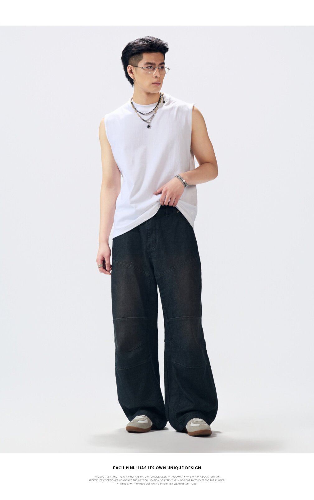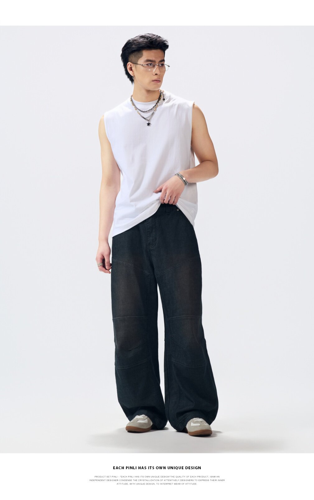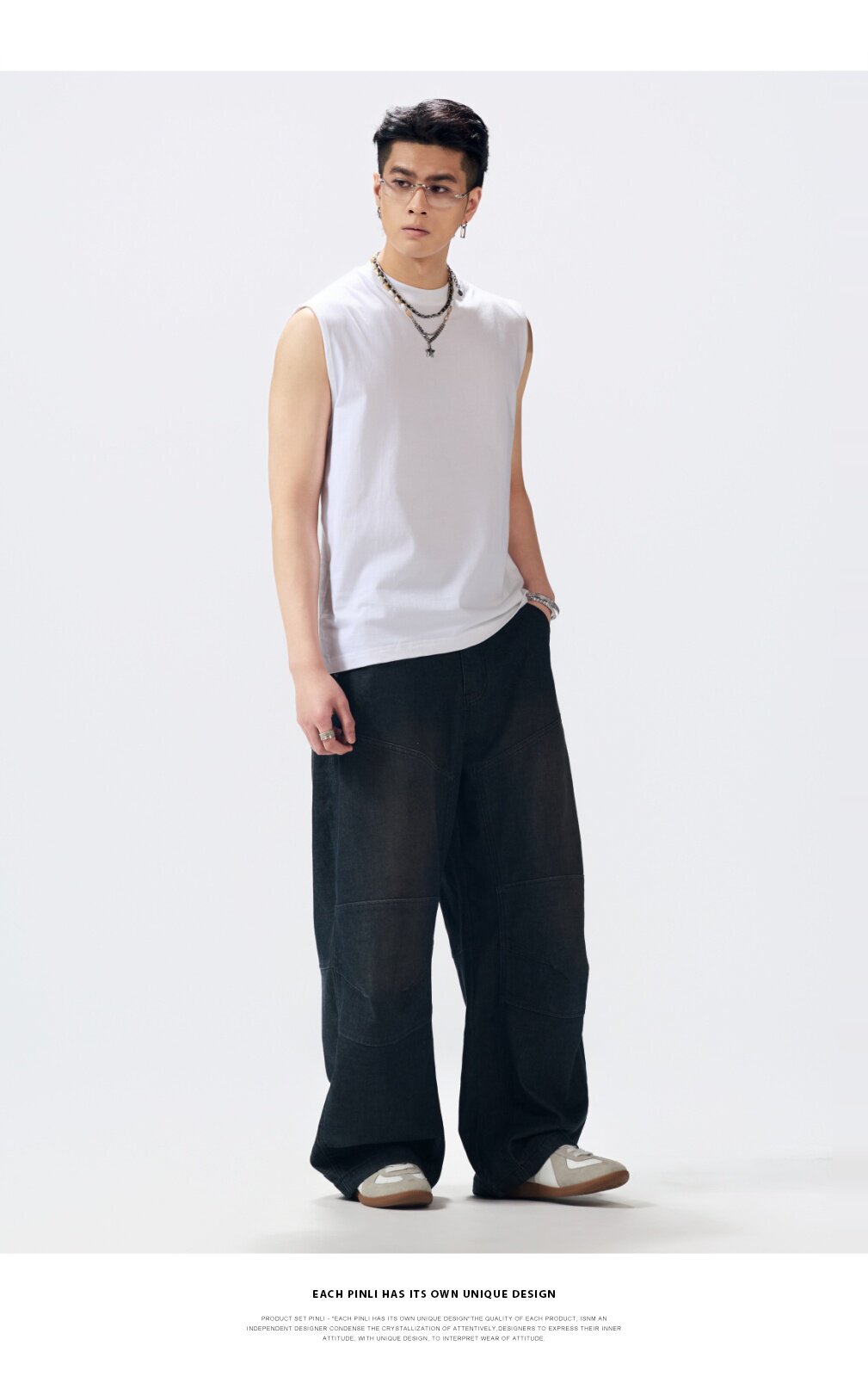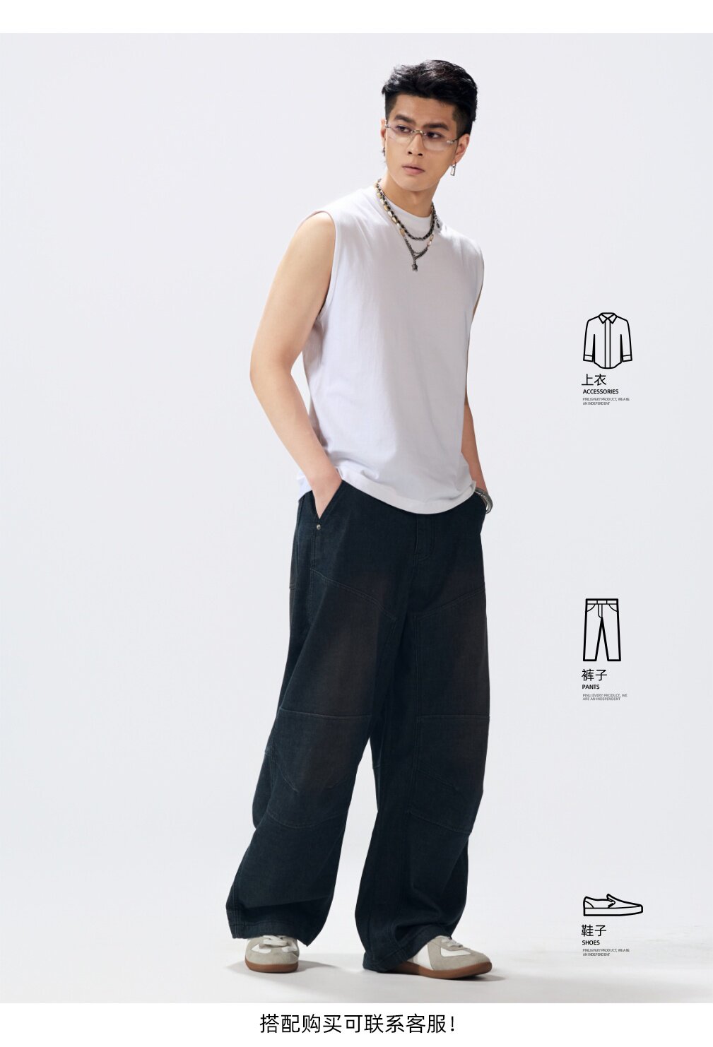 PINLI品立2026夏季新款男装合体版基础纯色圆领无袖打底背心上衣GD262114032