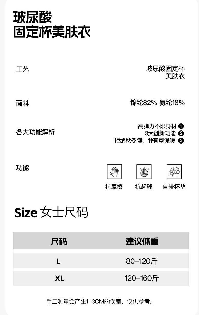 【品名】芬腾 玻尿酸固定杯美肤衣套装 免穿bra 贴身舒适 4色可选 8688 【规格】紫色、肤色、咖色、黑色 【尺码】 L(建议80-120斤) XL(建议120-160斤) 【产地】国内 【材质】 锦纶82%, 氨纶18% 【发货包装】独立包装 【发货地】广东 【发货快递】中通、圆通、申通、百世、韵达随机发 【补邮费地区】新疆、西藏+10元/单 【发货时效】48-72小时,周末节假日顺延 |
