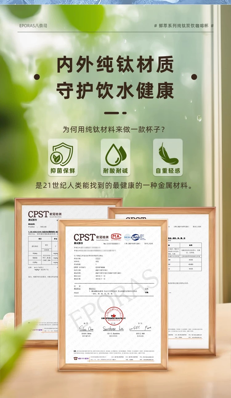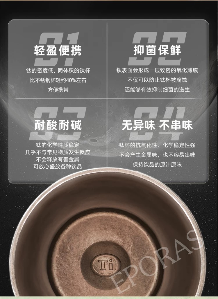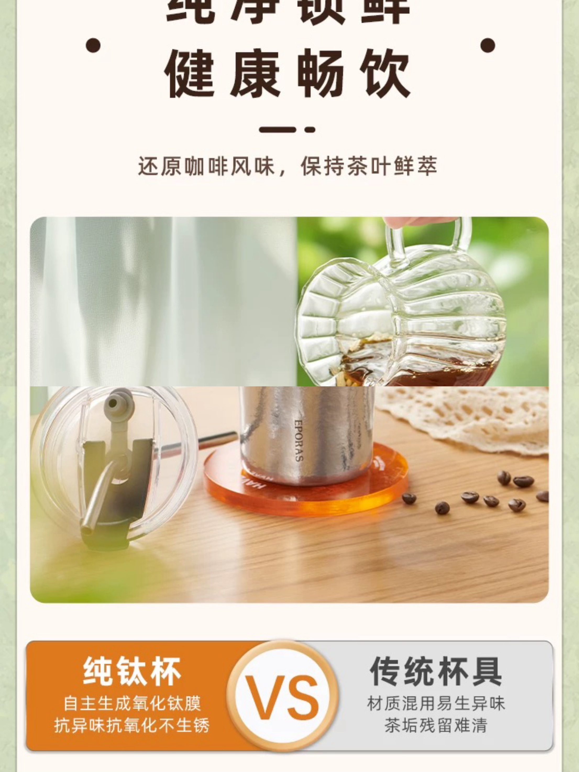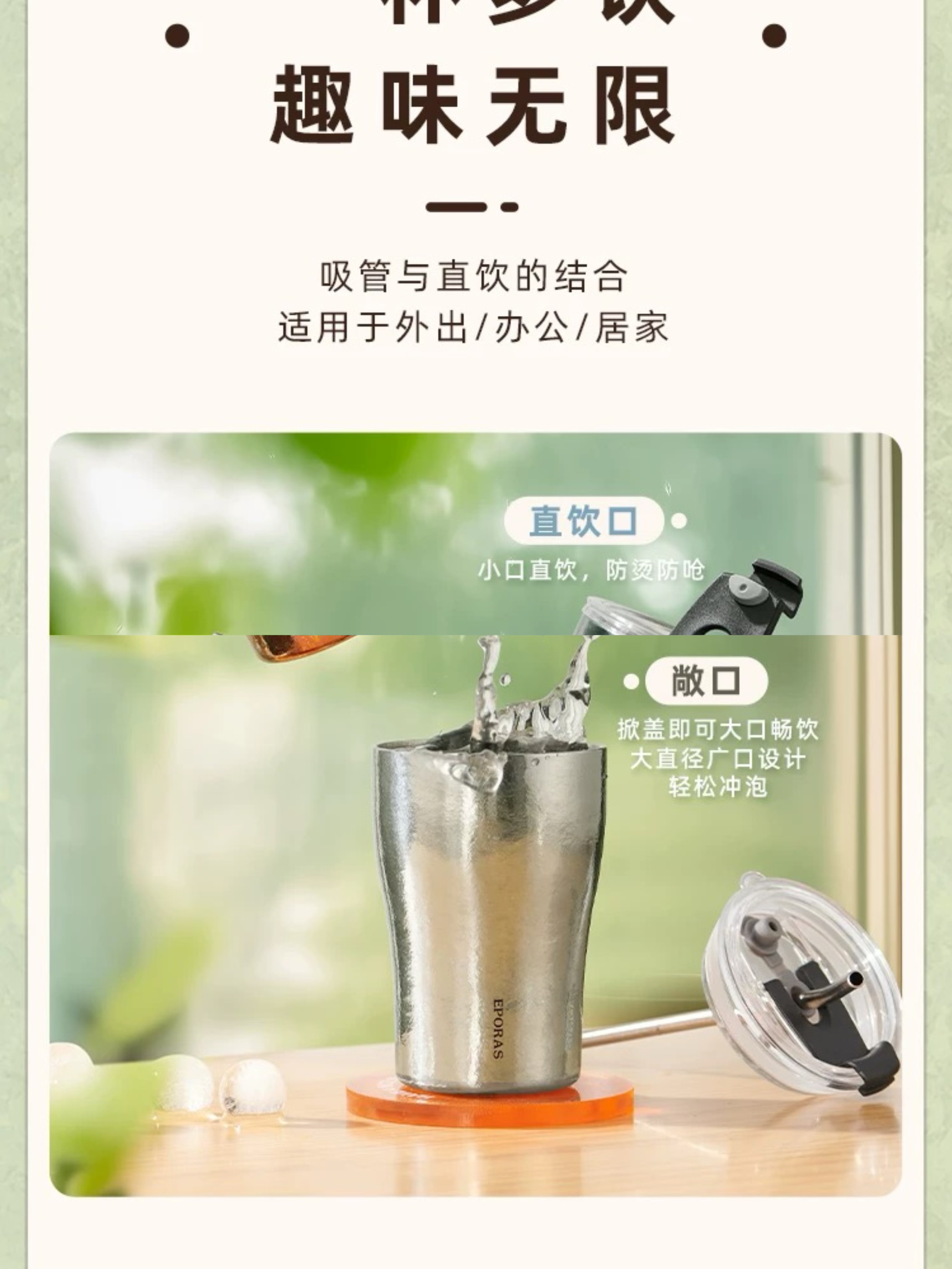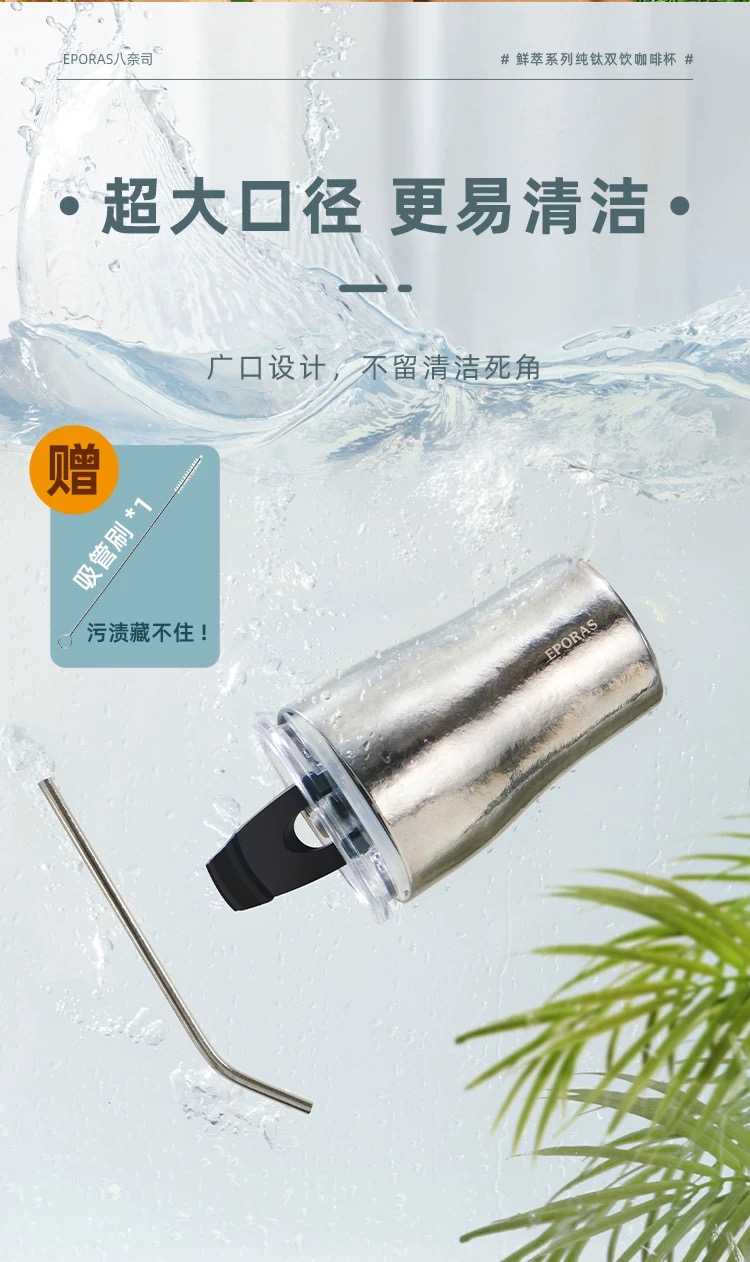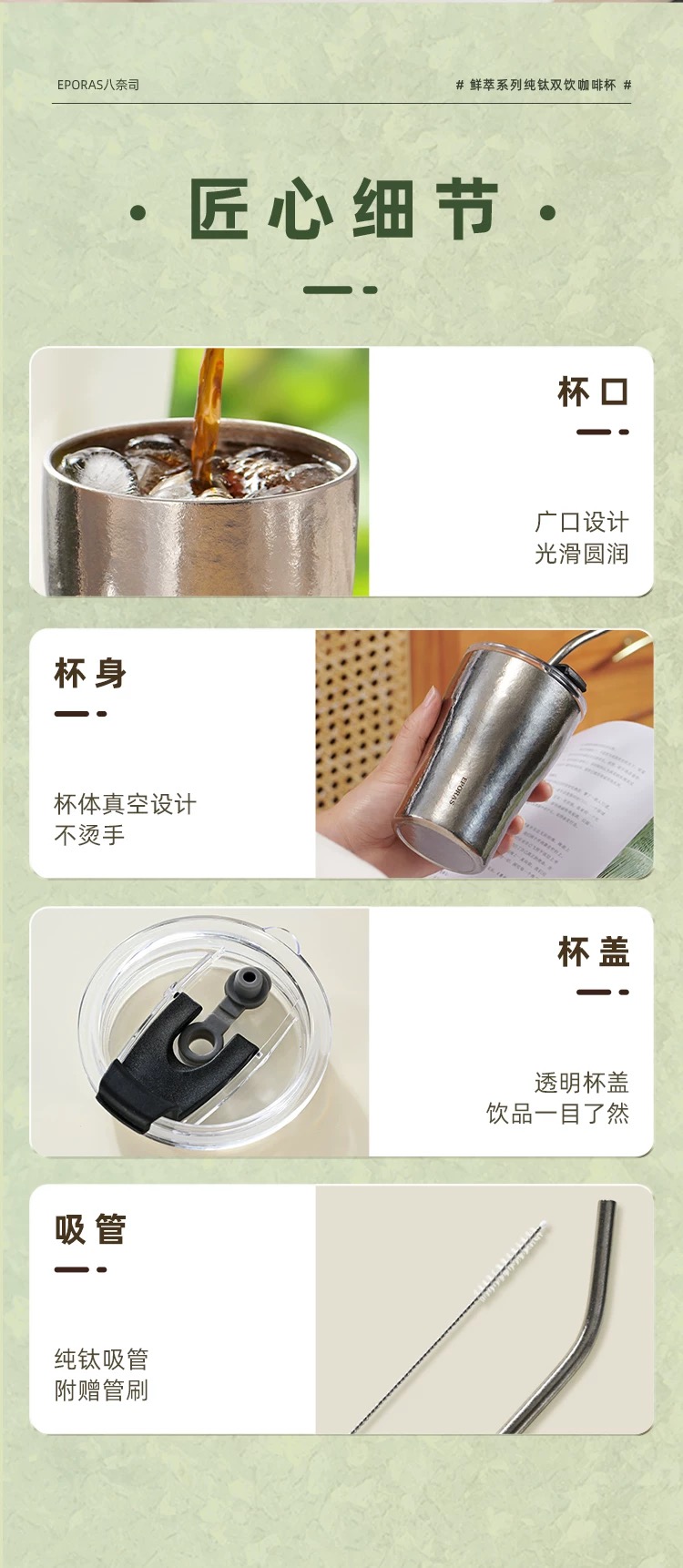 日本 EPORAS 八奈司 纯钛保冷保温杯高颜值咖啡 便携吸管杯 380ml 新品上新