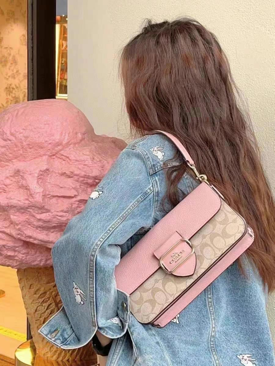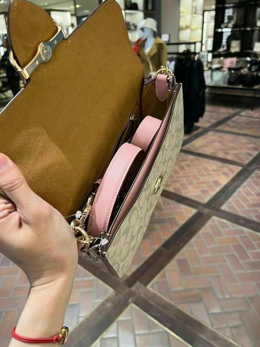🇺🇸1230直邮!Coach新款Morgan手提斜挎包,粉拼,蛇皮拼荔枝纹牛皮,尺寸26.5cm (长) x 14cm (高) x 6.5cm (宽)新款酒神包,好仙的颜色,上身超级好看,四季百搭