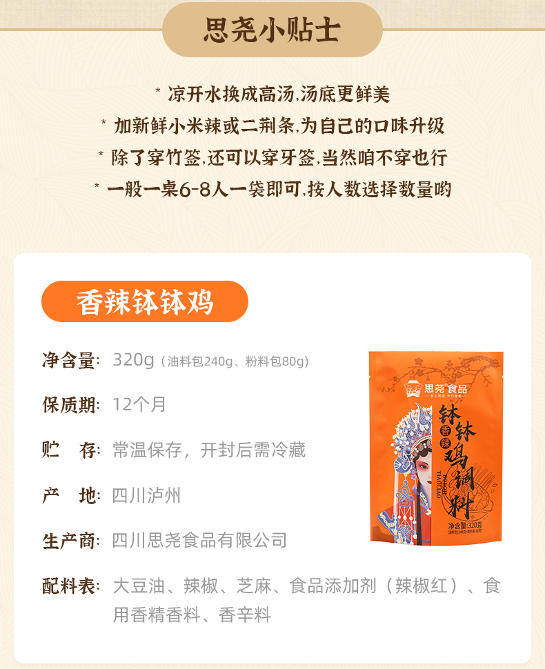 思尧乐山钵钵鸡调料320g香辣农家饱满鲜香串串麻辣底料正宗四川特产