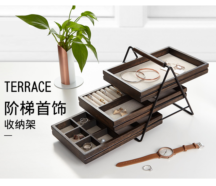 umbra木质首饰盒家用欧式珠宝展示架创意饰品收纳北欧复古首饰架