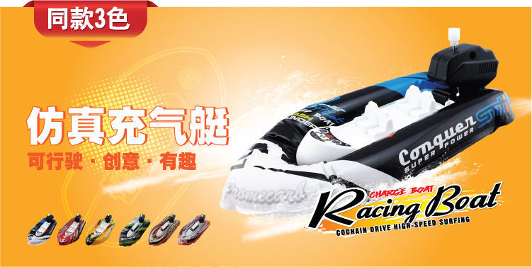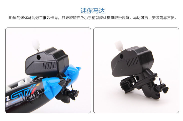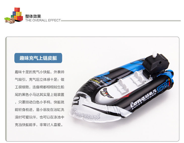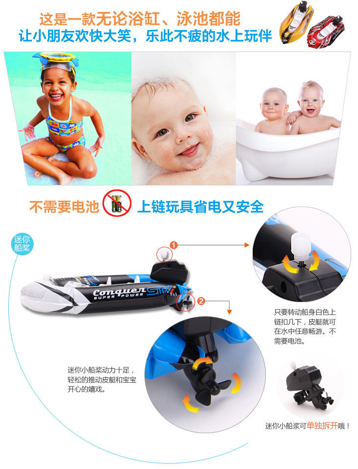 【迷你仿真充气艇】创意充气发条戏水快艇 儿童洗澡浴缸玩具船 上链船 夏天玩水沙滩玩具