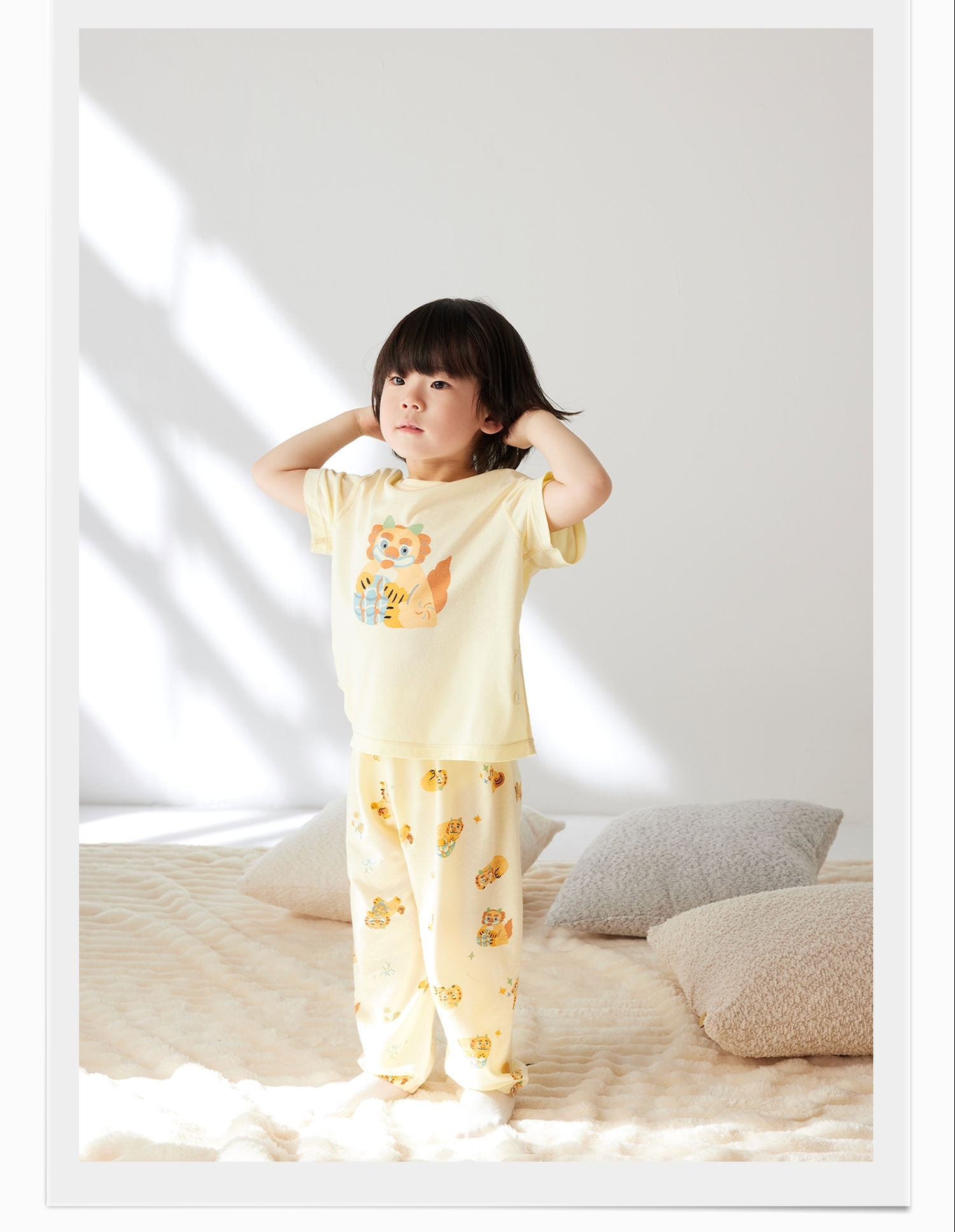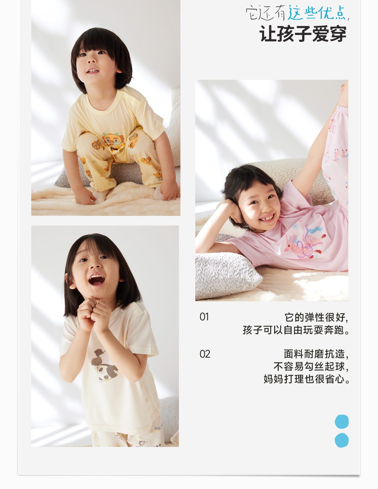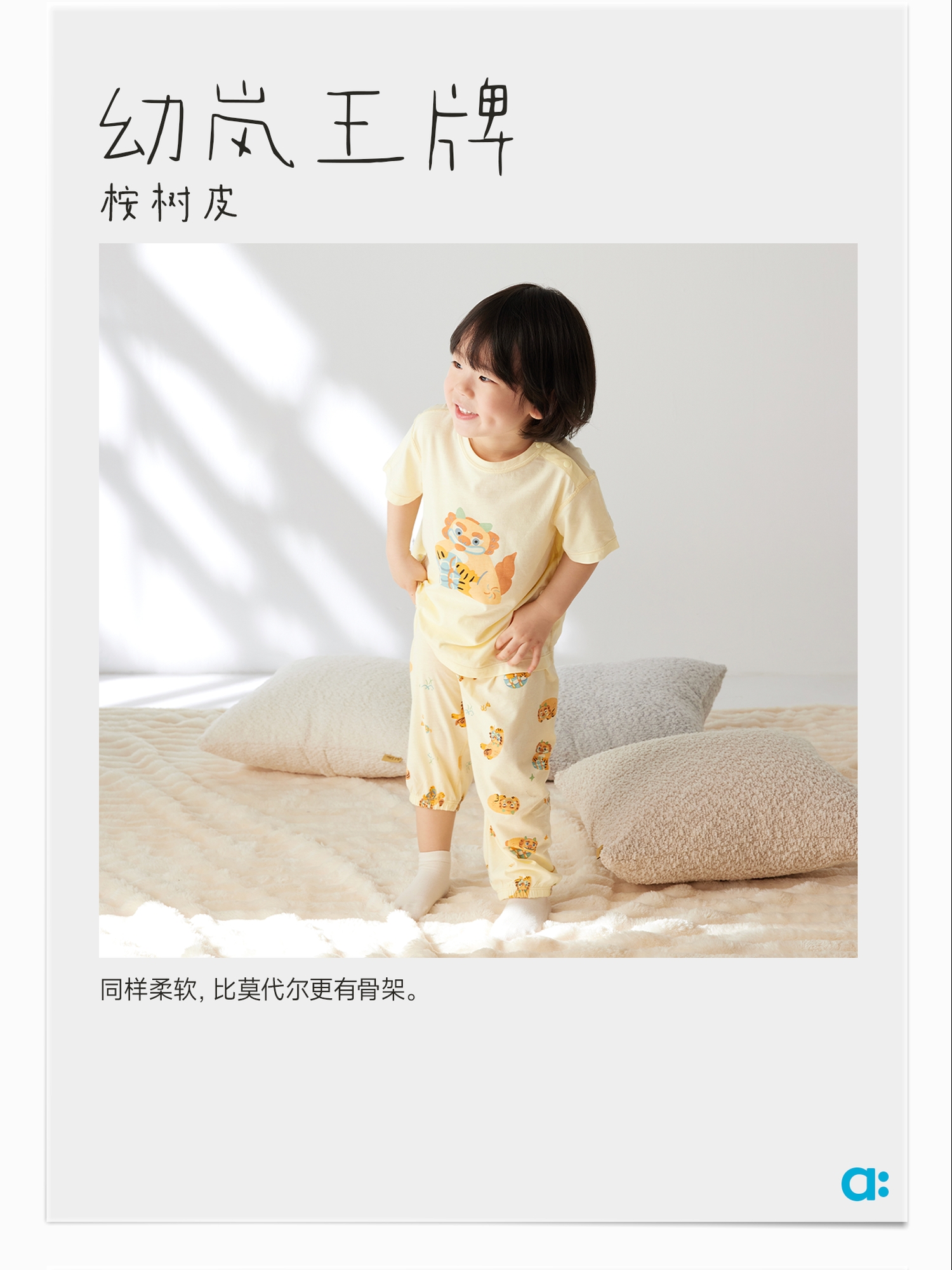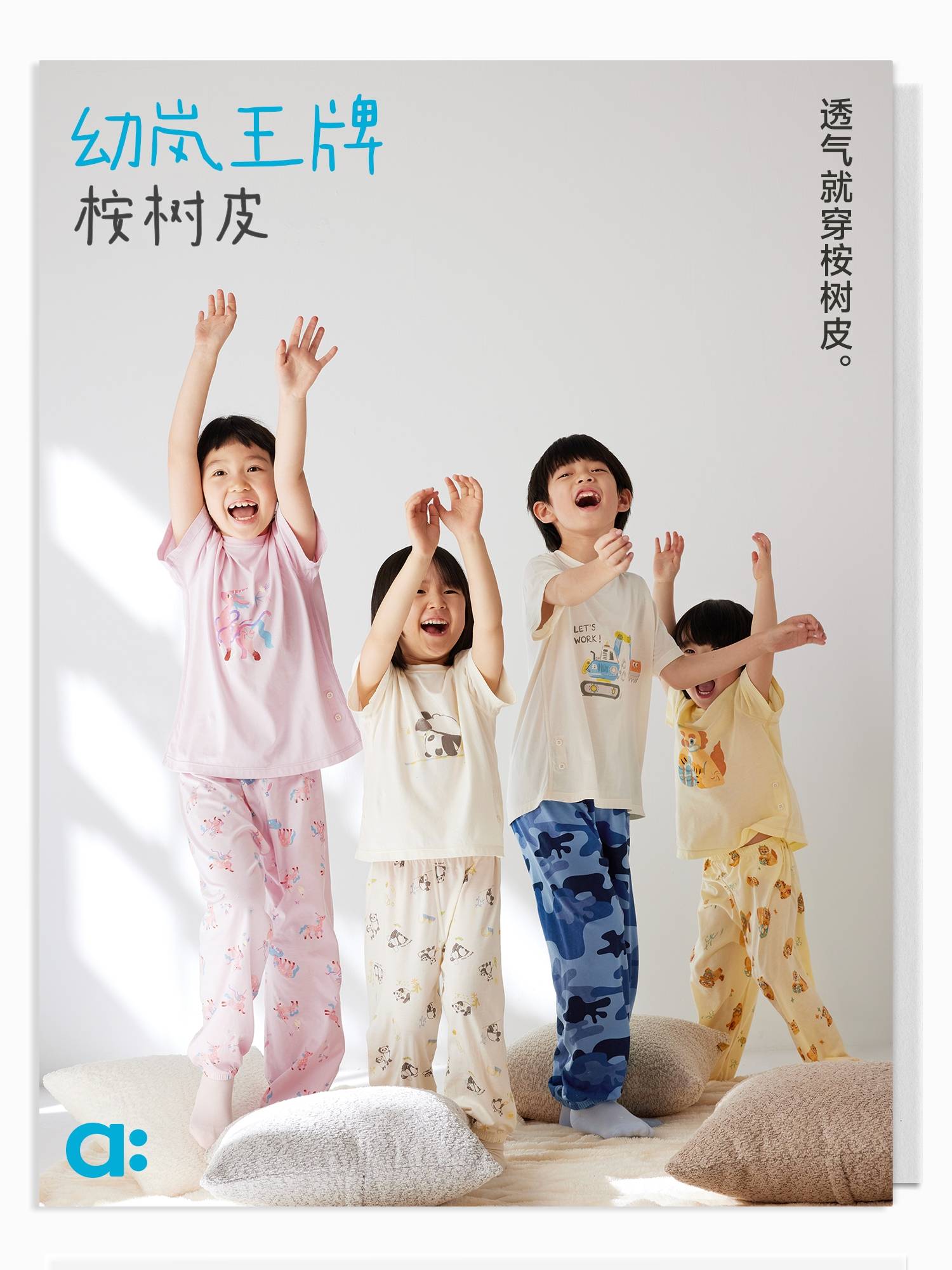 【好友特惠-中国博物馆系列】幼岚「王牌桉树皮」新中式儿童短袖透气家居服ZY