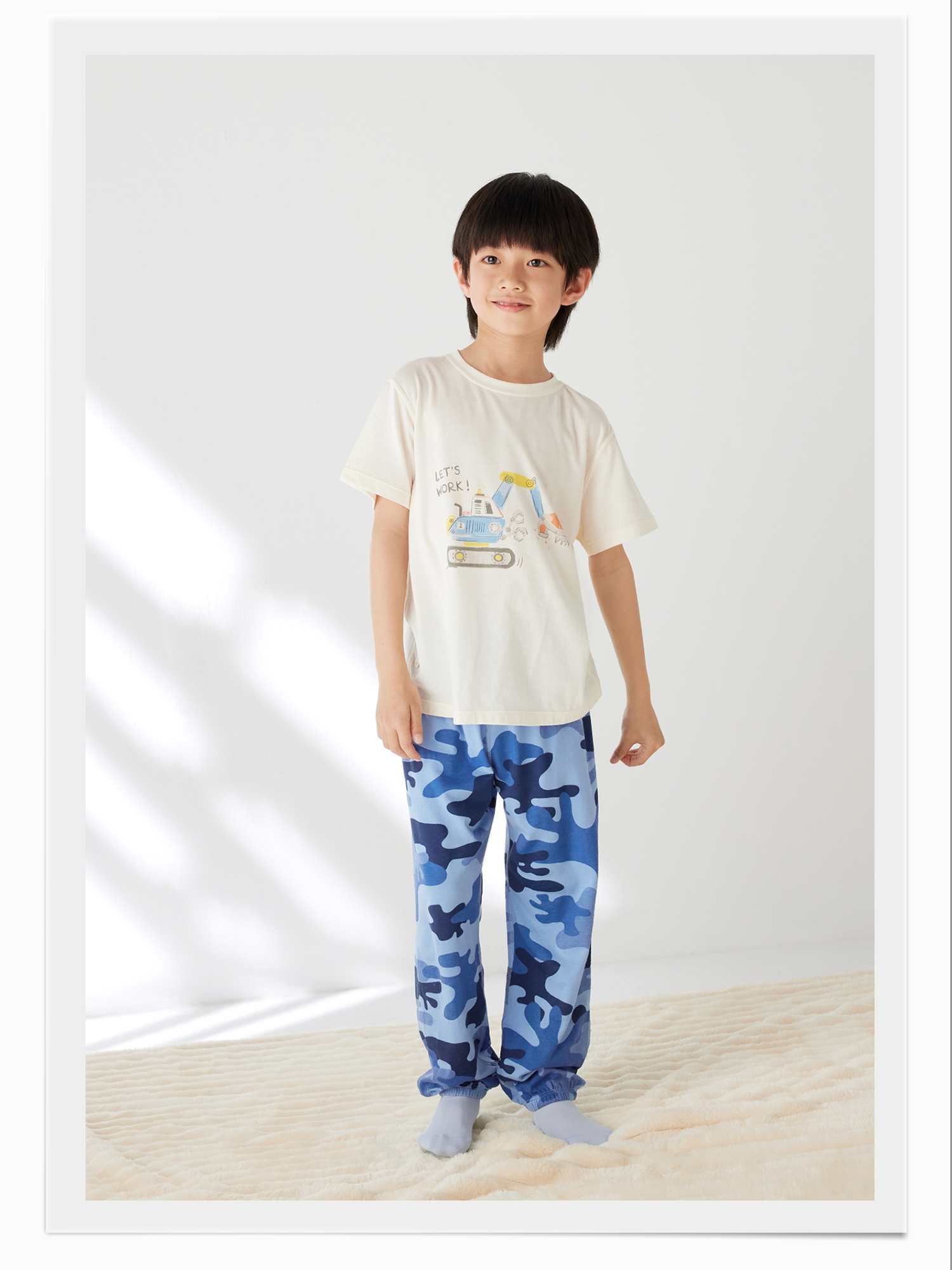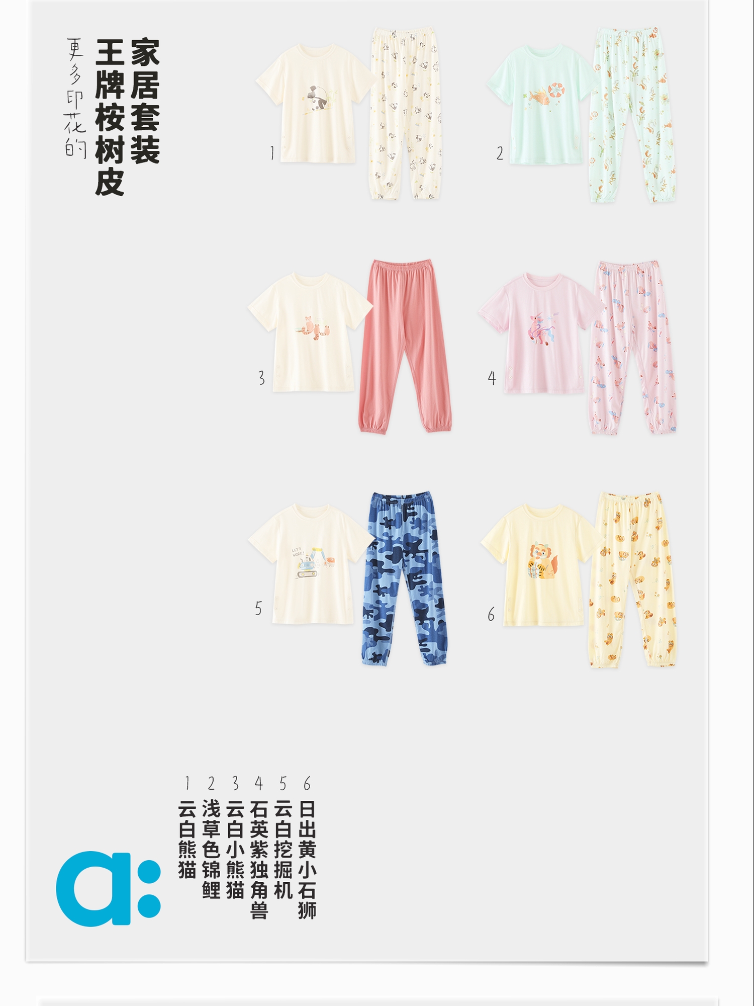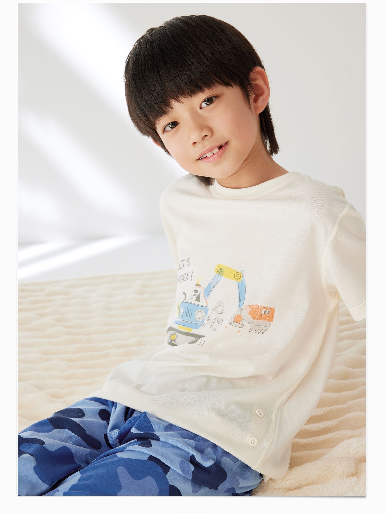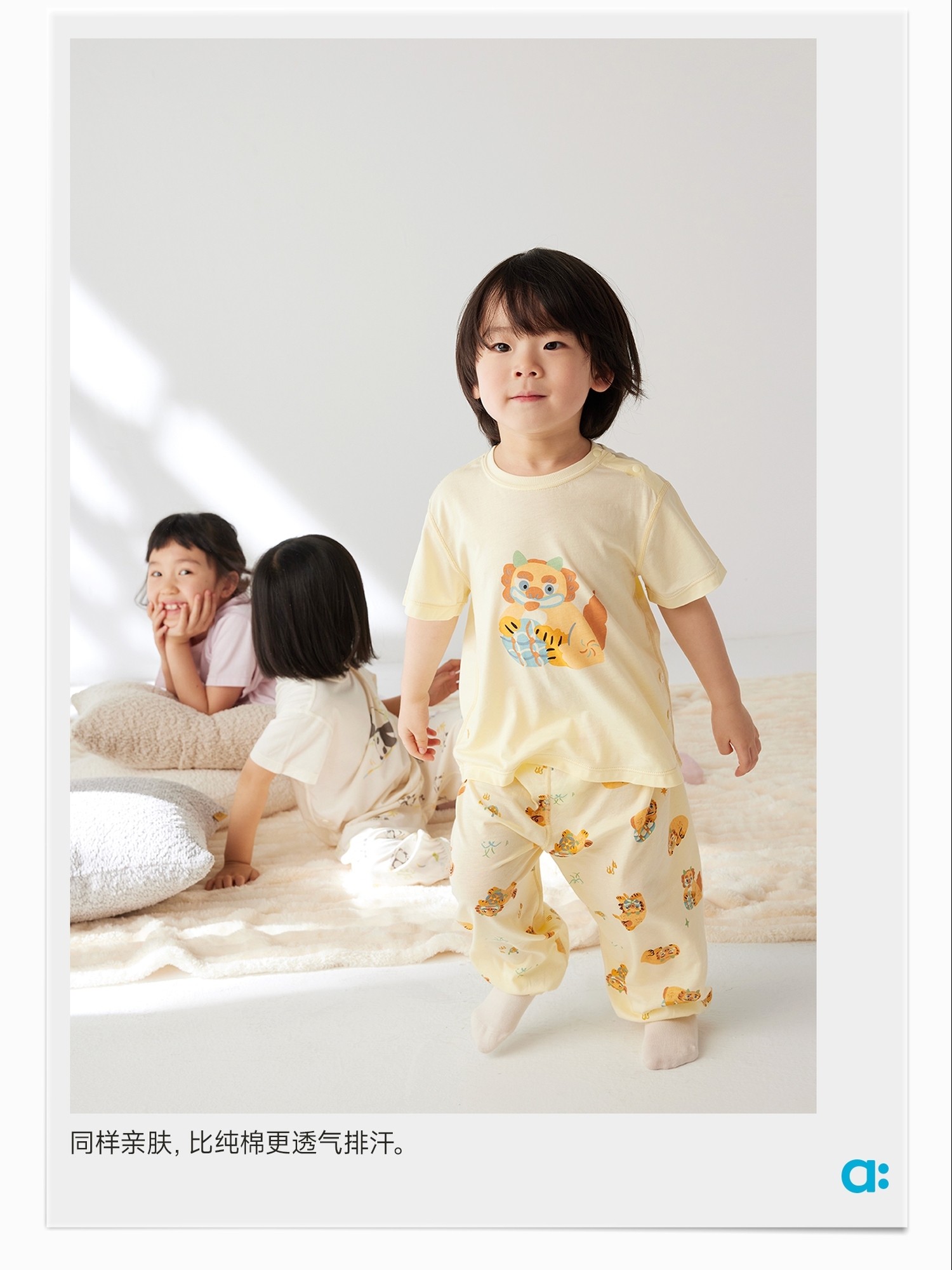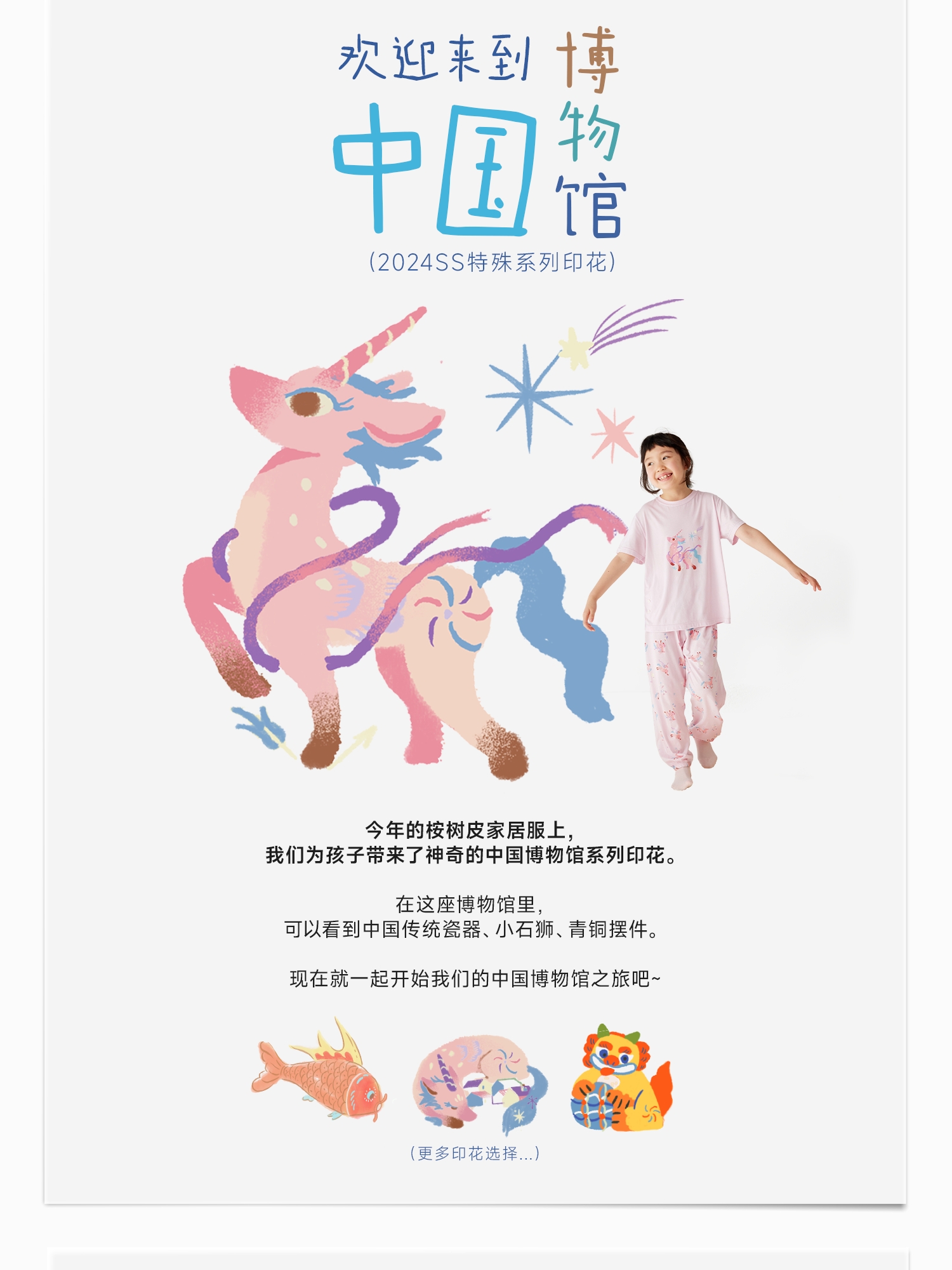 【好友特惠-中国博物馆系列】幼岚「王牌桉树皮」新中式儿童短袖透气家居服ZY